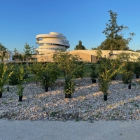 Ce projet de 2,7 M€ est marqué du sceau environnemental : le site zéro carbone exclut les voitures « classiques », la biodiversité a été préservée et renforcée par l’installation de trois bassins avec plantes aquatiques et six hôtels à insectes. La végétation plantée par le service des Espaces verts offre une variété de plantes vivaces et arbres aux essences choisiss pour résister aux fortes chaleurs. L’irrigation autonome par les racines, en toutes saisons, est assurée par la création de 8 cuves de 20 m2. Le parc regorge de variétés avec 120 rosiers, 1 400 ifs, 3 300 plantes vivaces, 400 arbres… à découvrir grâce aux 3 km de sentiers qui offrent un cheminement doux adapté aux personnes à mobilité réduite avec des pontons de bois. Minéral pour les assises et végétal s’intègrent parfaitement offrant des ambiances différentes