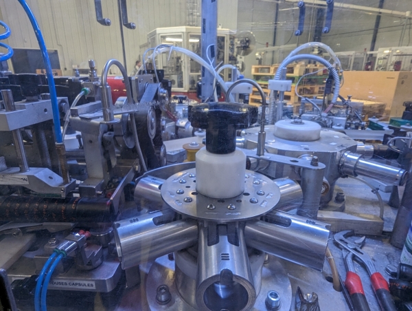 Actuellement, l’usine Saucaps s’appuie sur quatre machines de fabrication, deux machines pour imprimer le CRD sur la tête des capsules dans d’autres matières, étain ou PVC notamment, en provenance d’usines de sous-traitants européens. Deux autres imprimantes complètent le lot, elles assurent l’impression des pions fiscaux sur les bouteilles cirées.