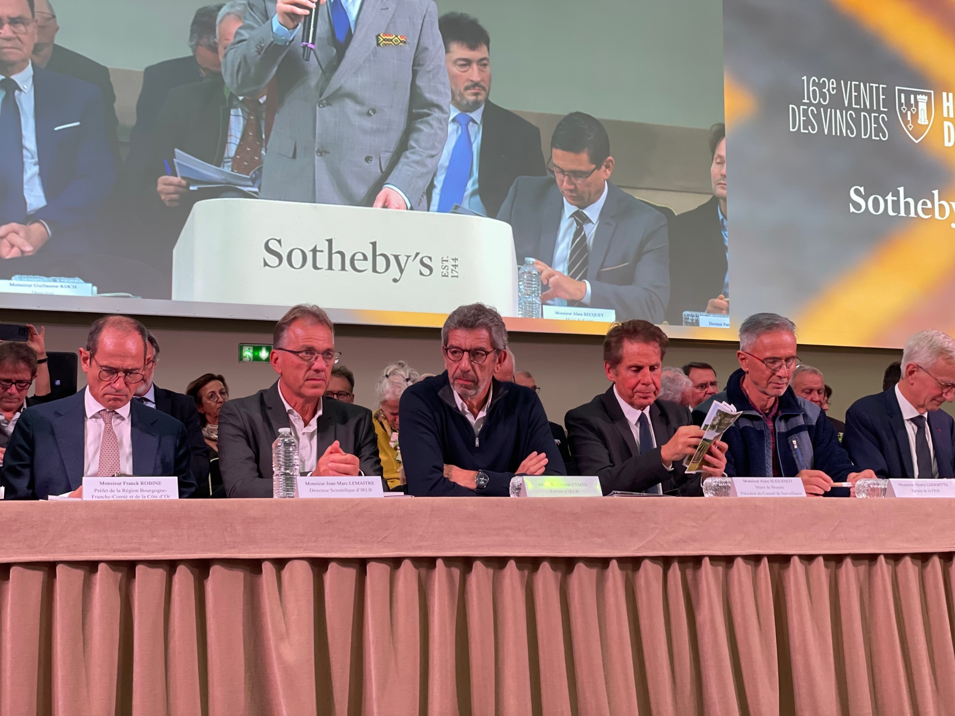 Les enchères ont été lancées par Thierry Lhermitte et Michel Cymes. Ça va très vite, Aurélie Vandevoorde, commissaire-priseur de Sotheby’s a pris en main le marteau pour adjuger les différents lots. Les 30 premiers lots de Beaune Cuvée des Dames Hospitalières partent très vite… suivent les Pommard 1er Cru Dames de la Charité. Les prix affichent des hausses...