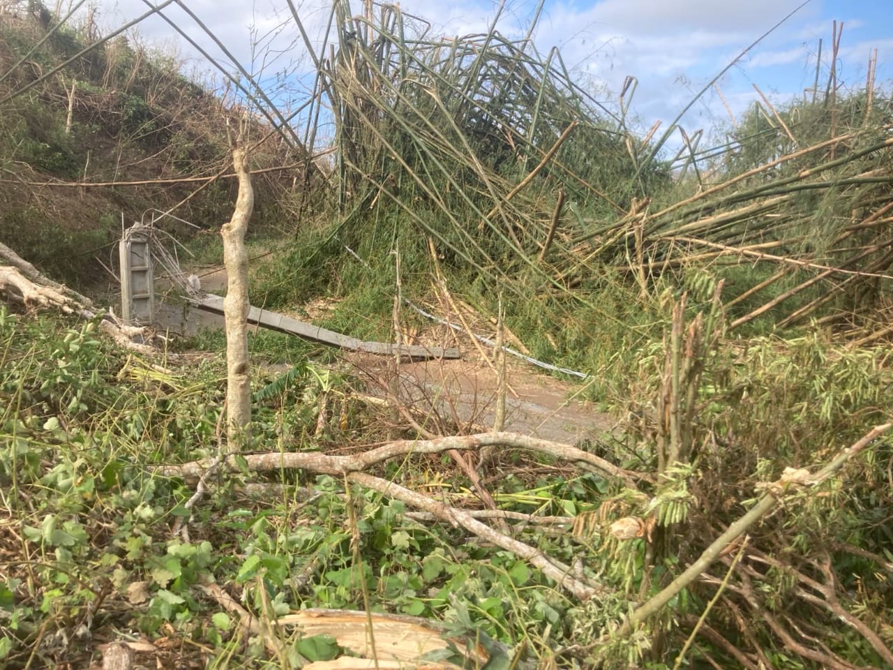 Pour les exploitations agricoles c’est un vaste chantier de nettoyage dans un premier temps afin de remettre les terres en état de culture. Il faut refaire des serres pour assurer des plants en plein champ ou de la culture, qu’elles soient maraichères ou arboricoles. Mais également il faut ré-équiper les réseaux d’eau et d’électricité tous touchés et reconstruire les locaux envolés comme les bâtiments de stockage du matériel et des produits. Pour exemple le local de fermentation du cacao est totalement détruit; des toitures solaires sur les locaux d’irrigation se sont envolées.