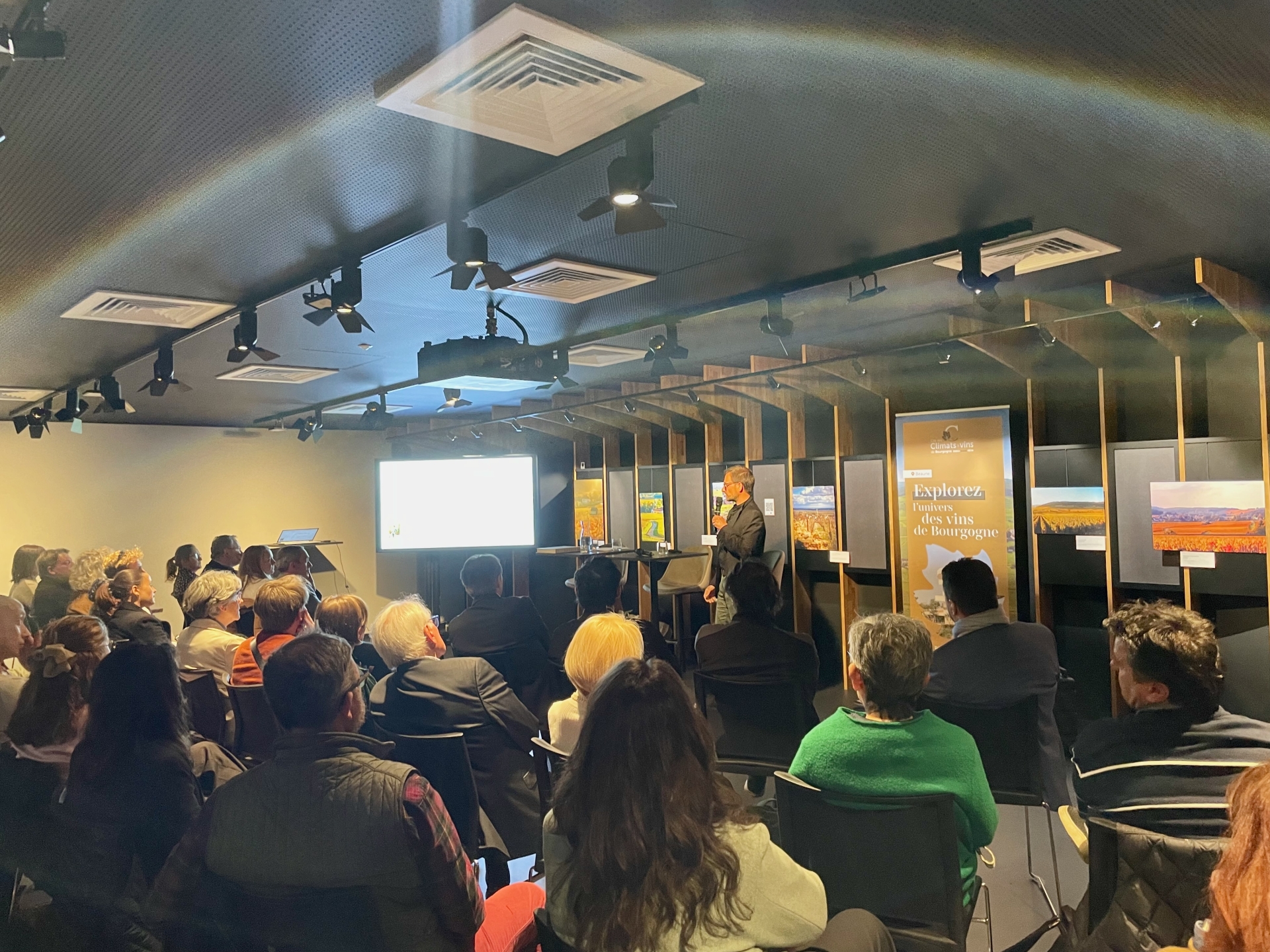 La table ronde s’est conclue de manière festive avec une séance de dédicaces et une dégustation commentée. Le public a pu apprécier deux expressions contrastées de l’effervescence bourguignonne : un Crémant de Bourgogne blanc, emblématique de l’élégance régionale, et un étonnant vin rouge effervescent, le « sparkling Burgundy », autrefois très prisé en Amérique et en Australie dans les années 1950. Un clin d’œil historique atypique.