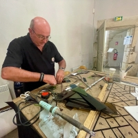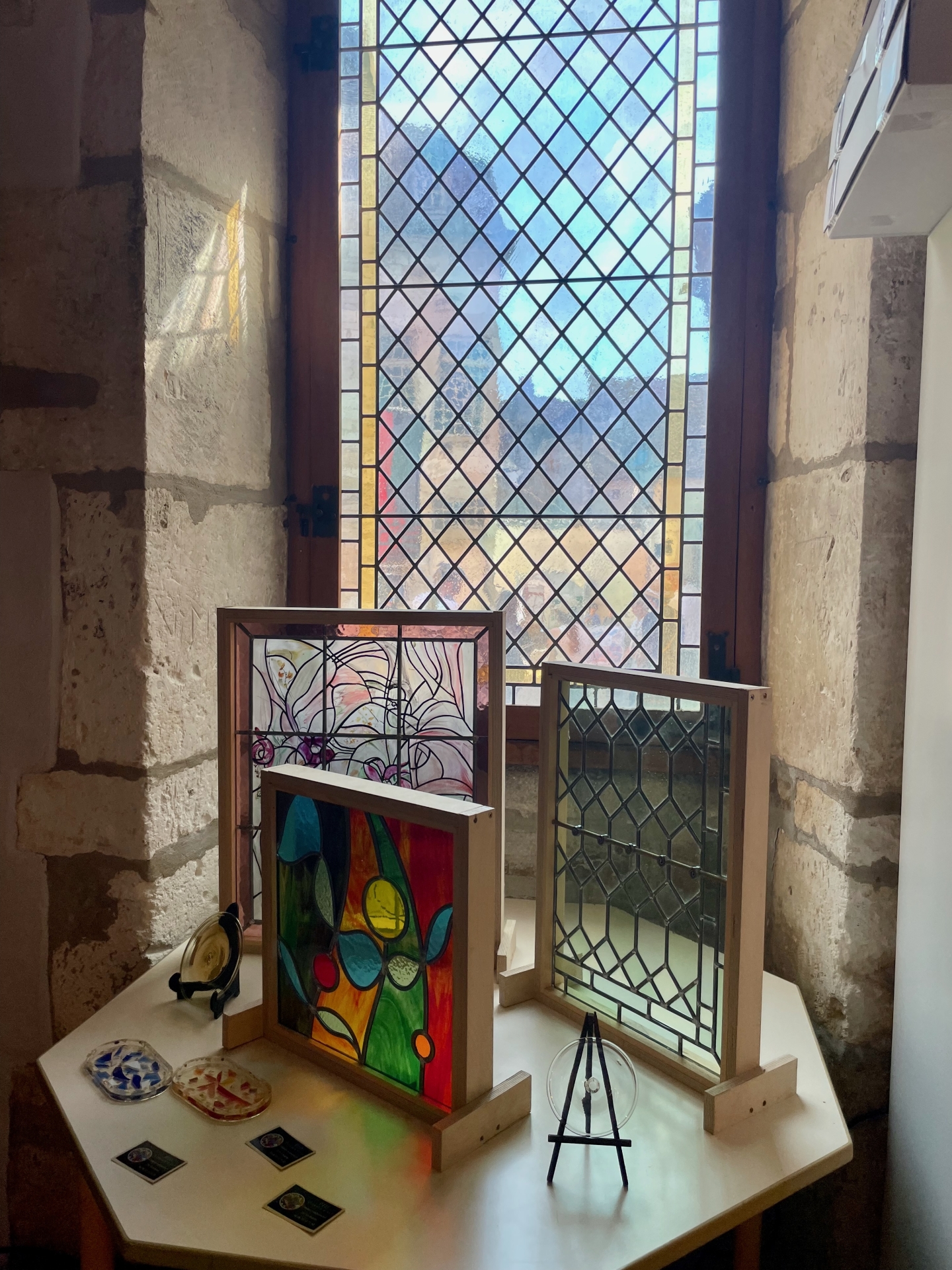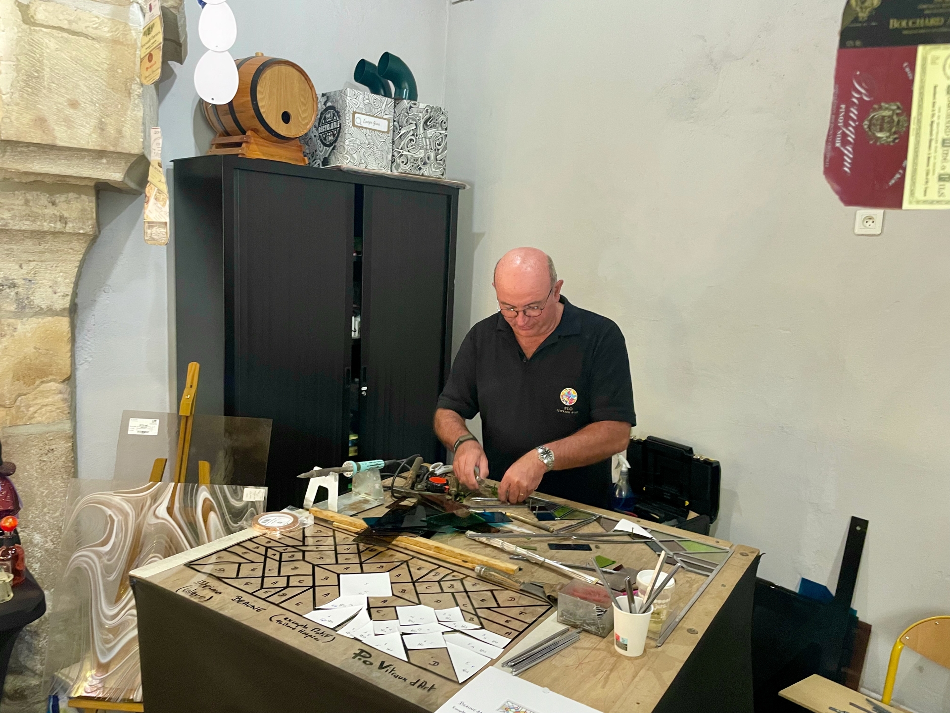 Dans l’une des salles du Musée du Vin, les visiteurs ont été captivés par l’atelier du maître-verrier Pierre-Olivier Bertheau. Entre démonstrations de découpe de verre et présentation des outils, le vitrailliste a révélé les secrets d’un artisanat d’art souvent méconnu mais omniprésent dans le patrimoine religieux et civil. Les enfants comme les adultes ont pu admirer les jeux de lumière et les couleurs des créations exposées, tout en découvrant le travail minutieux qui se cache derrière chaque vitrail.