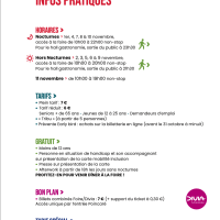 Plein tarif 7 € / Réduit 6 € (seniors +65 ans, jeunes 12-25 ans, demandeurs d’emploi, tribus de 5 personnes, prévente avant le 31/10).