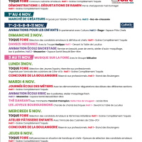 L’espace P’tits Chefs (Hall 2, niveau 2) : en partenariat avec Cultura, il propose ateliers créatifs, jeux, maquillage, lectures et cuisine pour les 3-12 ans. Accès gratuit les 1, 2, 5, 8, 9 et 11 novembre.