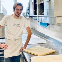 Pour ce concours, Louis s’appuie sur son point fort : le feuilletage. « Je mise plus sur le feuilletage que sur les crèmes. C’est ma spécialité. » Le thème de cette édition du Master est clair : revisiter le millefeuille, sans le reproduire à l’identique. « Hors de question de faire un millefeuille classique ! Je vais partir sur un grand rectangle avec trois plaques de feuilletage différentes. Les crèmes, je les travaille déjà ici, donc je garde des bases que je connais bien. »