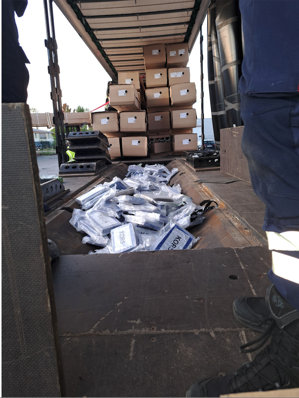 Avec l’appui des agents de la brigade des douanes de Dijon, le véhicule est ensuite transféré dans les locaux d’un logisticien agréé. Le déchargement complet de la marchandise permet la découverte de nombreux pains rectangulaires dissimulés dans les travées du chargement, pour un poids total de près de 405 kg de cocaïne.