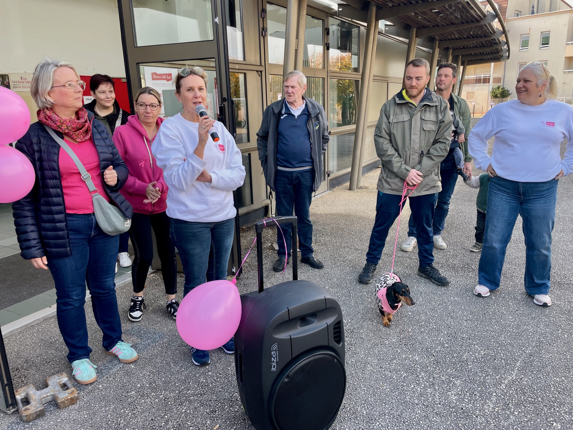 Cet instant plein d’humour et de tendresse illustre parfaitement l’esprit du Lien Rose : rassembler toutes les générations autour d’une même cause, avec le sourire. Les participants, parfois venus de loin, ont pris plaisir à participer à cette marche symbolique où les maîtres et leurs fidèles compagnons marchaient côte à côte pour soutenir la cause du dépistage et de la recherche.