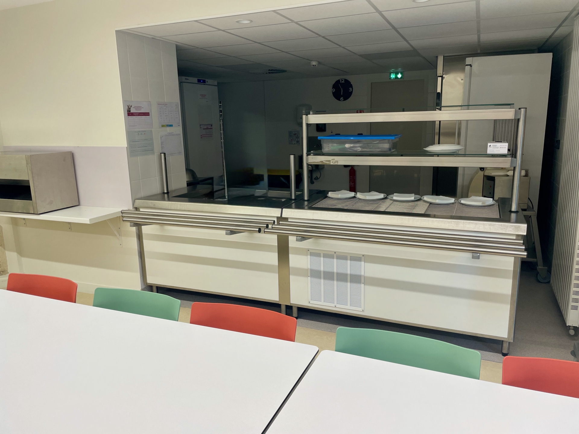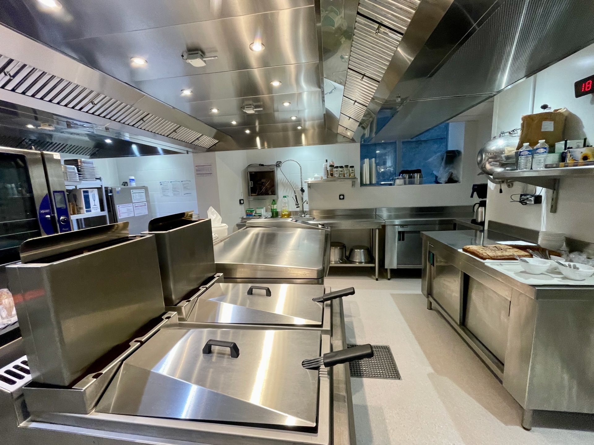 Derrière la salle, la cuisine flambant neuve impressionne par ses volumes et son équipement. Réalisée dans des conditions particulièrement complexes, elle permet aujourd’hui à l’équipe de cinq cuisiniers du prestataire Elior, dirigé par le chef Aurélien, de travailler dans des conditions optimales. « Il a su faire preuve d’un grand professionnalisme et d’une patience exemplaire », ont souligné les responsables, en évoquant les mois passés dans des modules provisoires.