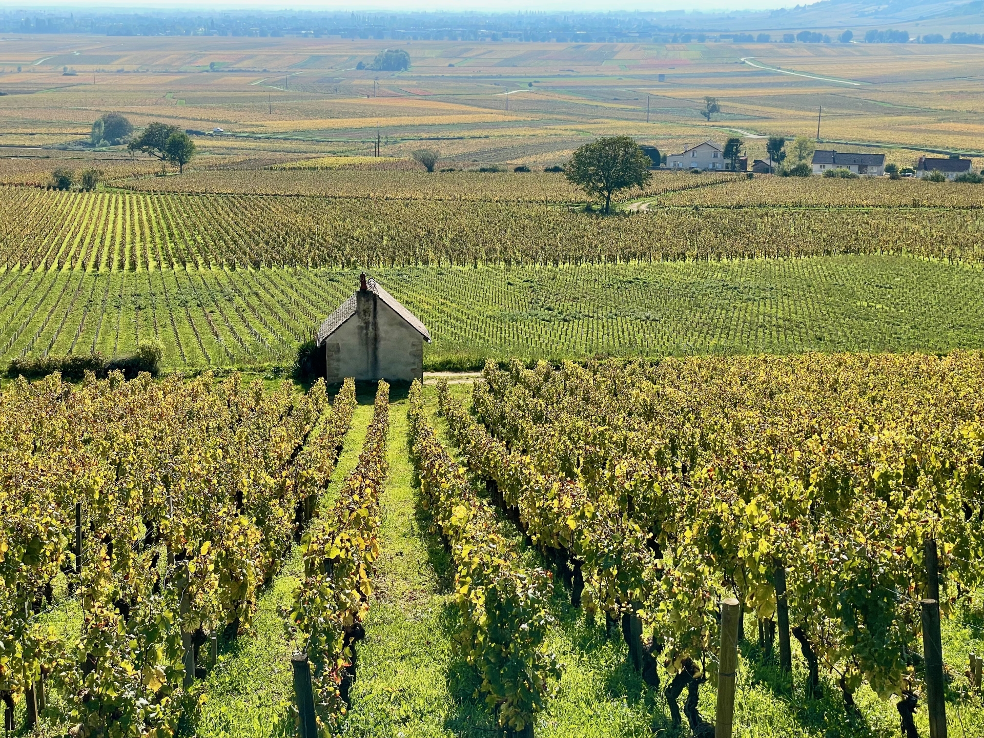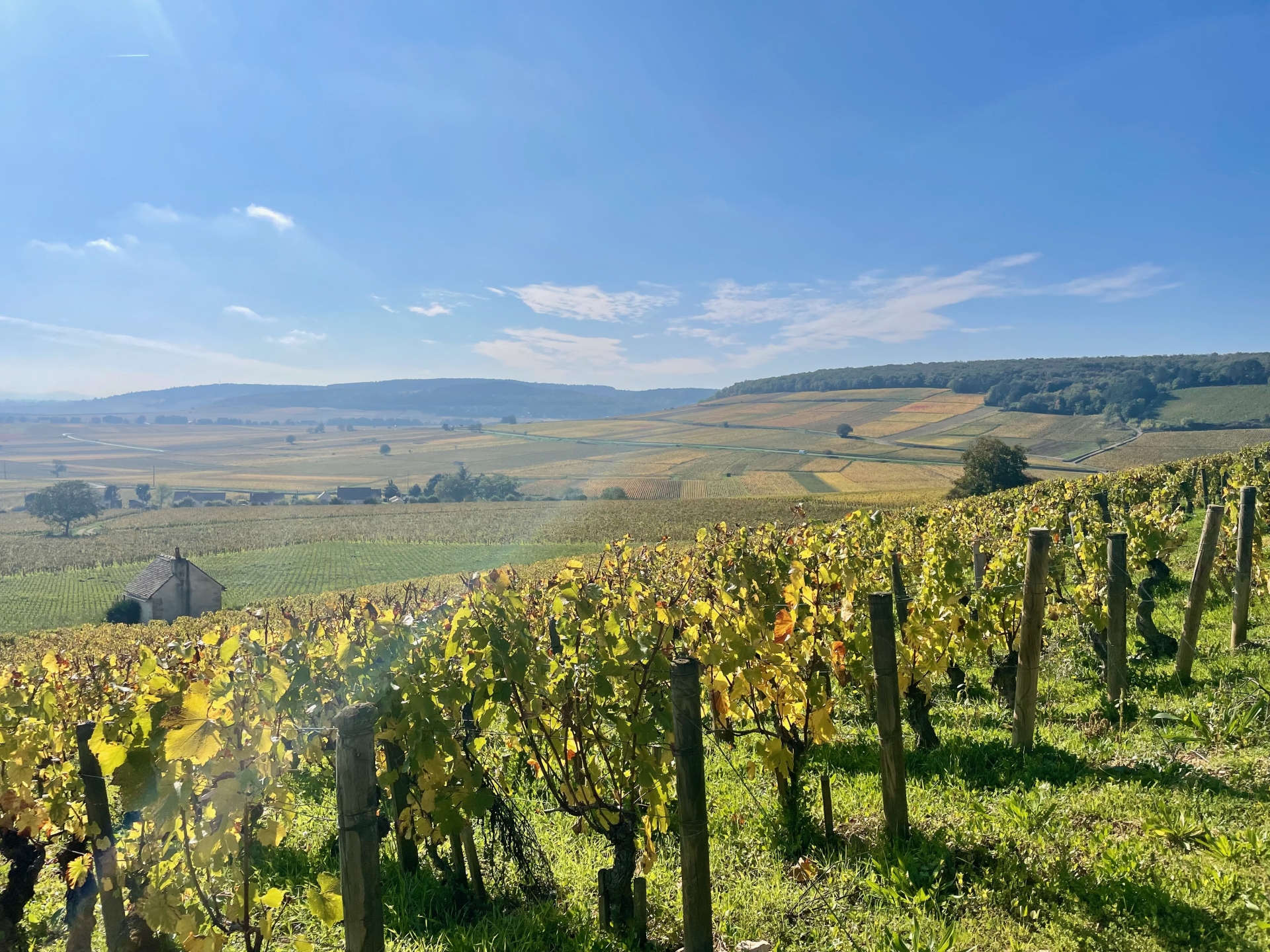 L’automne est sans doute la saison la plus magique pour se promener, et la colline de Corton, ce promontoire viticole mythique qui domine la Côte de Beaune, se trouve être un spot idéal. Lorsque les feuilles prennent les teintes d’or, de cuivre, de rouge profond, elles dessinent avec la vigne un patchwork de parcelles parfaitement alignées, soulignant les contours des climats, les murs de pierre, les coteaux façonnés par le soleil et le temps.
