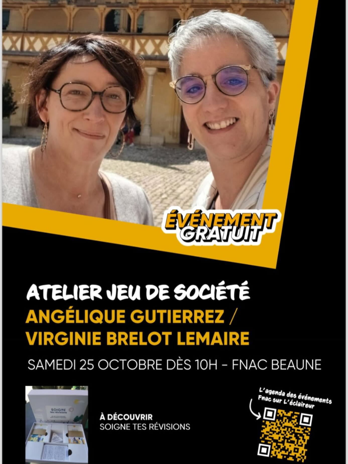 Pour faire découvrir leur création au grand public, Virginie et Angélique seront présentes le samedi 25 octobre à la Fnac de Beaune, de 10 h à 18 h. « On va se mettre à table et jouer ! C’est le meilleur moyen de montrer à quel point ce jeu peut plaire, même à ceux qui ne sont pas du métier », s’amuse Virginie. Un atelier de démonstration, des parties ouvertes, des échanges : la journée s’annonce conviviale et instructive.