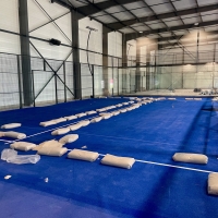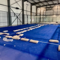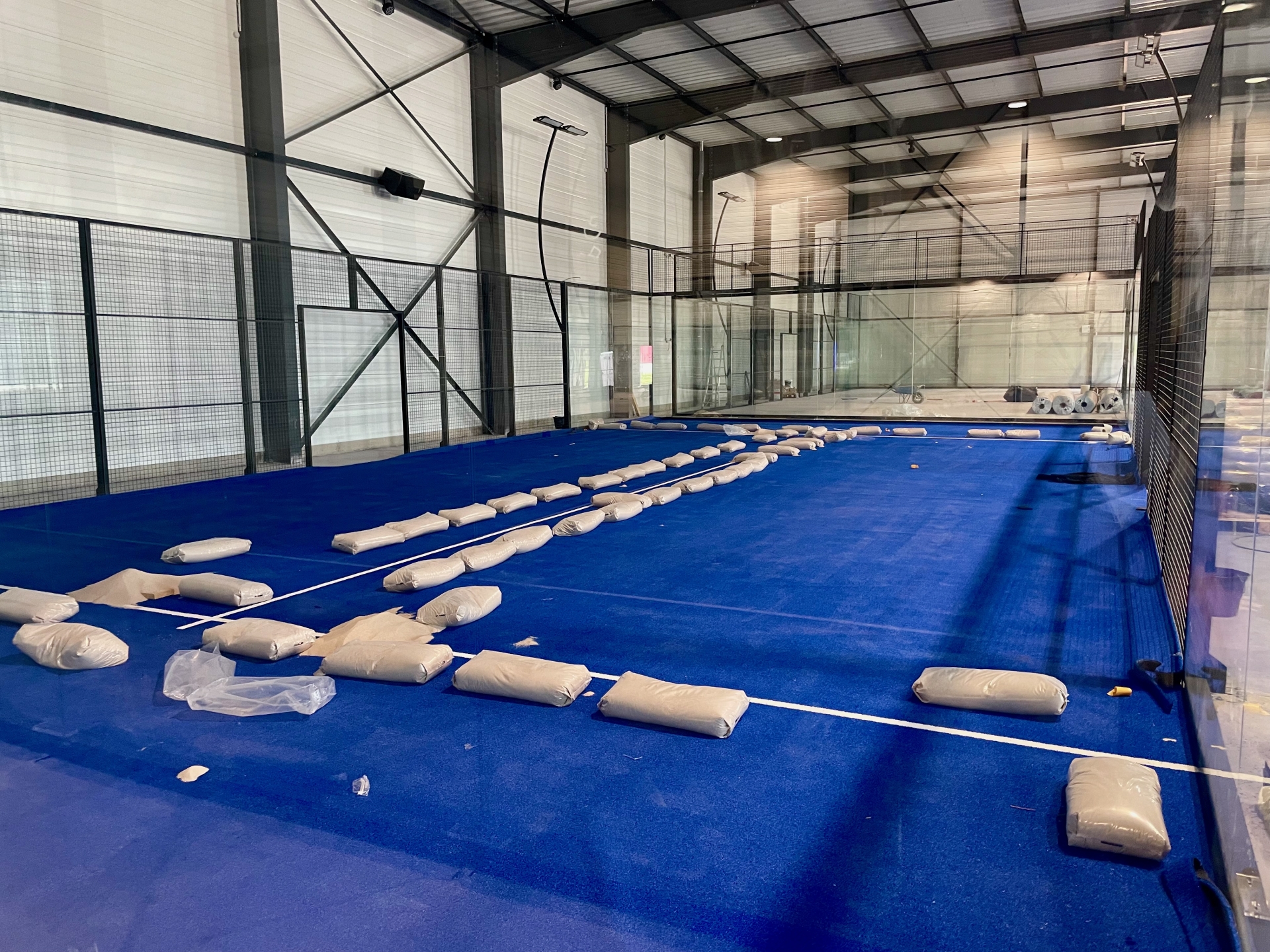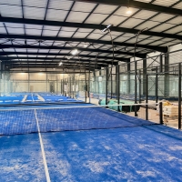 Le complexe abritera six pistes de padel indoor panoramiques, équipés de revêtements synthétiques dernière génération, identiques à ceux utilisés dans les grands tournois de Bordeaux ou Paris. Ce sol haute performance garantit un rebond maîtrisé et une réduction des impacts articulaires, pour un confort de jeu optimal.