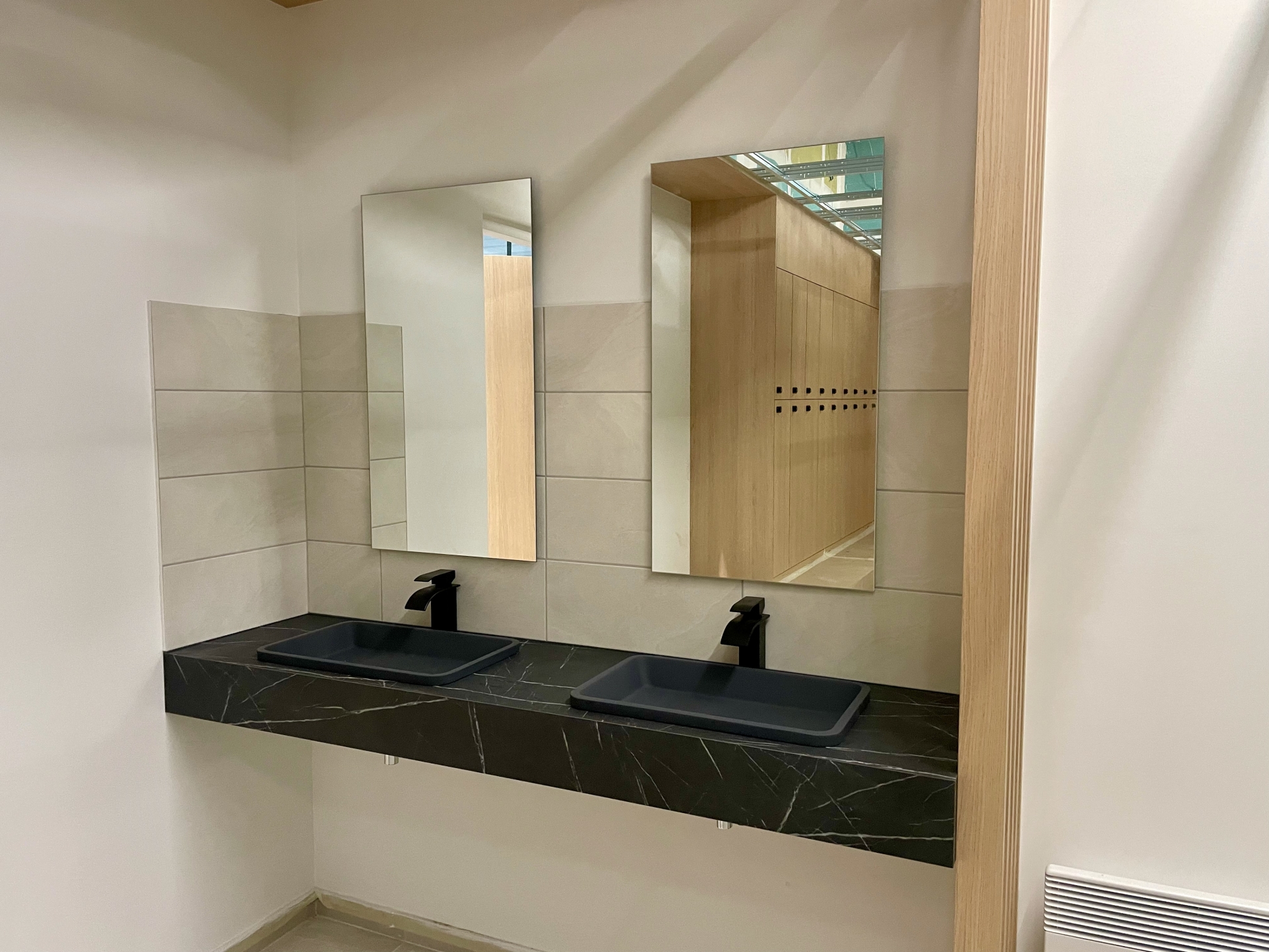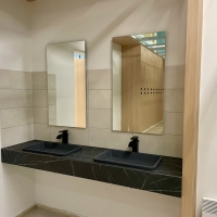 À l’intérieur, les artisans s’affairent. L’espace lounge s’annonce comme un véritable cœur de vie, mêlant bois et matériaux nobles. De grands canapés, des tables hautes et un bar central offriront un espace de détente avant ou après les matchs. Le bar proposera snacking, boissons et dégustations locales, tandis qu’un grand écran permettra de suivre les compétitions sportives. Les spectateurs, même non joueurs, pourront profiter de l’ambiance grâce à une baie vitrée panoramique donnant sur les six pistes. « On veut que tout le monde s’y sente bien, même ceux qui accompagnent les joueurs. C’est un lieu de vie avant tout », souligne Arnaud Jacquet.