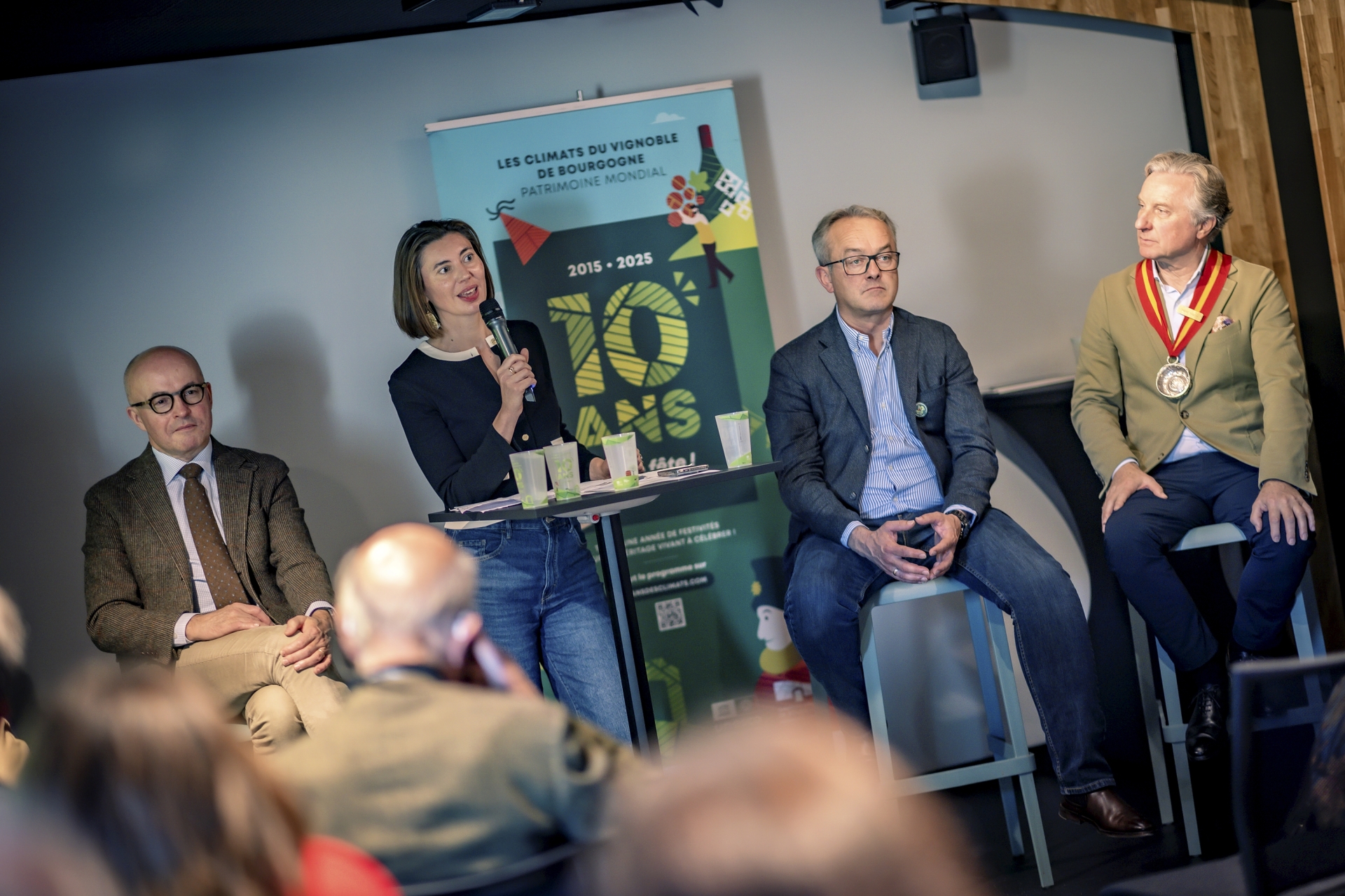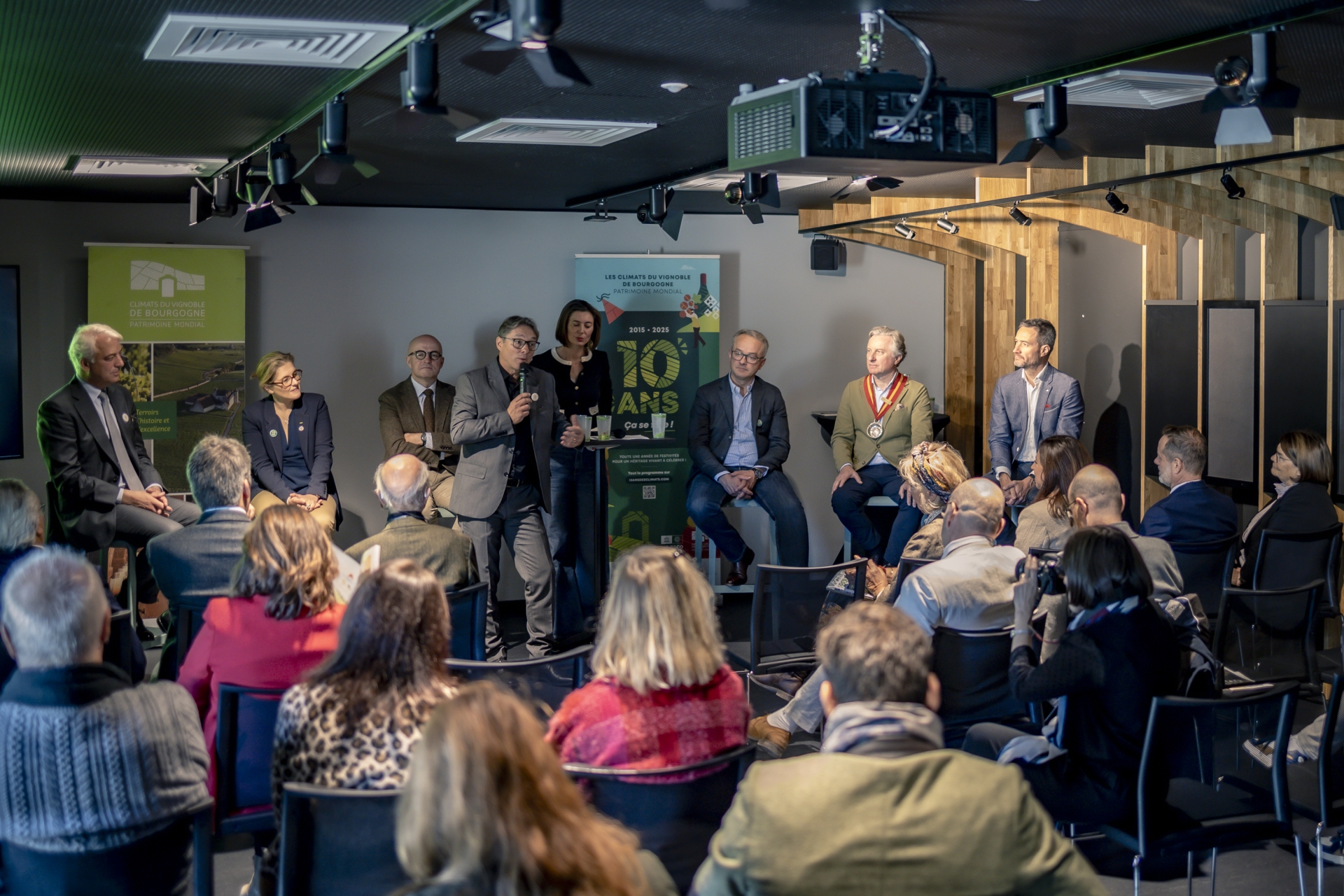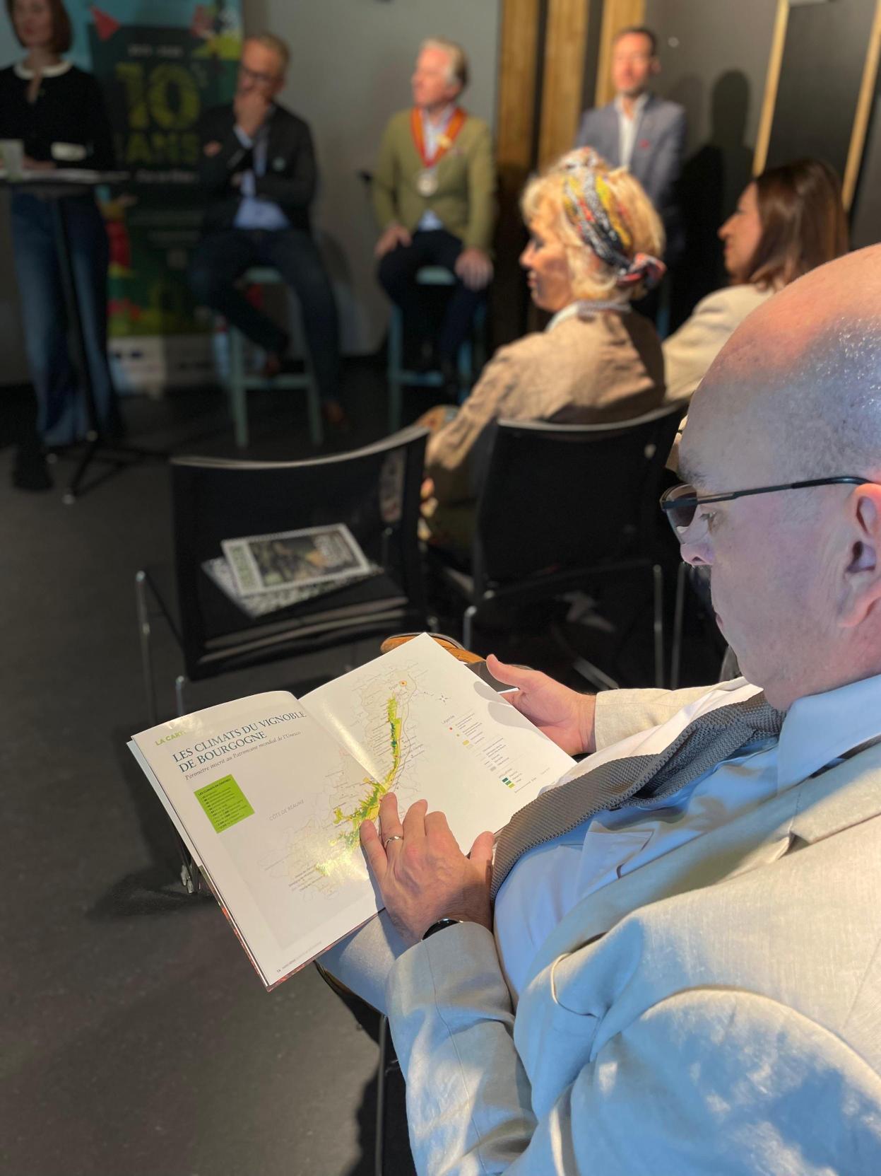 Attendus par Gilles De Larouzière, Président de l’Association des Climats du vignoble de Bourgogne, Laurent Delaunay, Président du Comité Bourgogne, de Jean-François Curie, Grand Maitre de la Confrérie du Tastevin et par Bertrand Gauvrit, directeur de l’Association des Climats du vignoble de Bourgogne, ils ont débattu sur les enjeux d’hier, d’aujourd’hui et de demain.