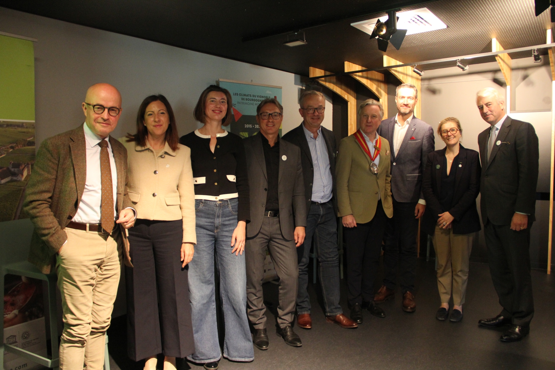 Une délégation composée de Séverine Couvreur, Présidente de la Mission Coteaux, Maisons et Caves de Champagne Patrimoine mondial, David Chatillon, Co Président du Comité Champagne et Président de l’Union des Maisons de Champagne, François-Xavier Morizot, Commandeur de l’Ordre des Coteaux de Champagne et Laure Ménétrier, directrice et conservatrice du musée du vin de Champagne et d’Archéologie régionale à Épernay, avait fait le déplacement pour rencontrer leurs homologues bourguignons.