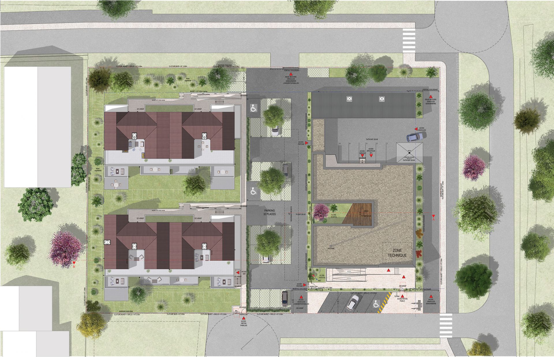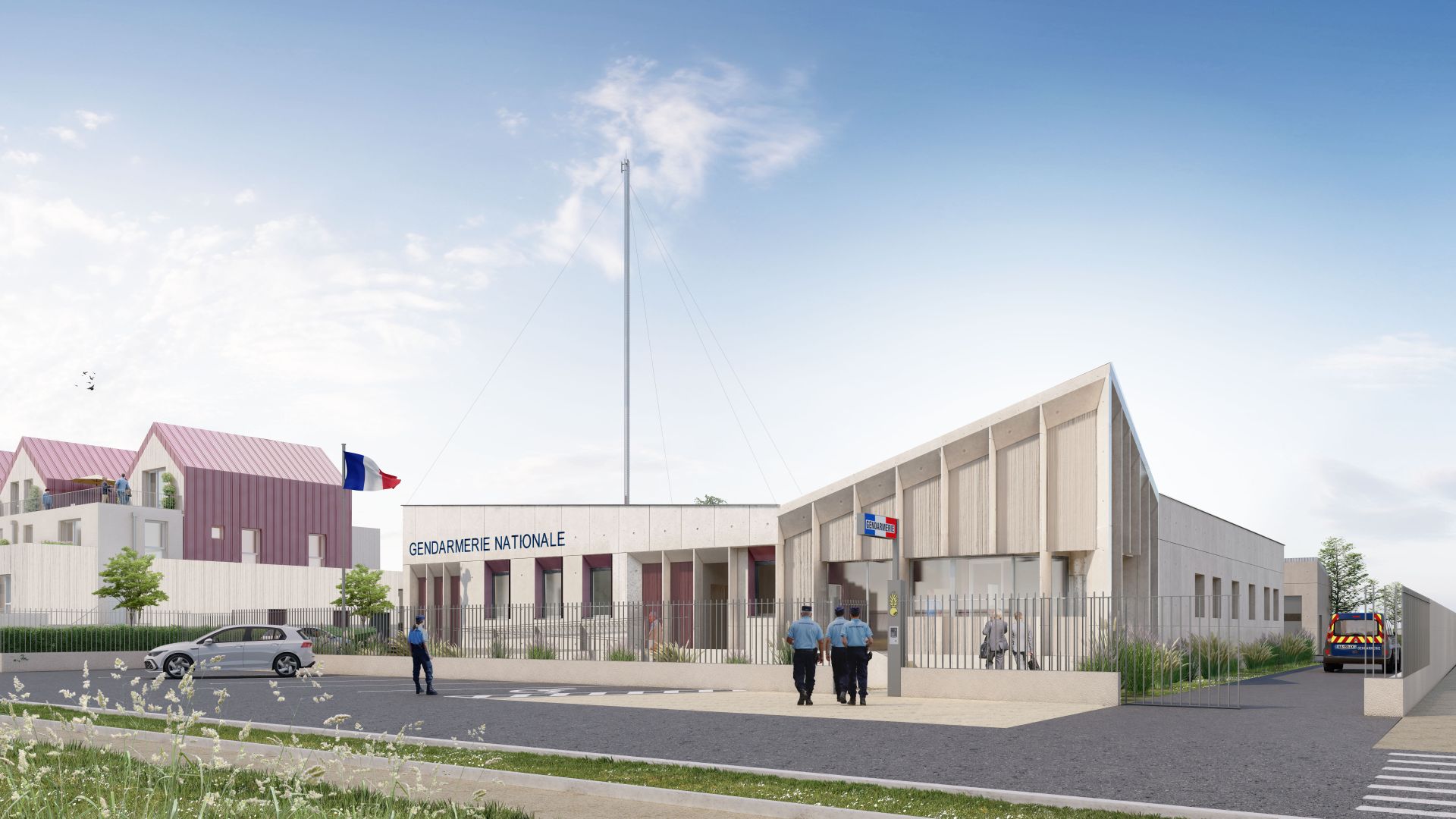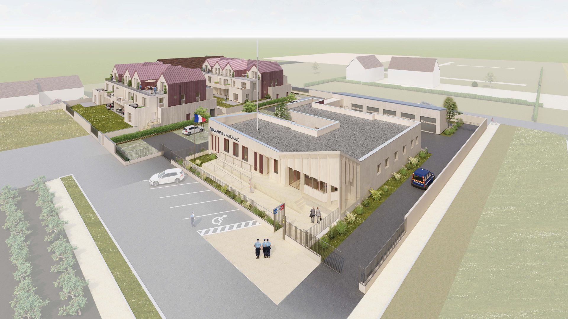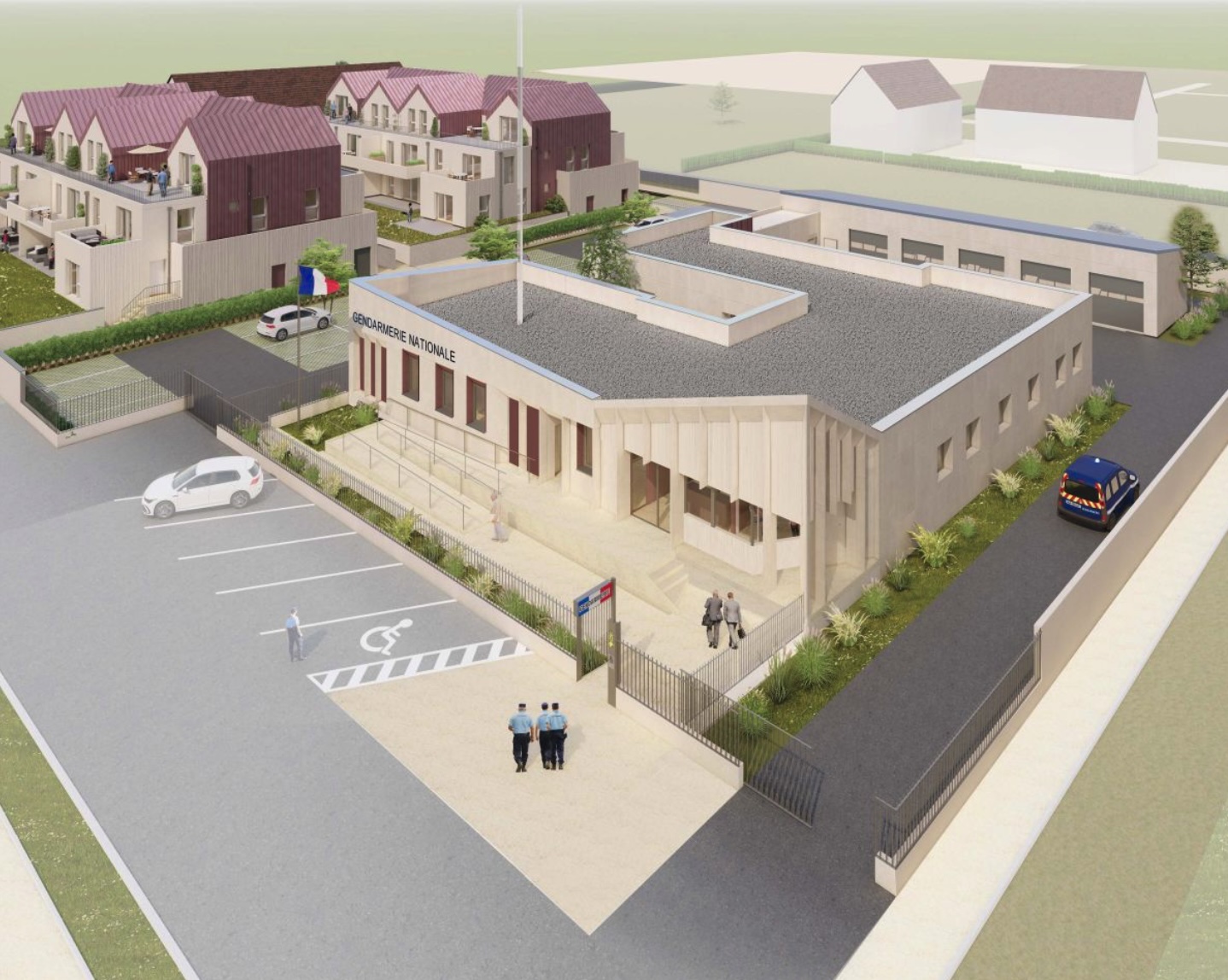 La future gendarmerie s’étendra sur 5 165 m². Le bâtiment principal des deux entités - une brigade de proximité chef-lieu (BPCL) et une brigade motorisée (BMO) - regroupera 530 m² de locaux administratifs et techniques, tandis que la partie résidentielle comptera 20 logements destinés aux familles des militaires : un T2, cinq T3, neuf T4, trois T5 et un T6 répartis sur deux bâtiments à un étage avec combles aménagées. Chaque logement disposera d’un balcon ou d’un jardin privatif.