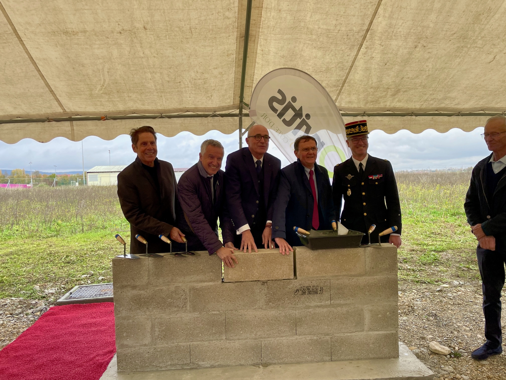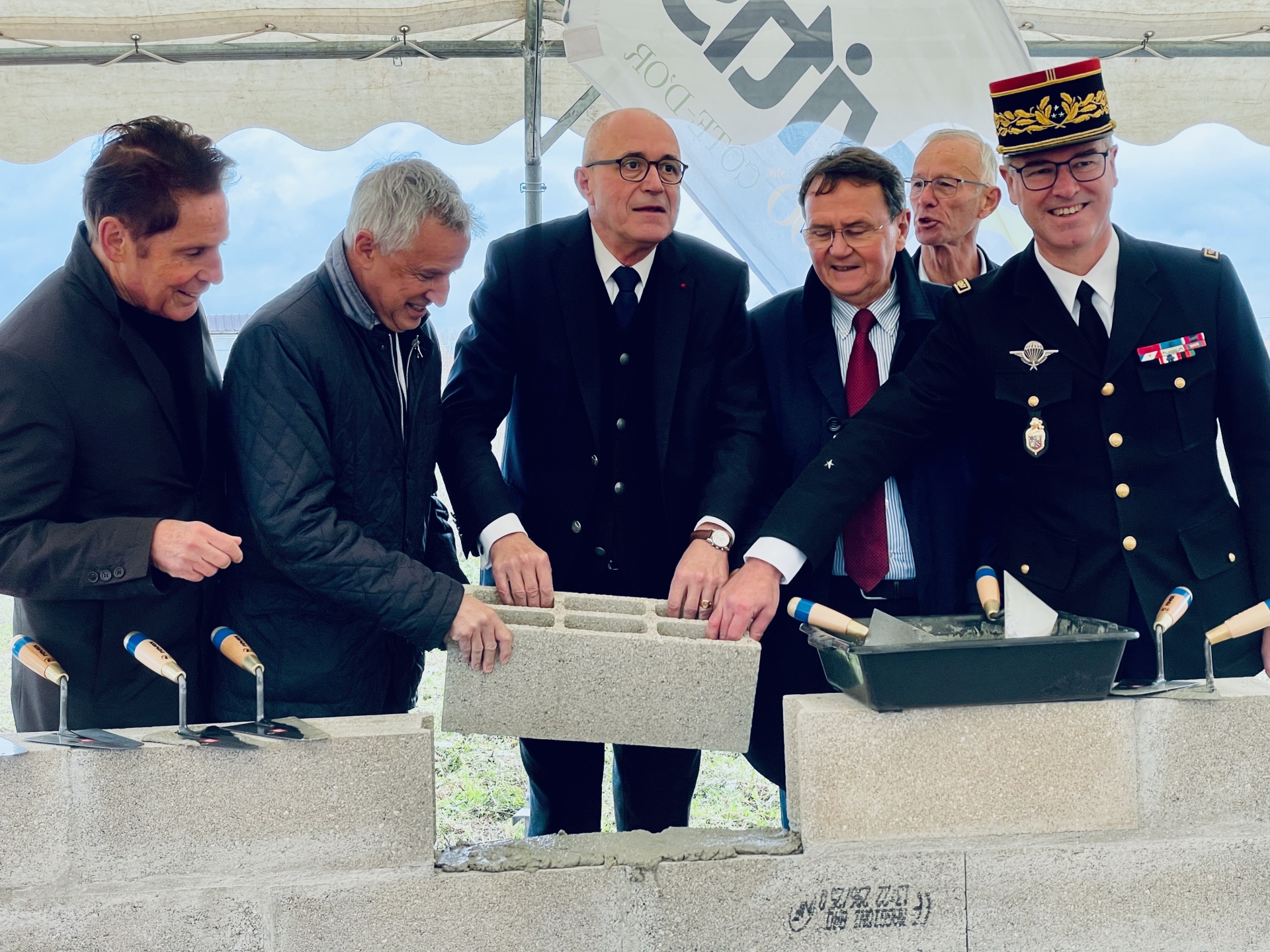 Impasse Arnaud-Beltrame. Le nom résonne d’emblée comme un hommage, une promesse de courage et de dévouement. C’est là, dans cette rue nouvellement créée en mémoire du gendarme héroïque tombé au cours de l’attaque terroriste islamiste à Trèbes en 2018 après s’être substitué à un otage, qu’a été posée ce lundi matin la première pierre de la nouvelle gendarmerie de Meursault. Autour de Denis Thomas, maire de la commune, on retrouvait François-Xavier Dugourd, président d’Orvitis — premier bailleur social du département et maître d’ouvrage du projet —, le général de division Sylvain Laniel, commandant la région de gendarmerie Bourgogne-Franche-Comté, Paul Mourier, préfet de la région et du département, ainsi qu’Alain Suguenot, maire de Beaune et président de la communauté d’agglomération Beaune Côte & Sud.