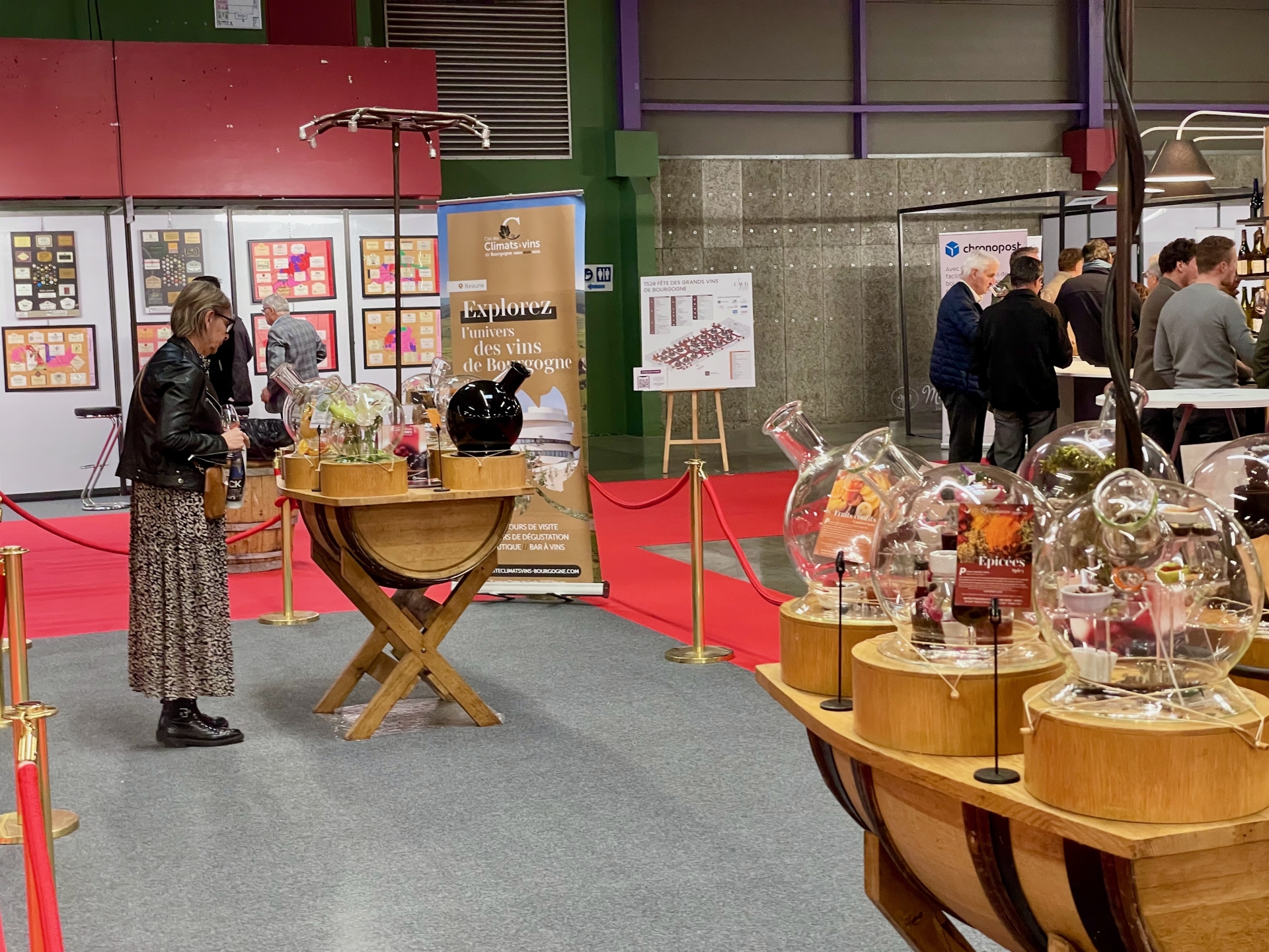 Dans les 15 pôles circulaires du Palais des Congrès, les visiteurs voyagent de Chablis au Mâconnais, de la Côte de Nuits à la Côte Chalonnaise, en passant par la Côte de Beaune.