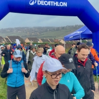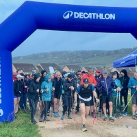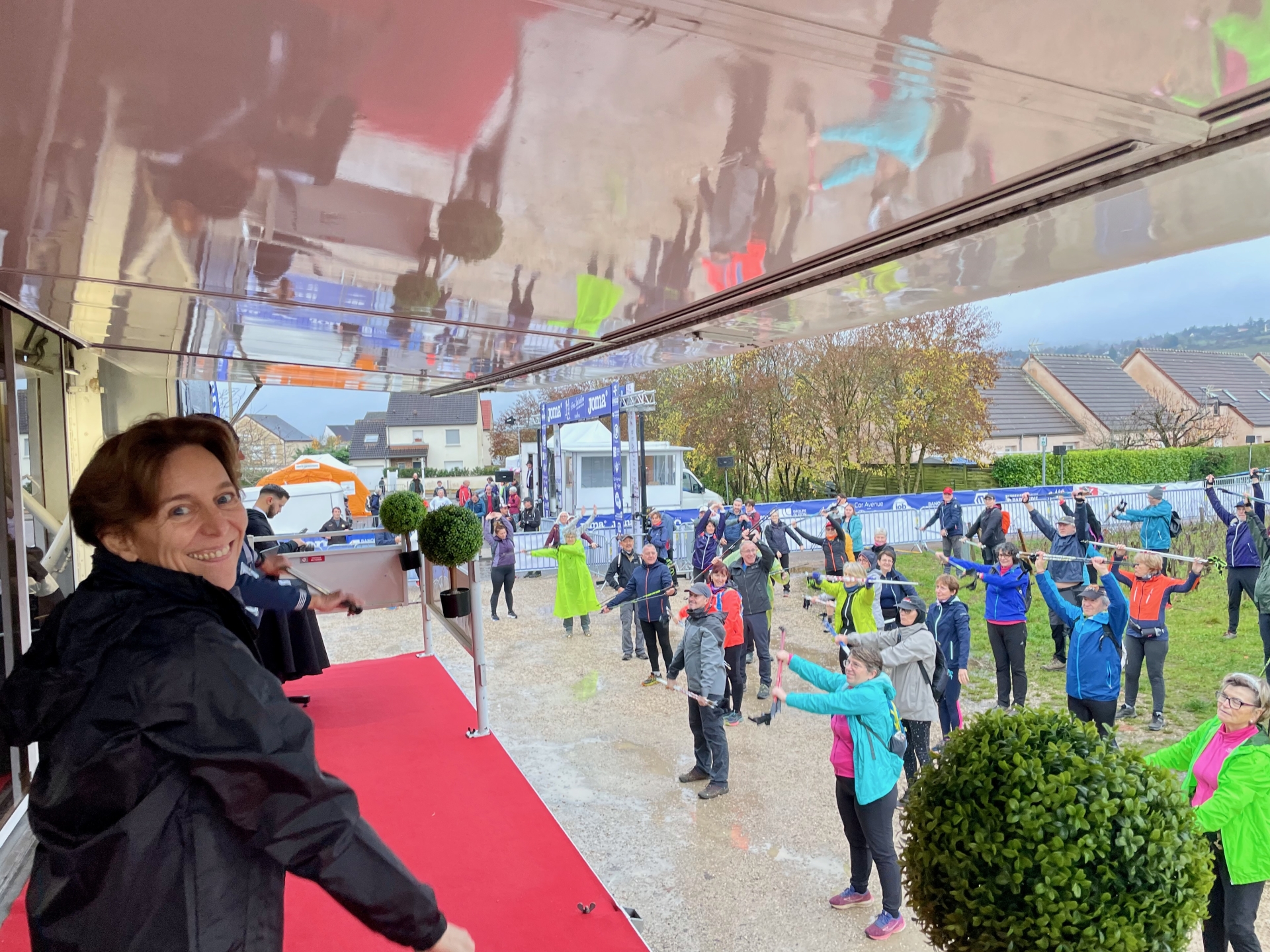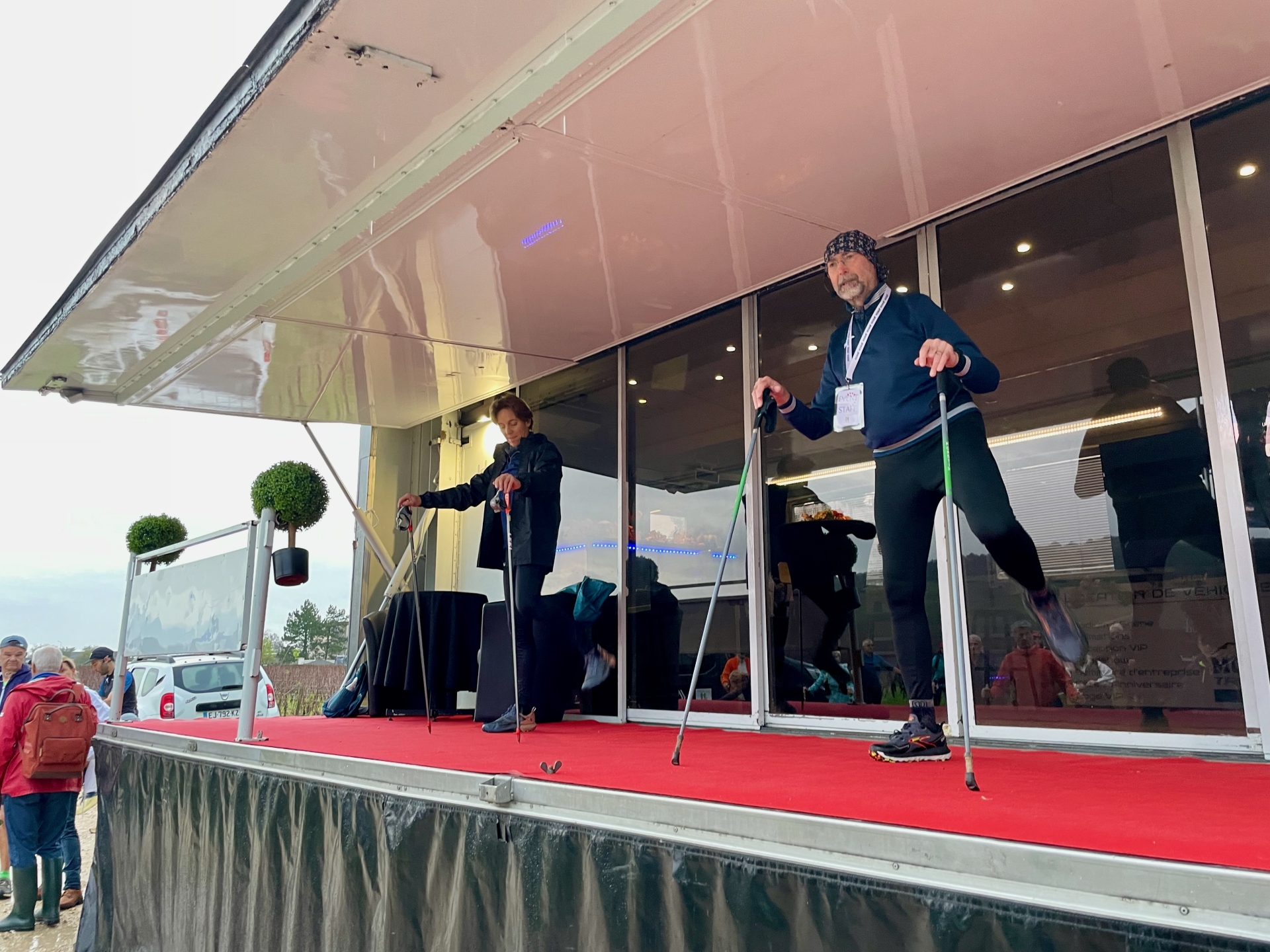 Avec 12°C en ce mois de novembre, la douceur de l’air contrastait avec l’averse ininterrompue rendant les chemins détrempés et glissants. Pourtant, dès 8 h, les inscriptions affluaient. À 8 h 30, les marcheurs participaient ensemble à un échauffement collectif, indispensable avant d’affronter un parcours exigeant.