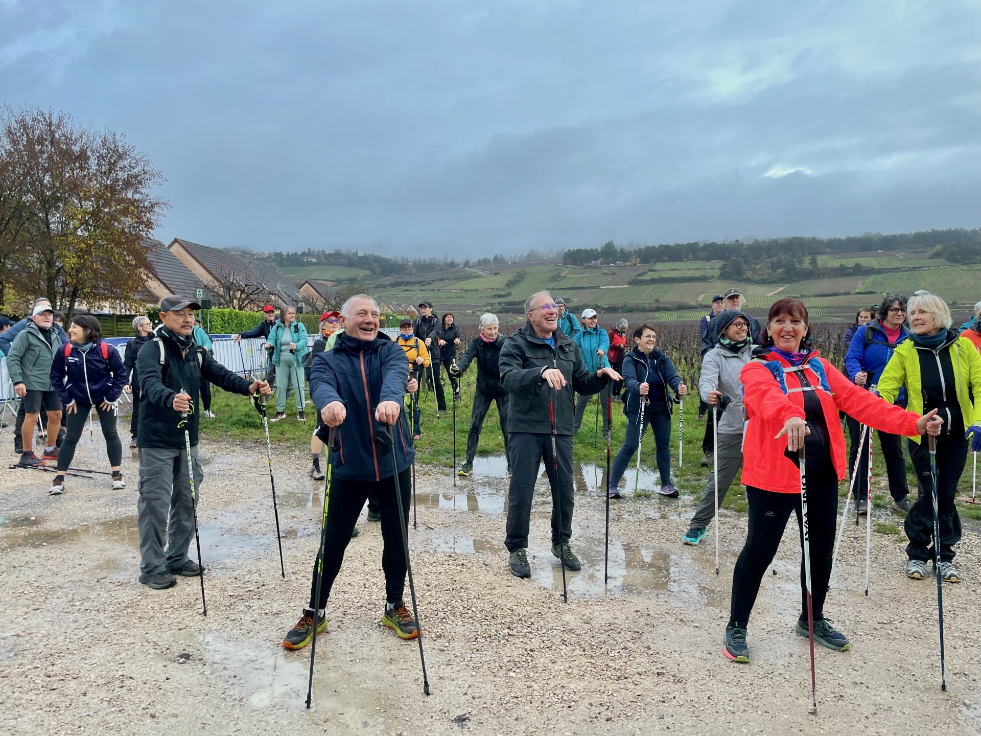 Ce samedi matin, Beaune s’est éveillée sous un ciel gris et une pluie persistante, mais l’enthousiasme n’a pas faibli pour autant. En marge de la célèbre Vente des Vins des Hospices, 120 courageux participants se sont retrouvés pour la traditionnelle sortie de marche nordique organisée par Les Bâtons Bavards, association présidée par Didier Grasset.