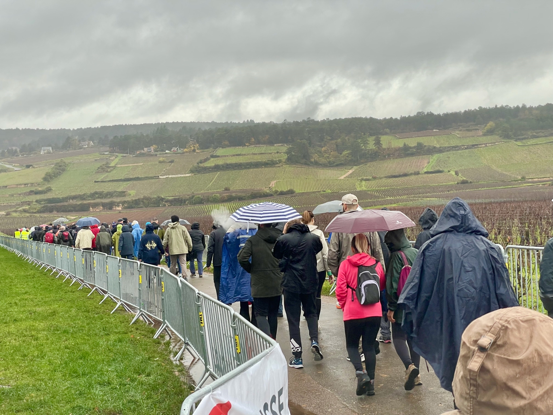 Longue de 6,5 km, la randonnée menait les participants à travers les vignes de Beaune avant d’emprunter la montée vers la Montagne de Beaune, jusqu’aux « Pierres Blanches », pour une altitude d'environ 350 mètres. Au fil des chemins bordés de ceps aux couleurs dorées de l’automne, chacun avançait à son rythme.