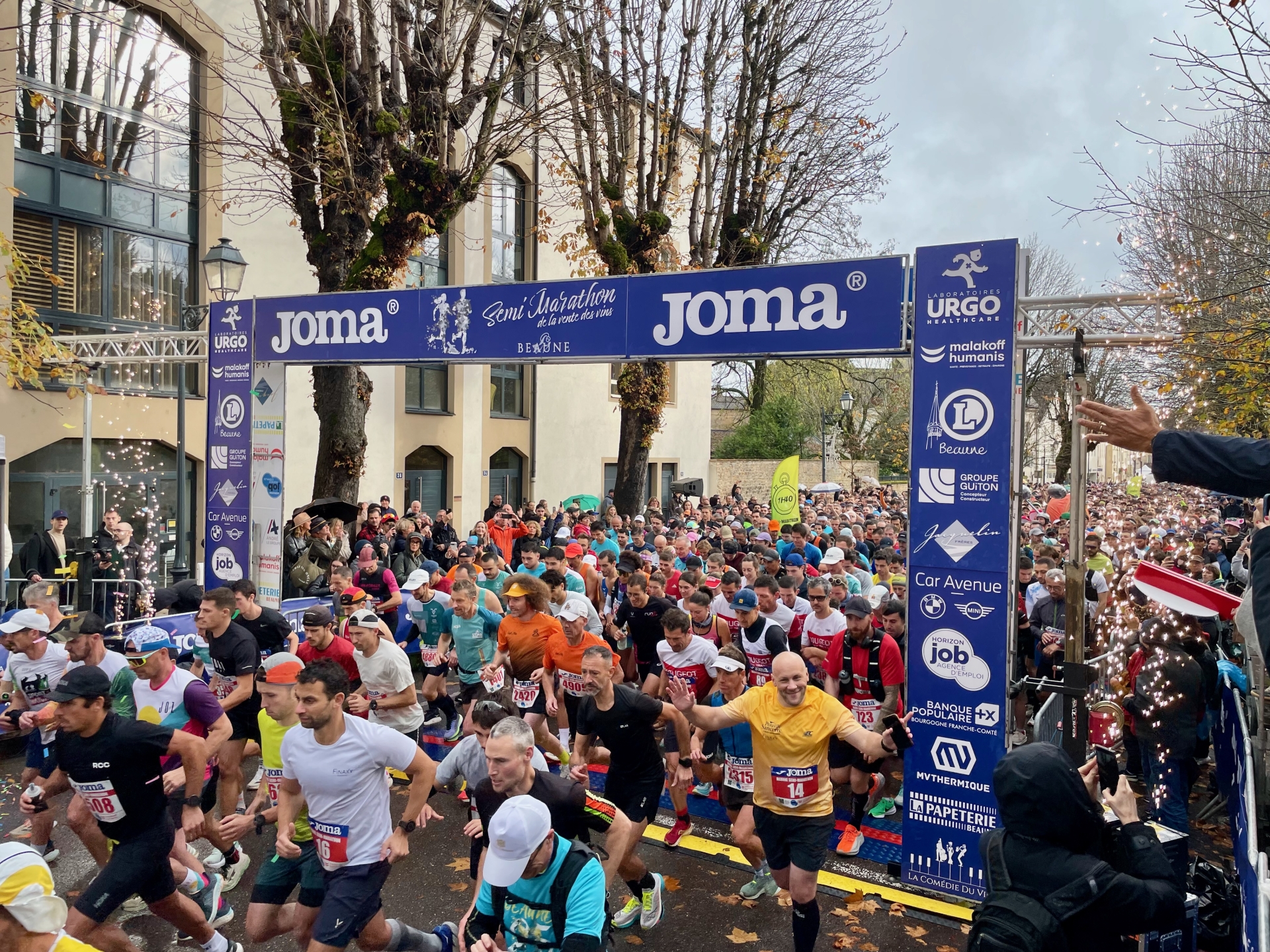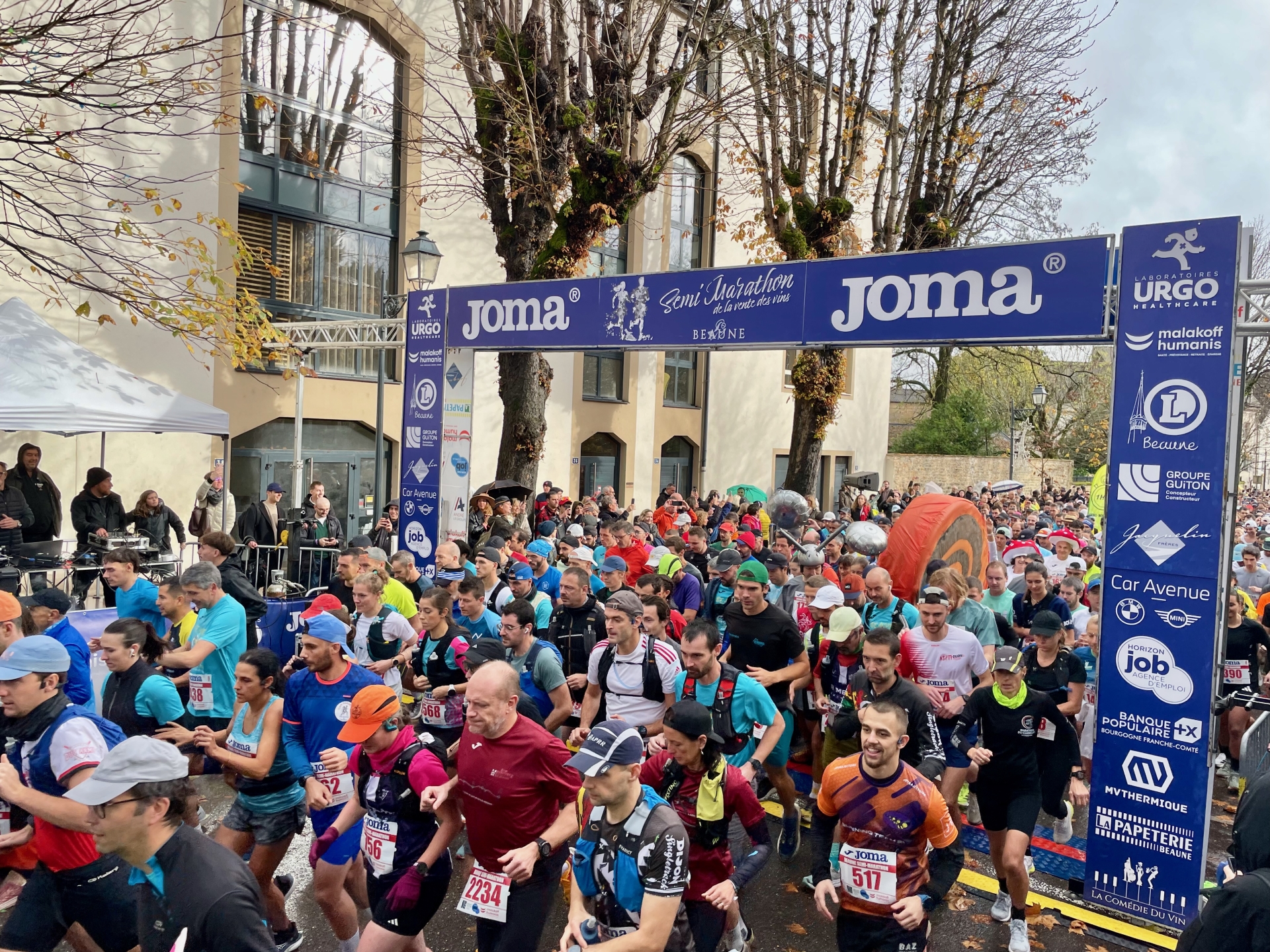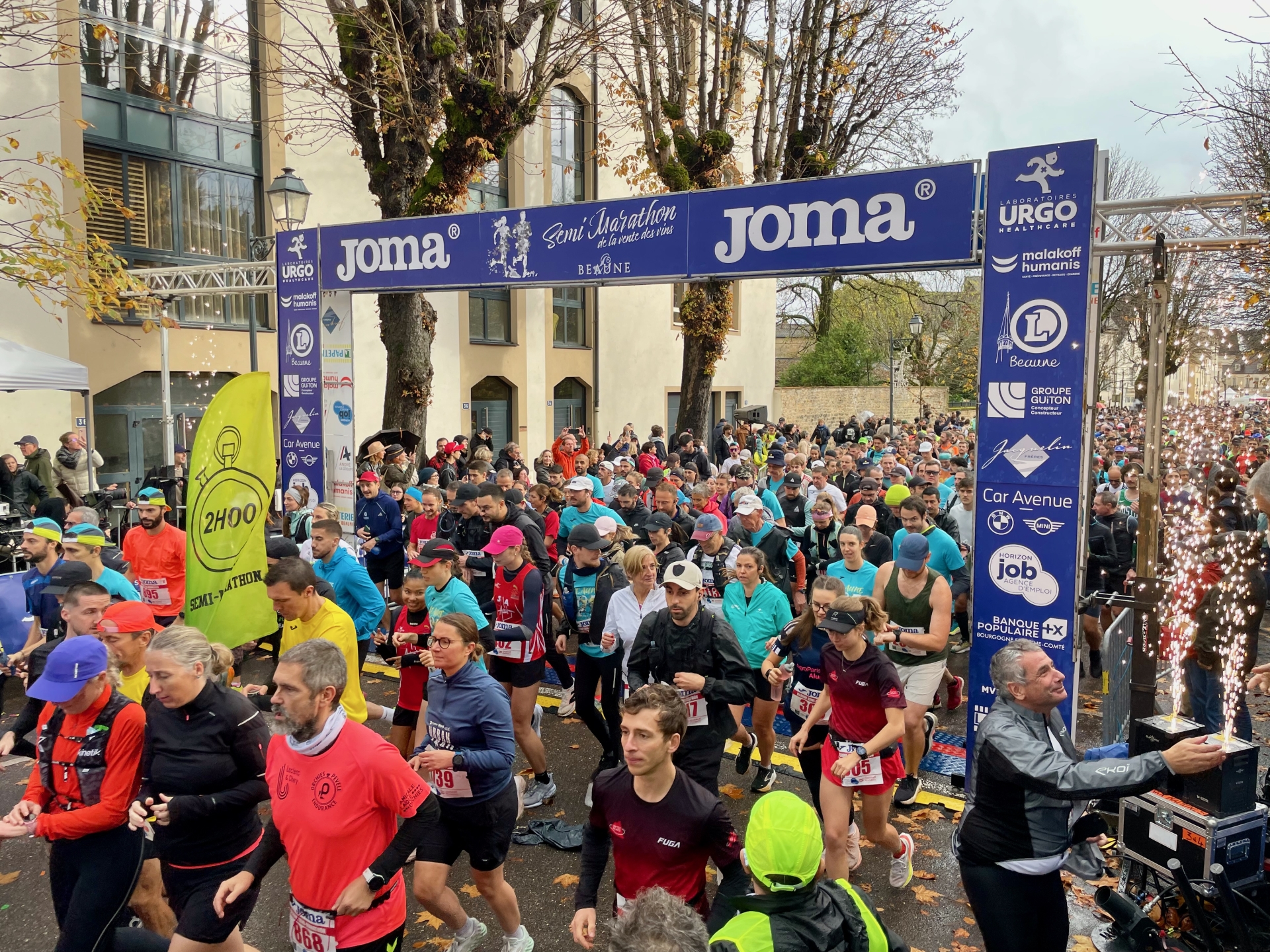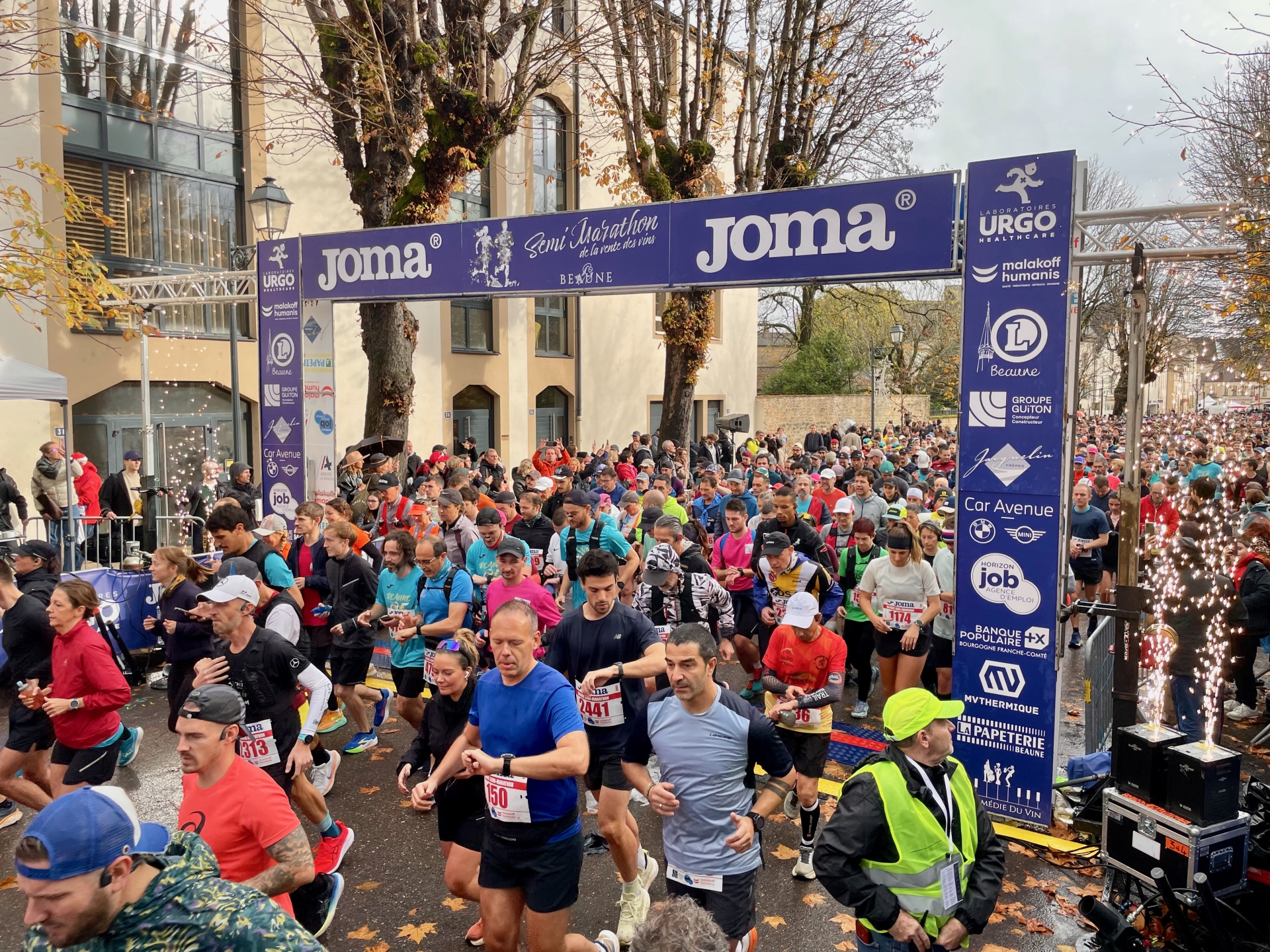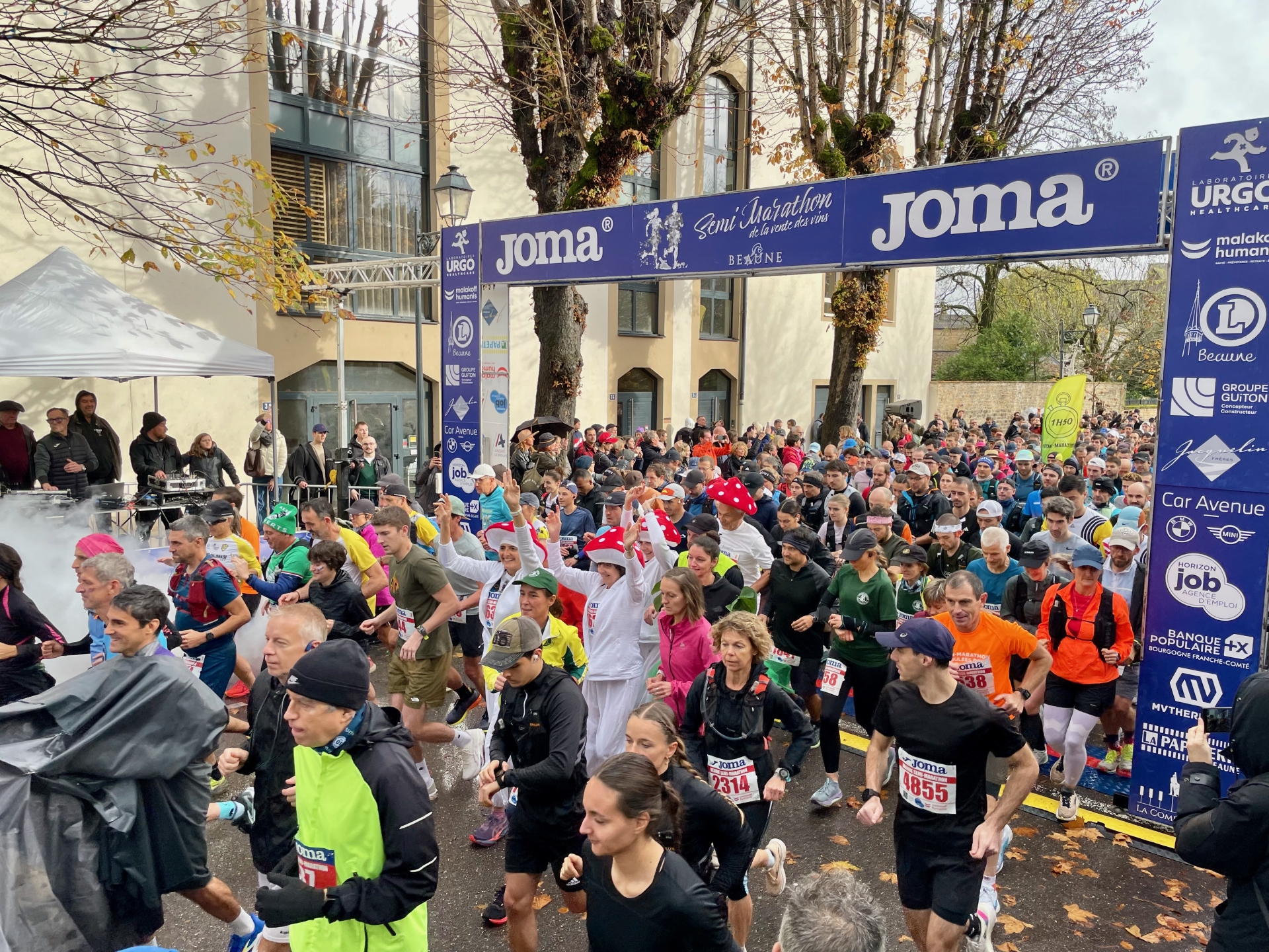 La pluie a cessé à temps : à 14 h, plus de 3 000 coureurs se sont élancés pour le 38ᵉ Semi-Marathon de la Vente des Vins de Beaune, dans une ambiance survoltée entre holà, ban bourguignon et spectacle pyrotechnique.