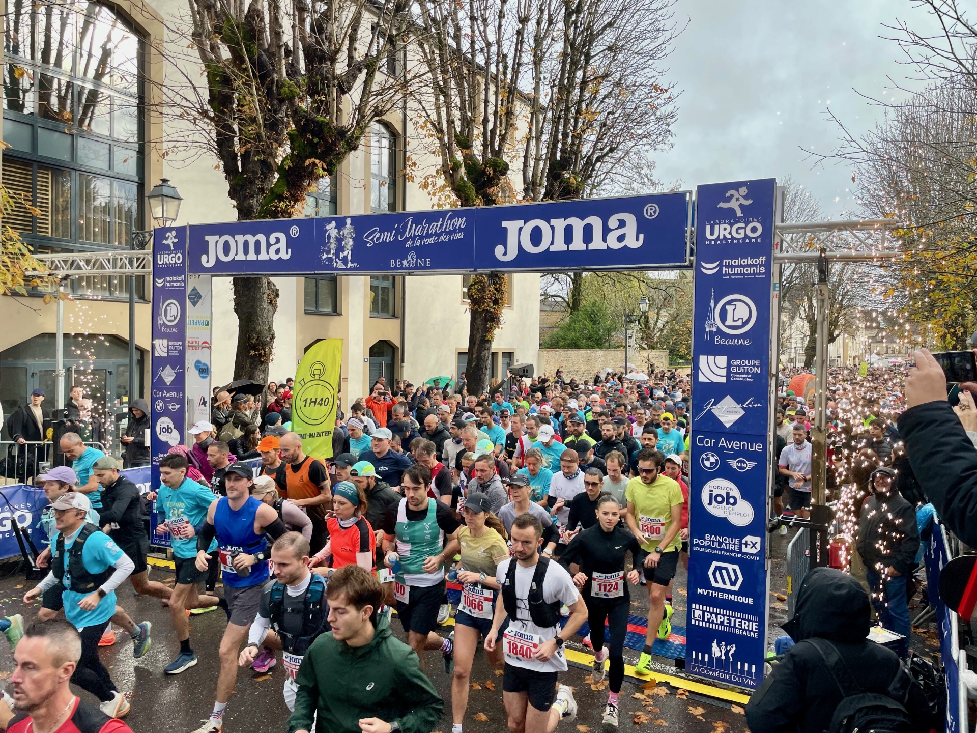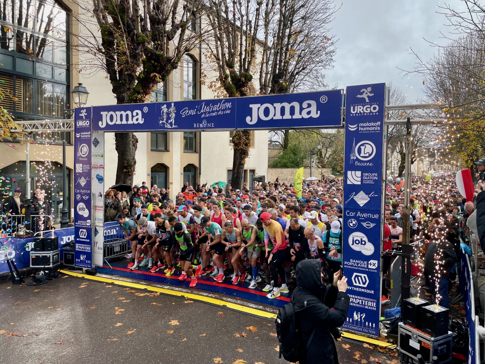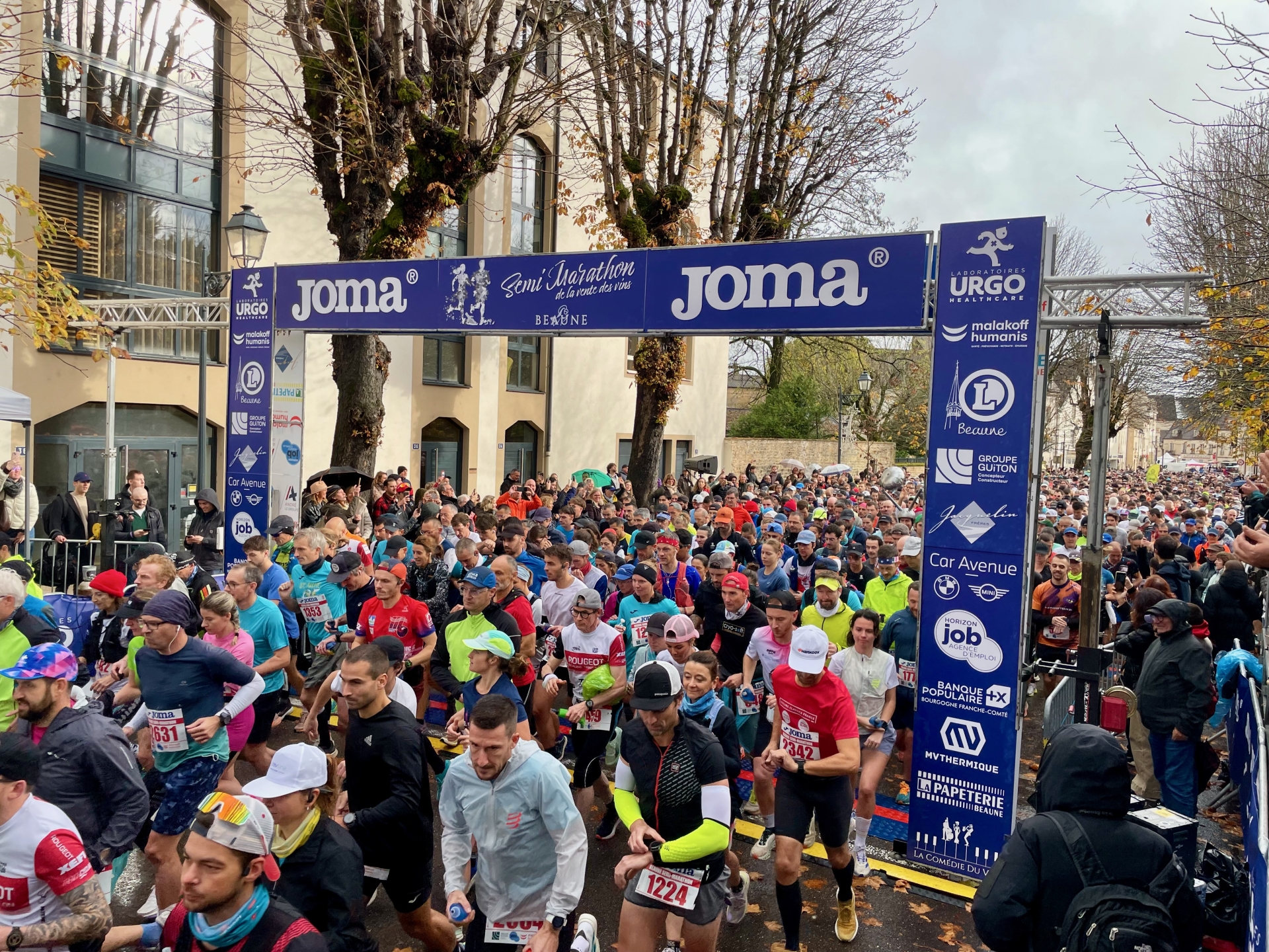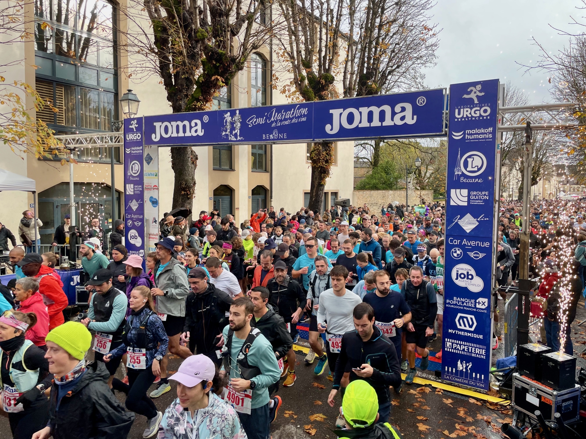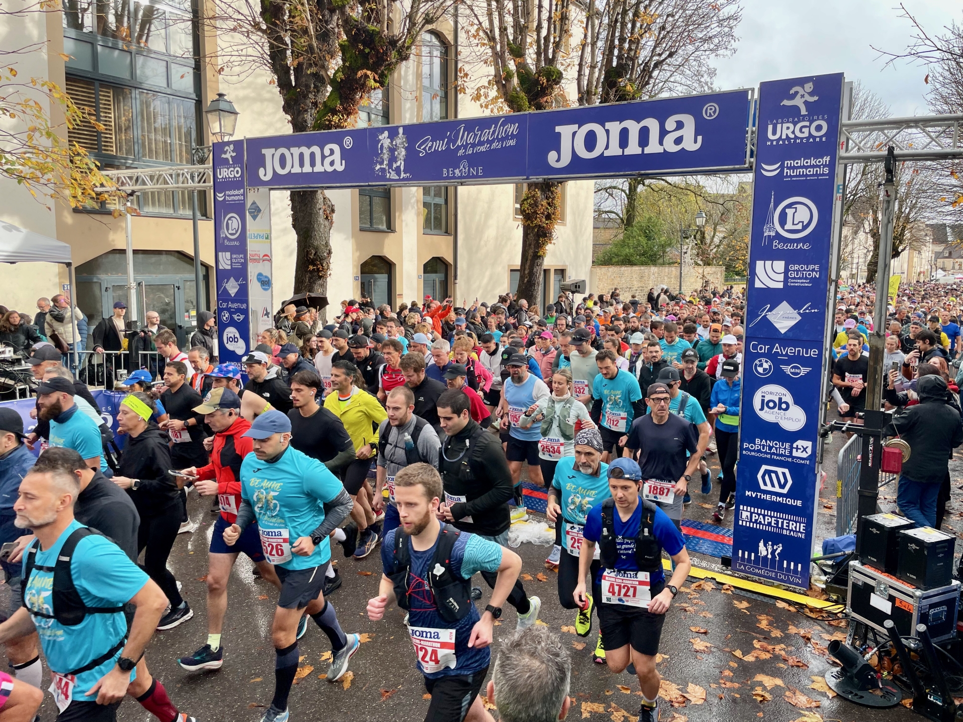 La pluie a cessé à temps : à 14 h, plus de 3 000 coureurs se sont élancés pour le 38ᵉ Semi-Marathon de la Vente des Vins de Beaune, dans une ambiance survoltée entre holà, ban bourguignon et spectacle pyrotechnique.