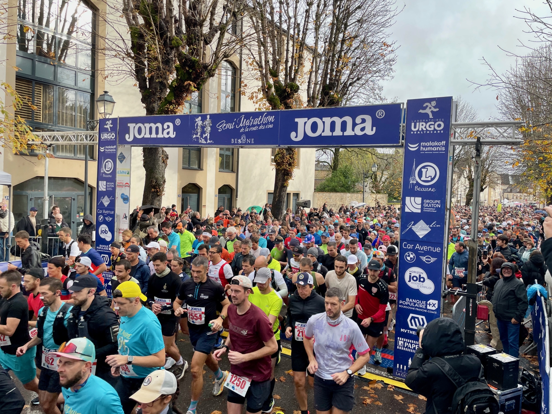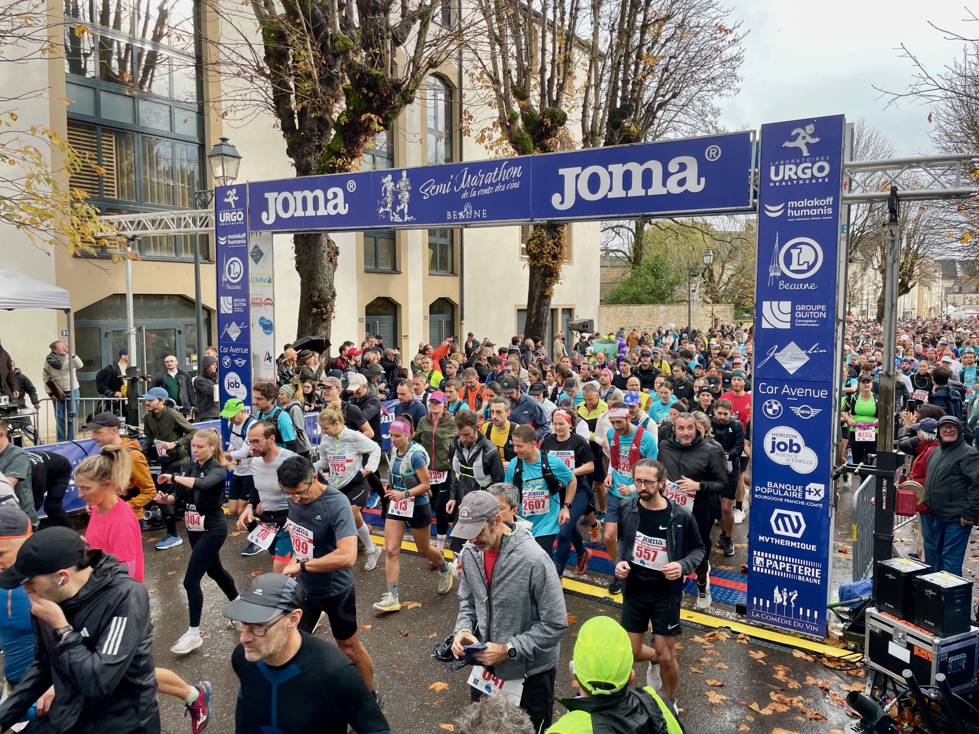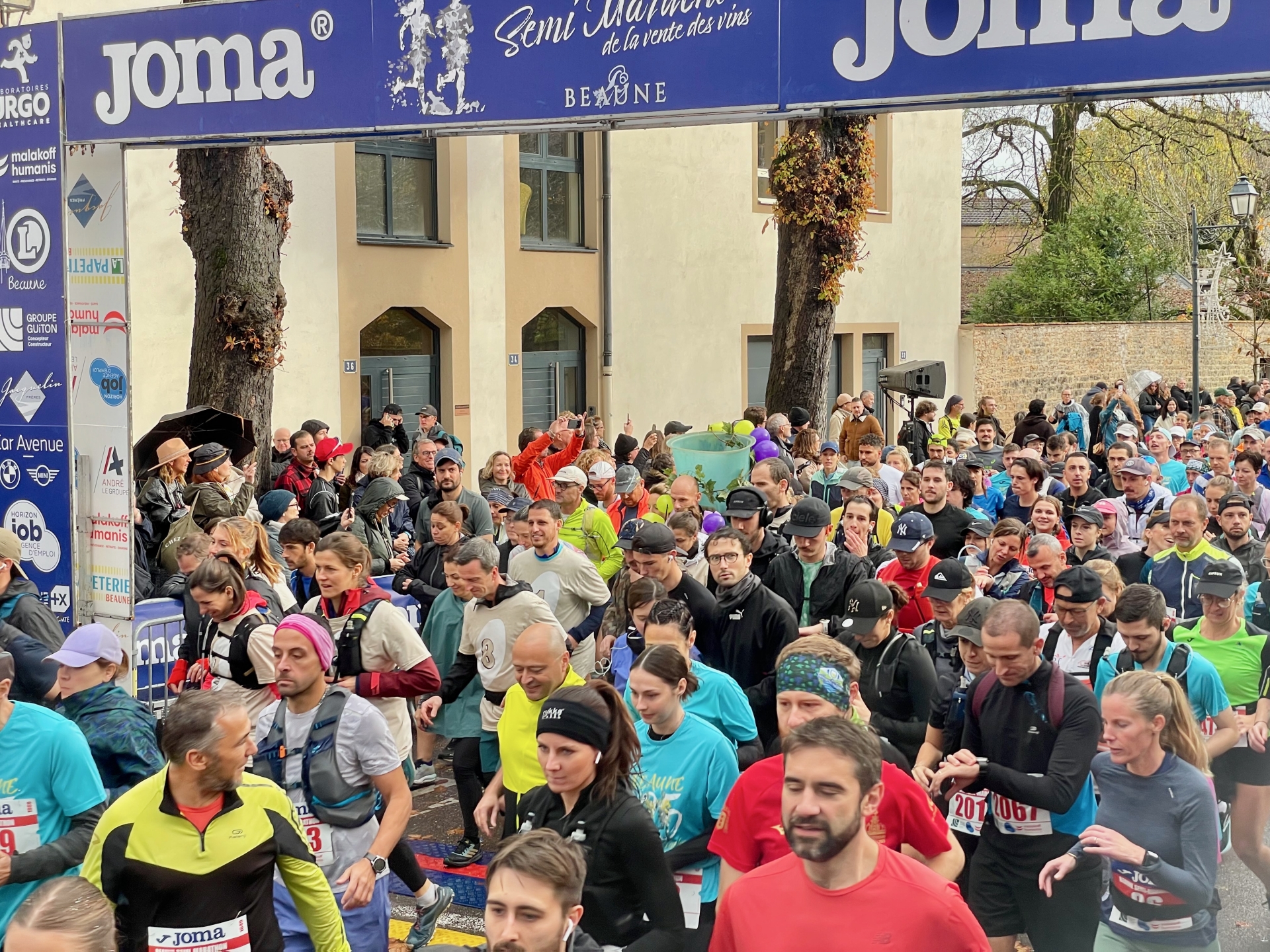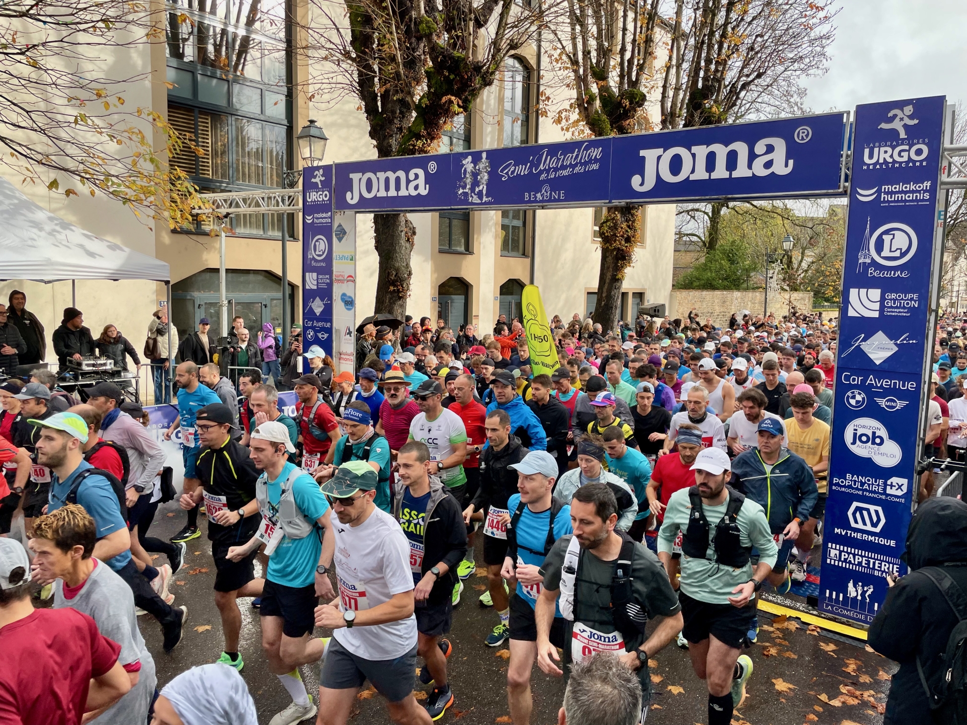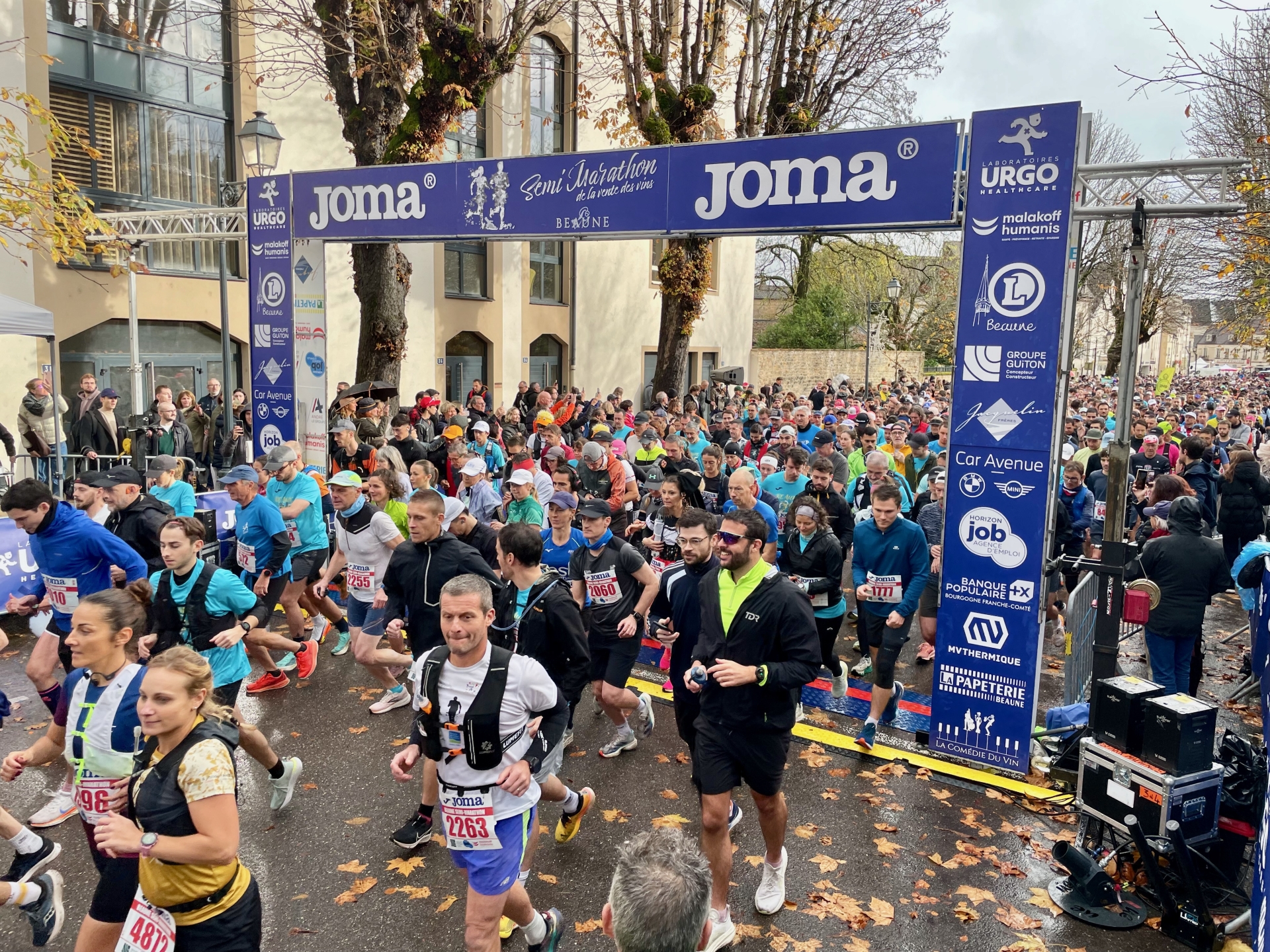 La pluie a cessé à temps : à 14 h, plus de 3 000 coureurs se sont élancés pour le 38ᵉ Semi-Marathon de la Vente des Vins de Beaune, dans une ambiance survoltée entre holà, ban bourguignon et spectacle pyrotechnique.