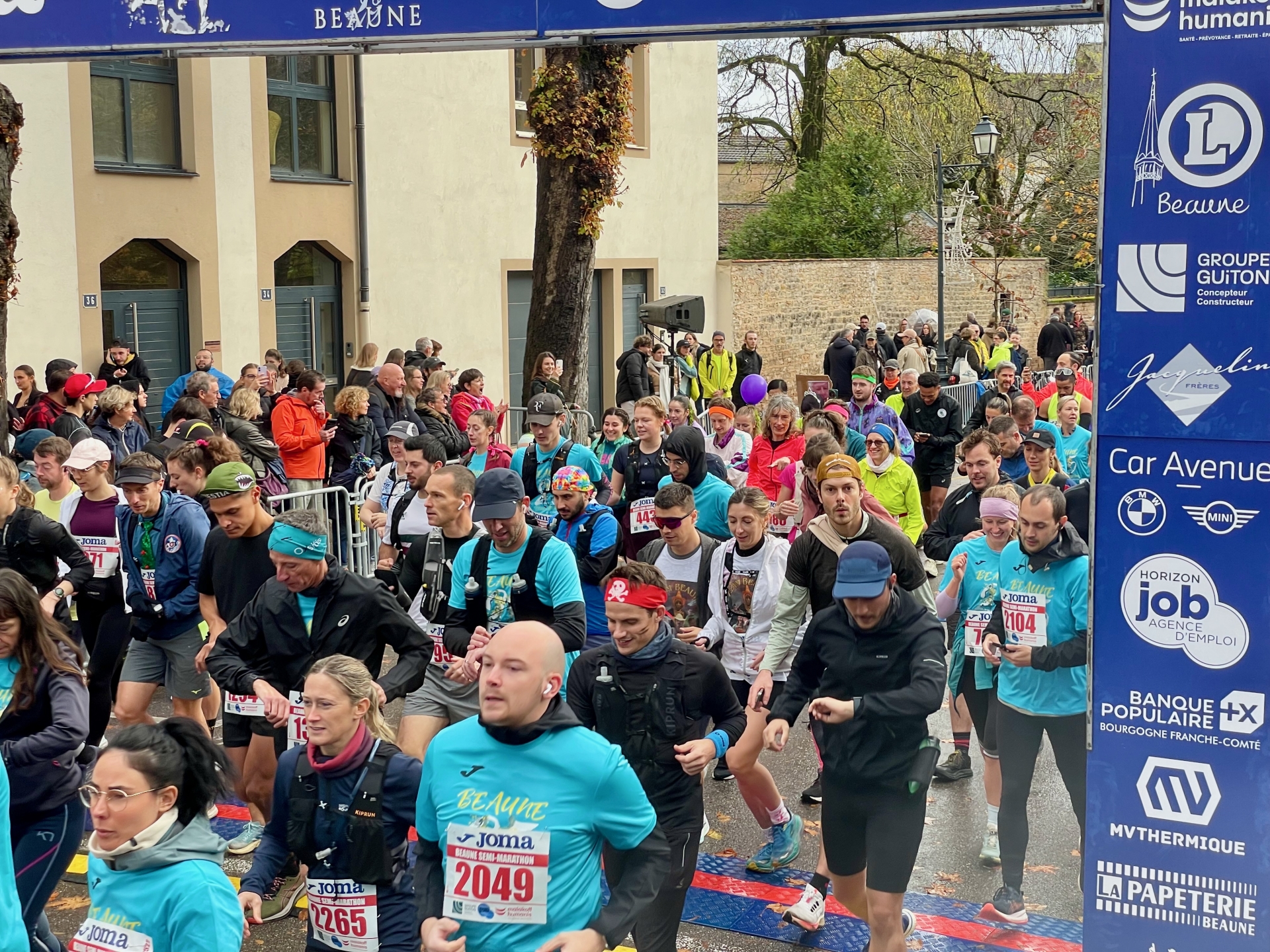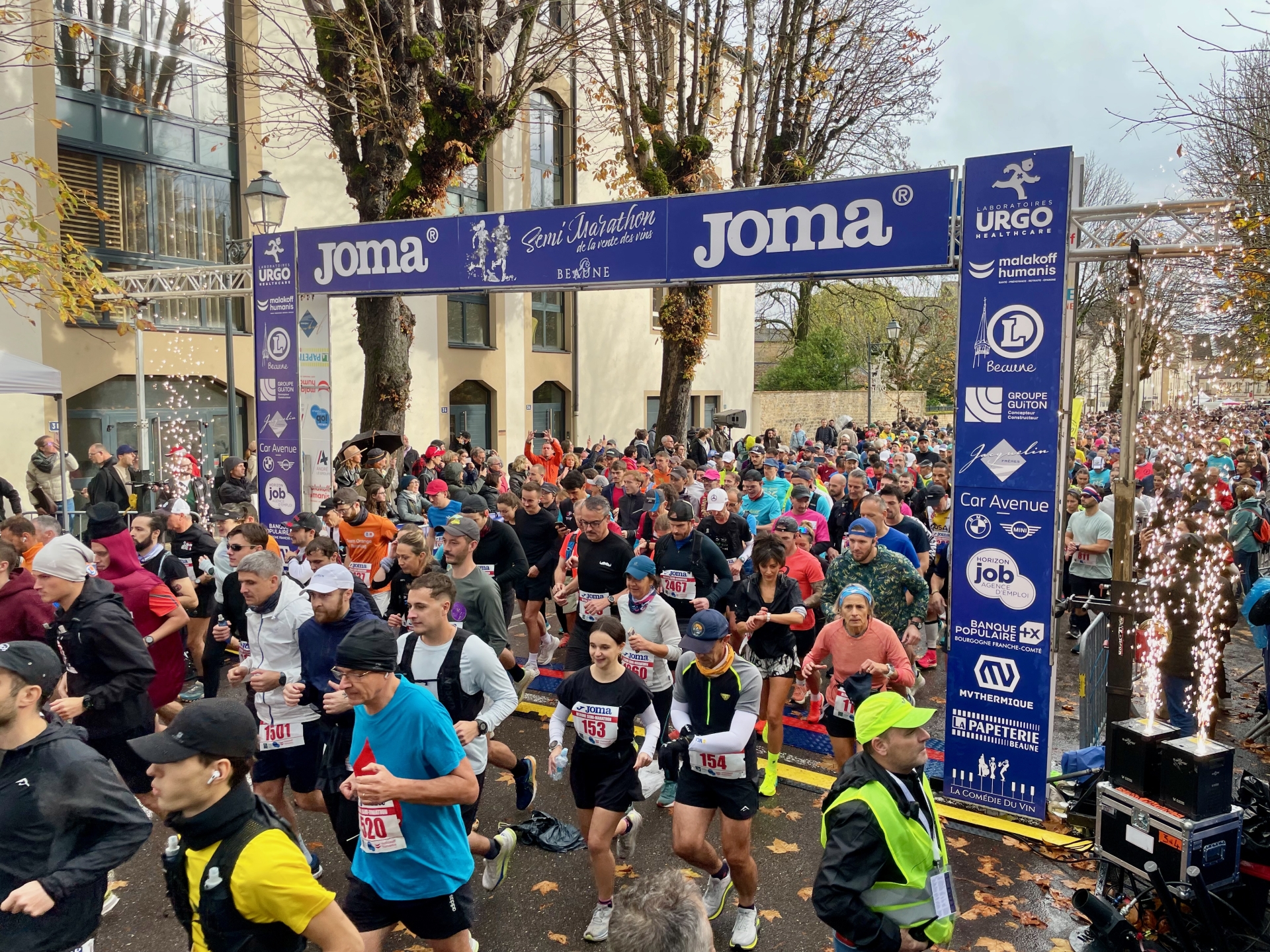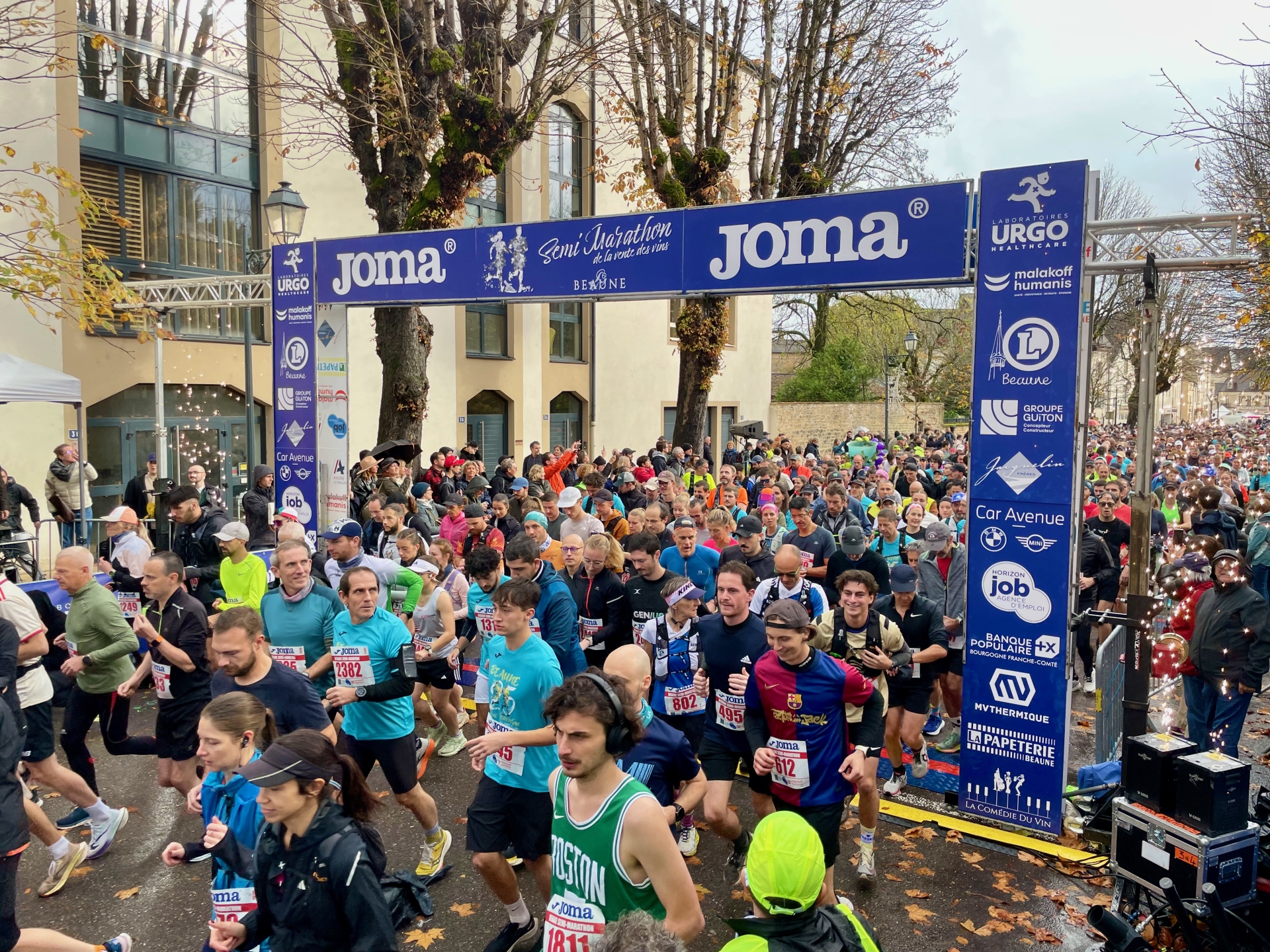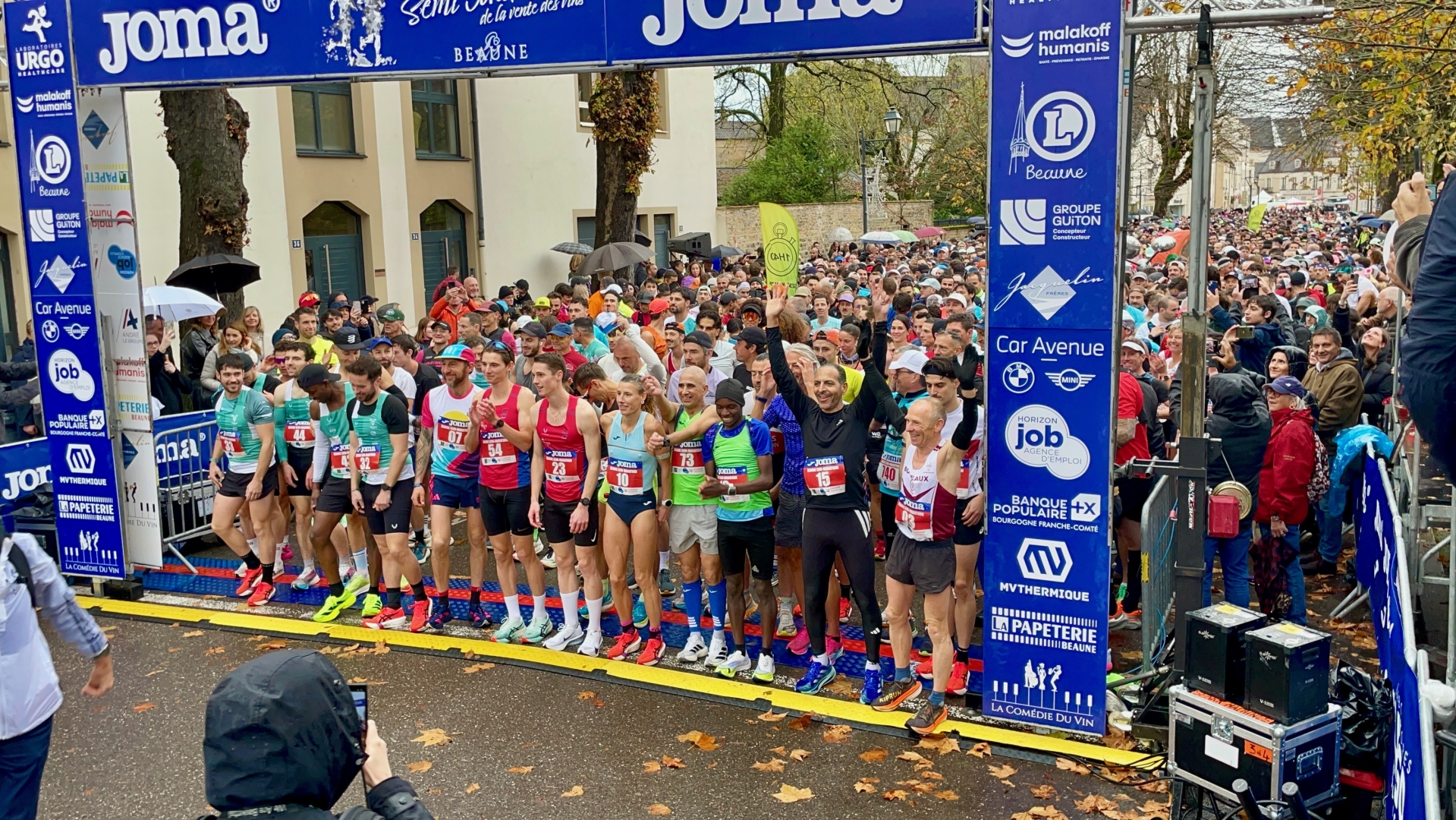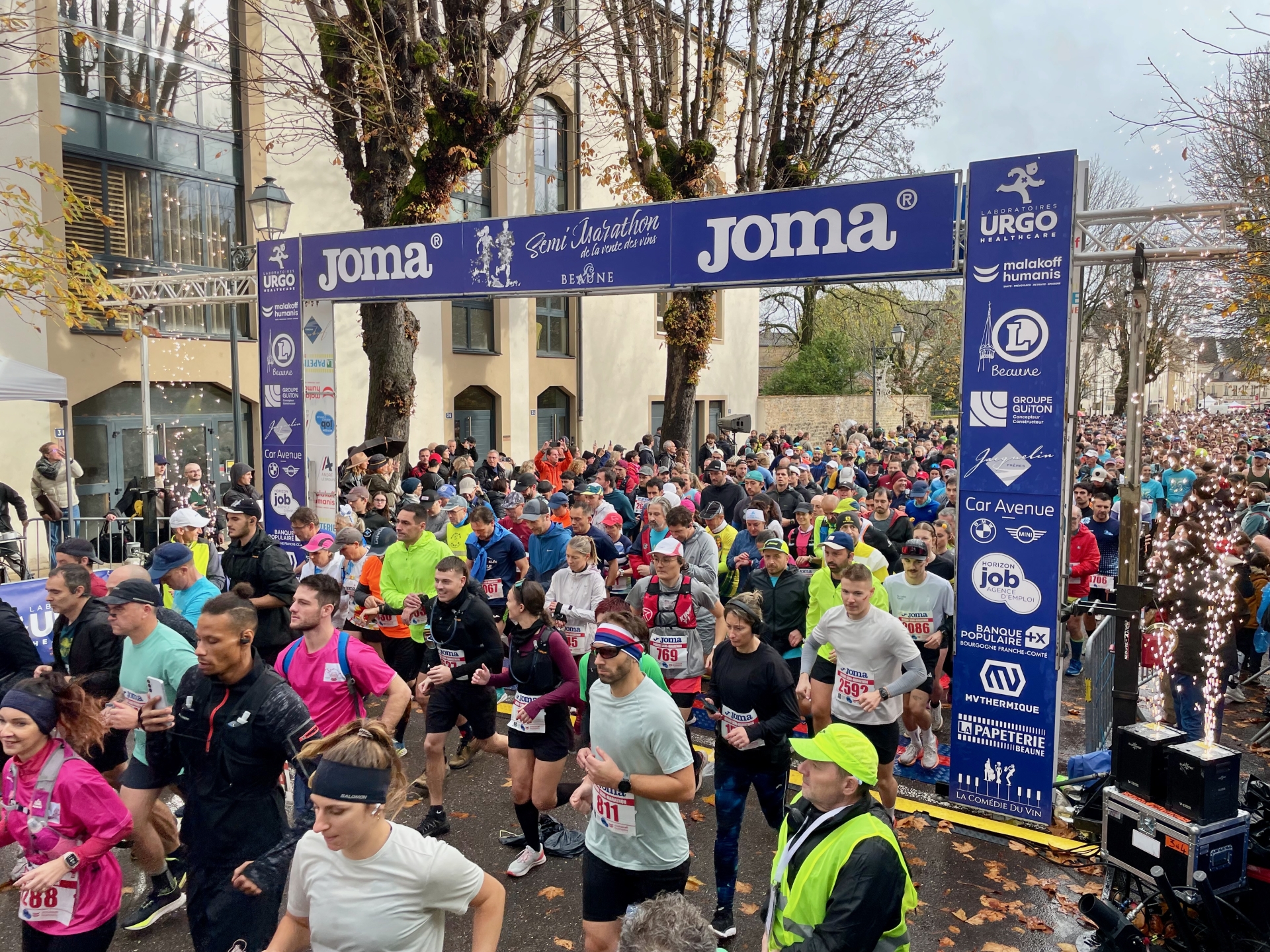 La pluie a cessé à temps : à 14 h, plus de 3 000 coureurs se sont élancés pour le 38ᵉ Semi-Marathon de la Vente des Vins de Beaune, dans une ambiance survoltée entre holà, ban bourguignon et spectacle pyrotechnique.