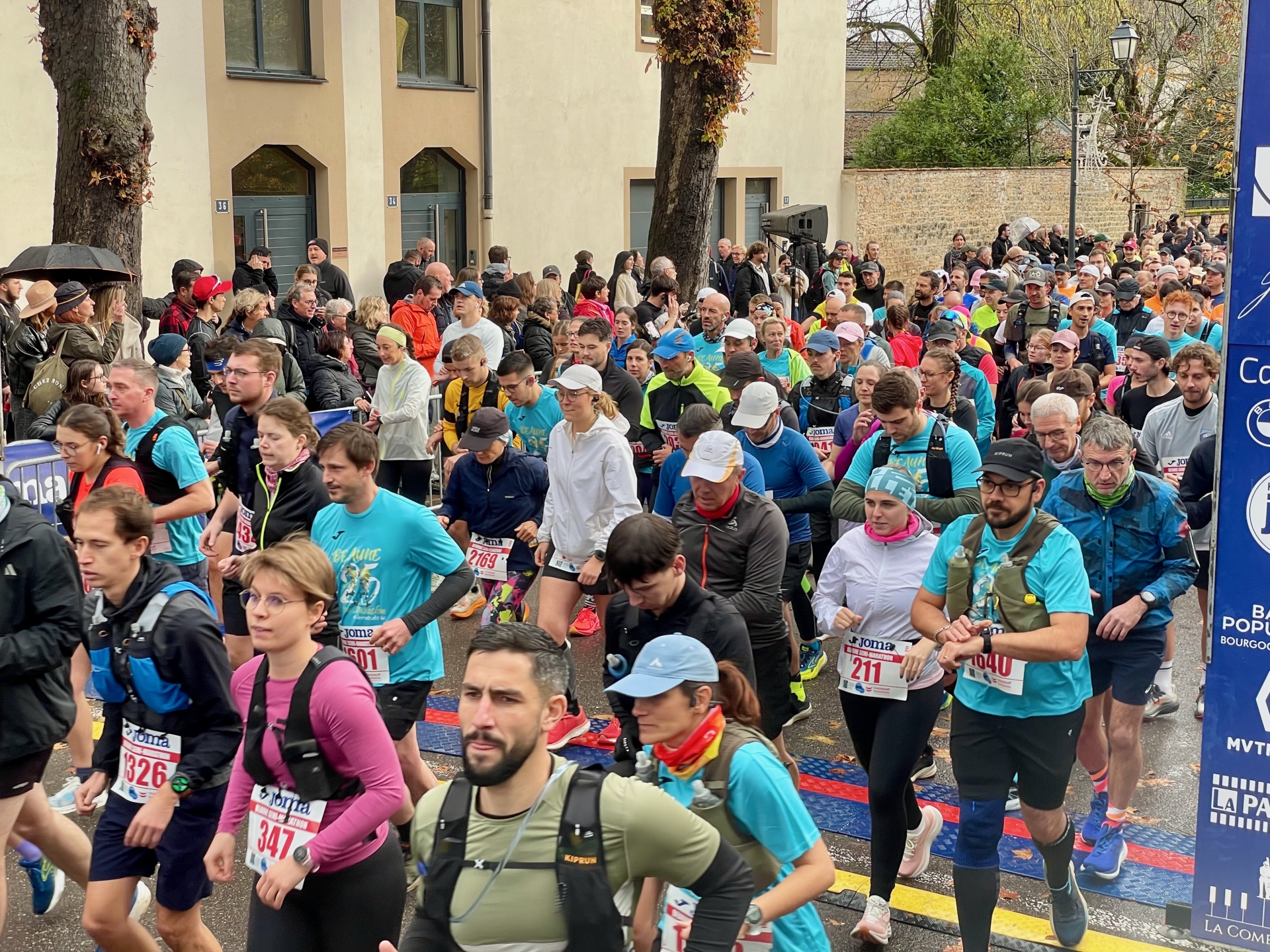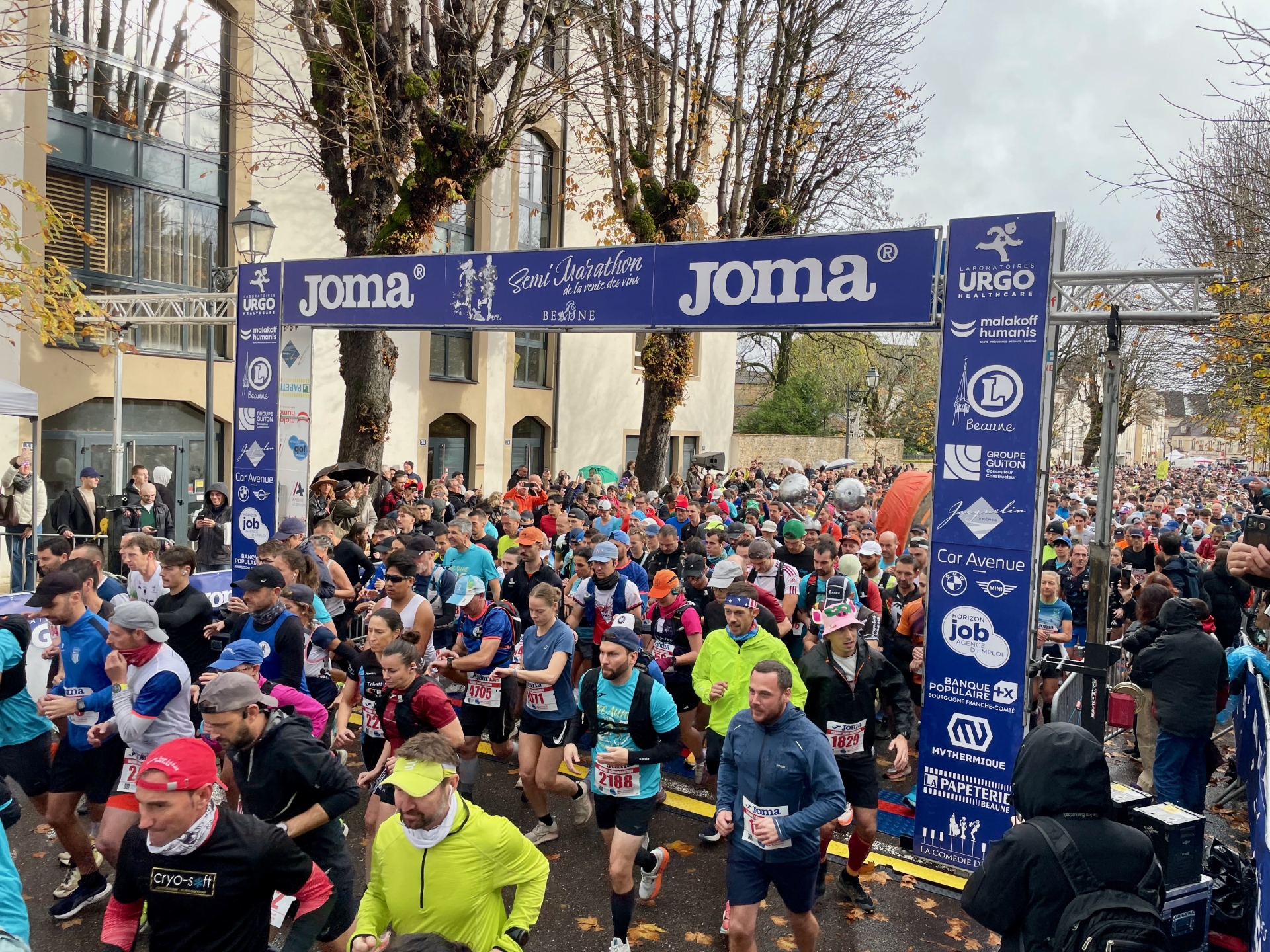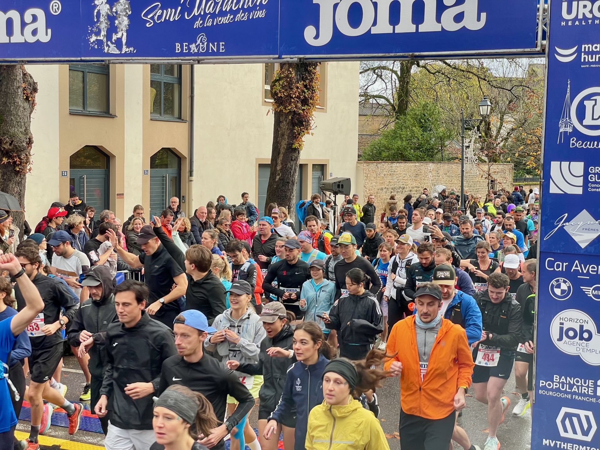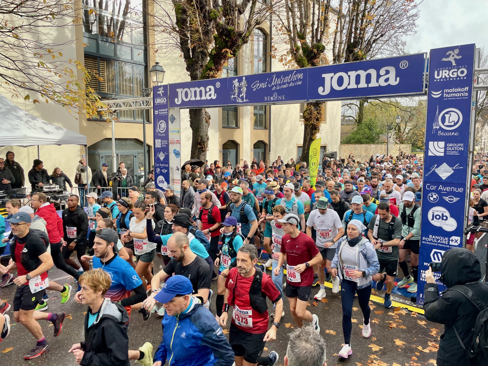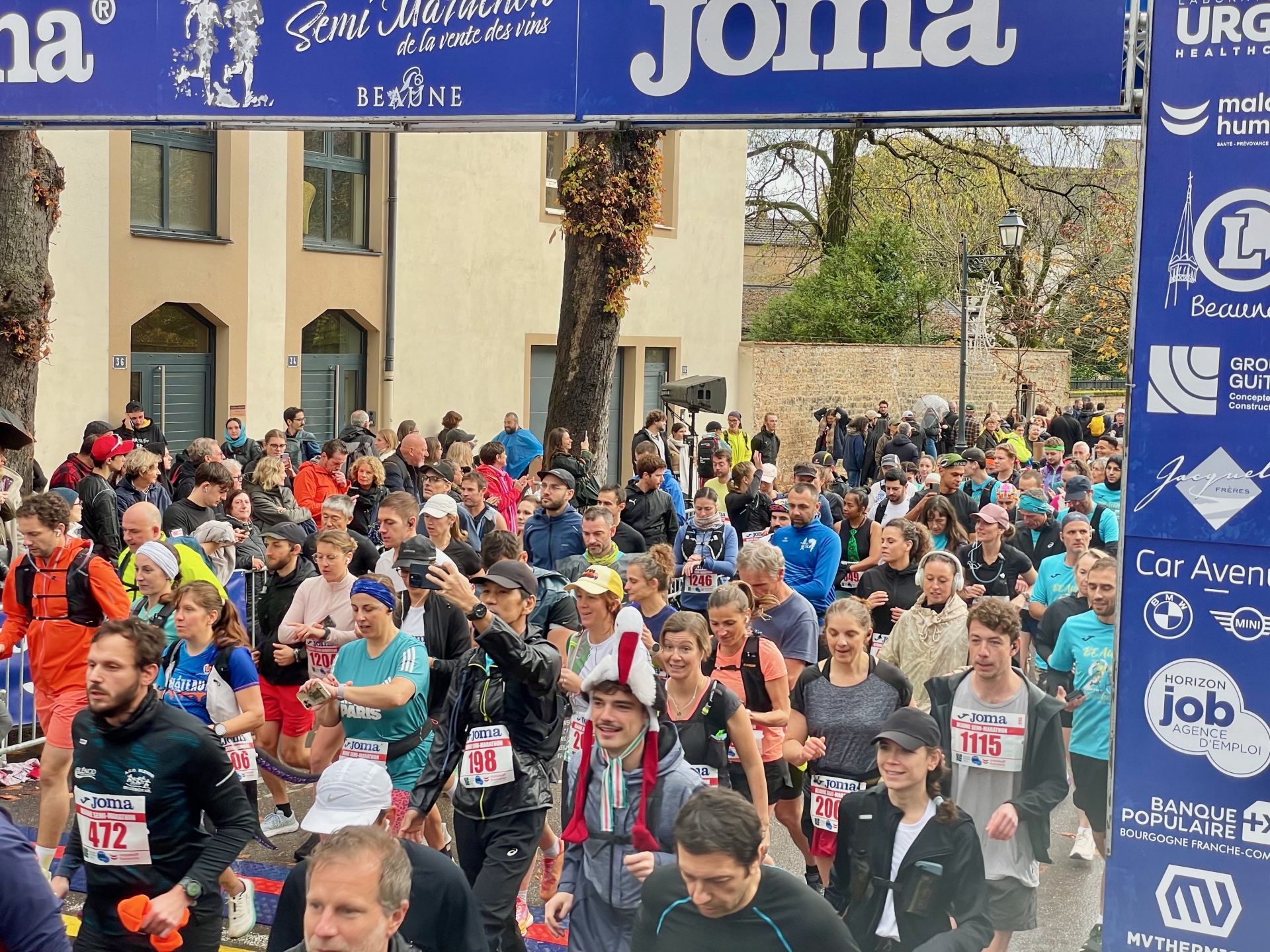 La pluie a cessé à temps : à 14 h, plus de 3 000 coureurs se sont élancés pour le 38ᵉ Semi-Marathon de la Vente des Vins de Beaune, dans une ambiance survoltée entre holà, ban bourguignon et spectacle pyrotechnique.