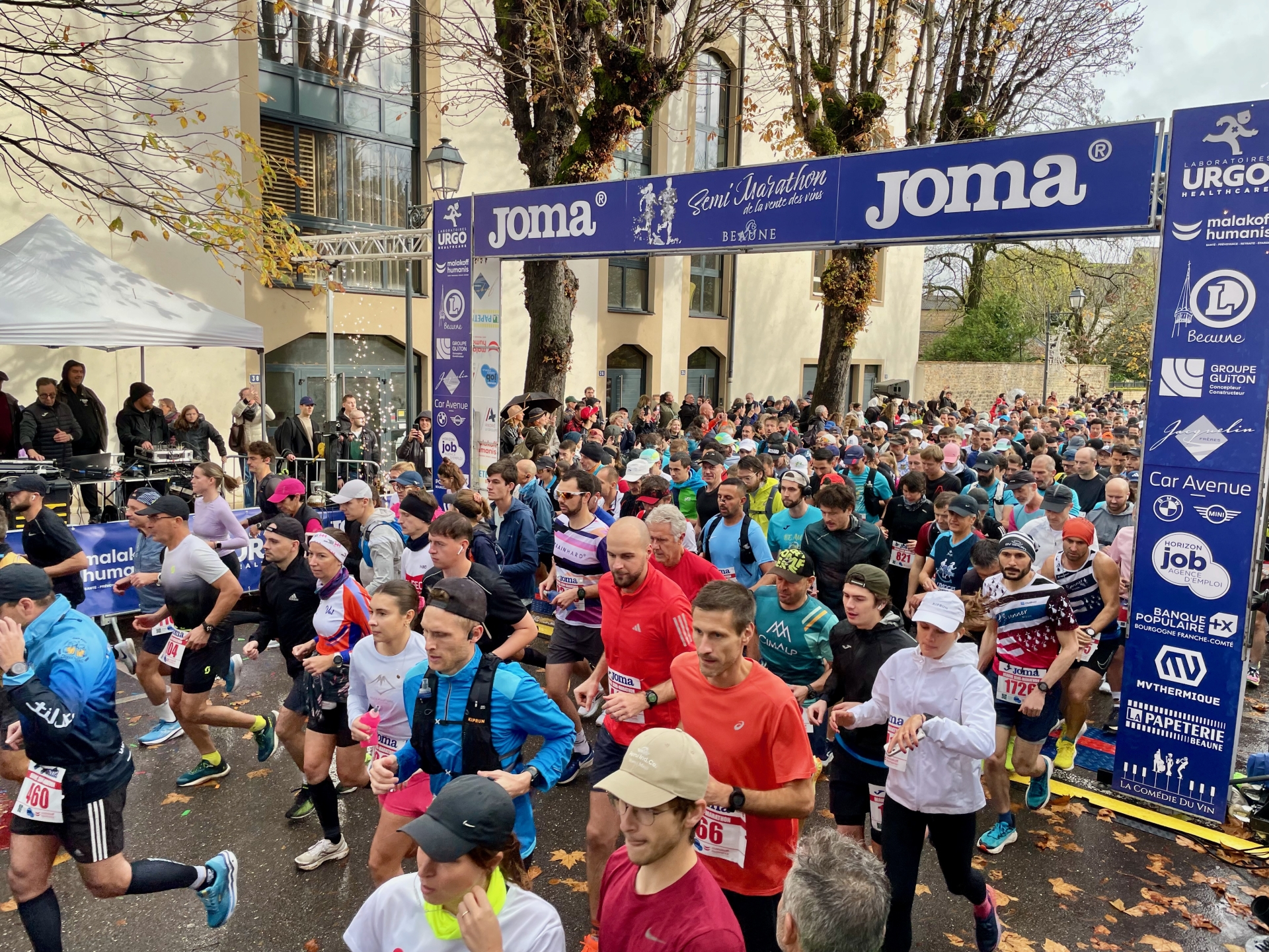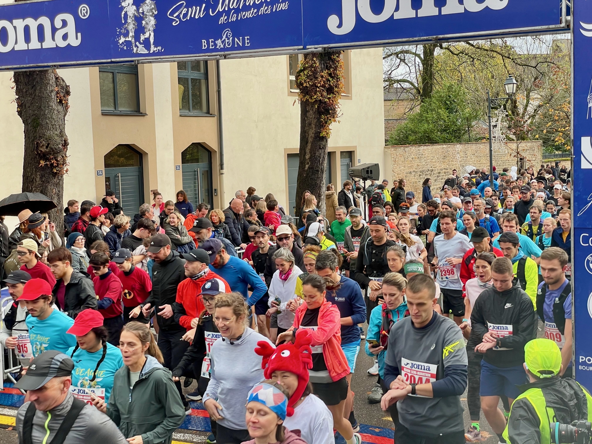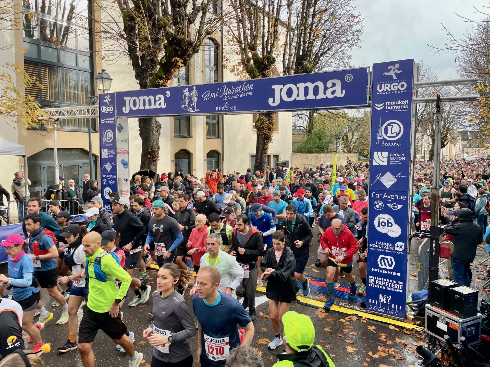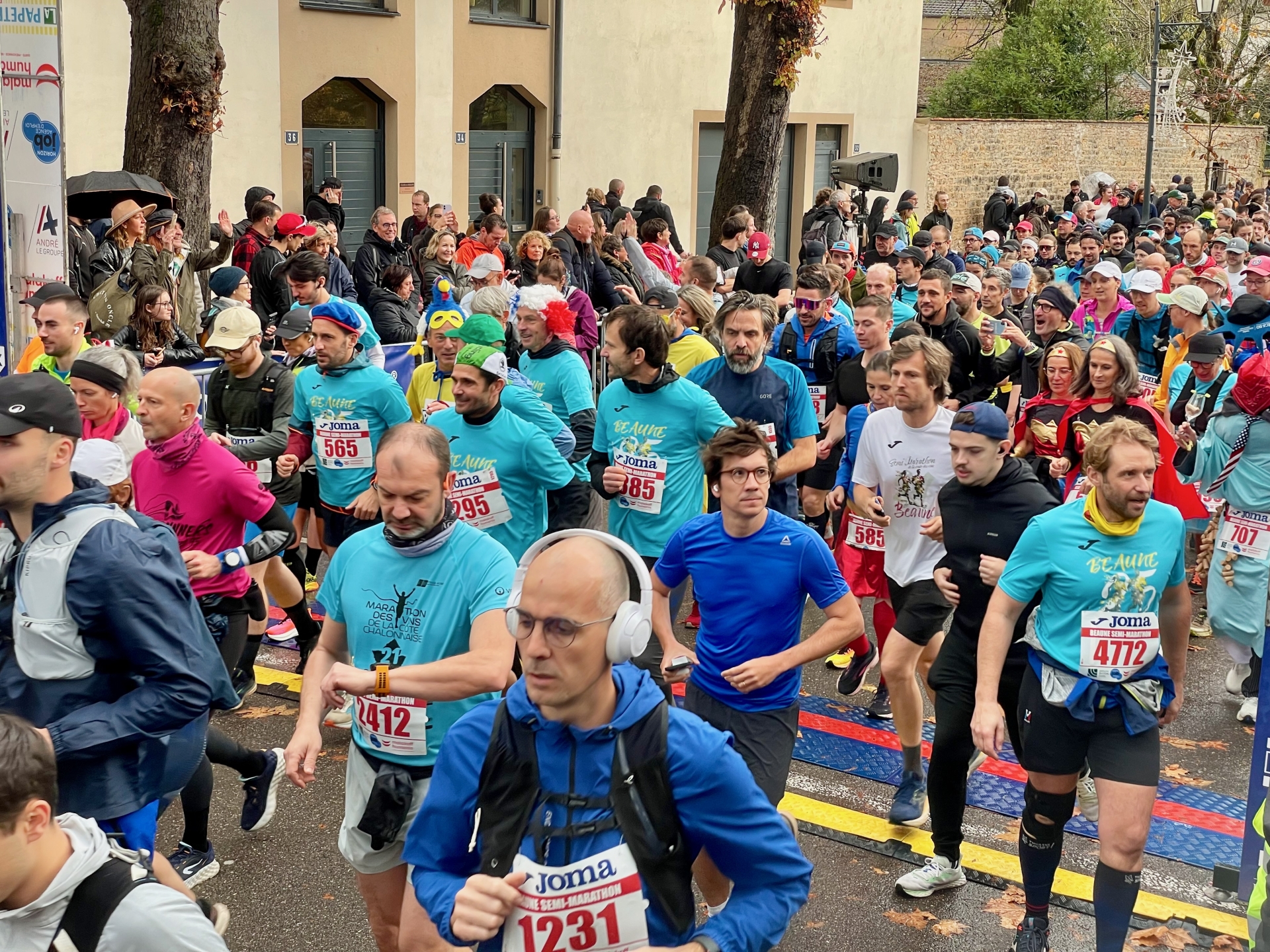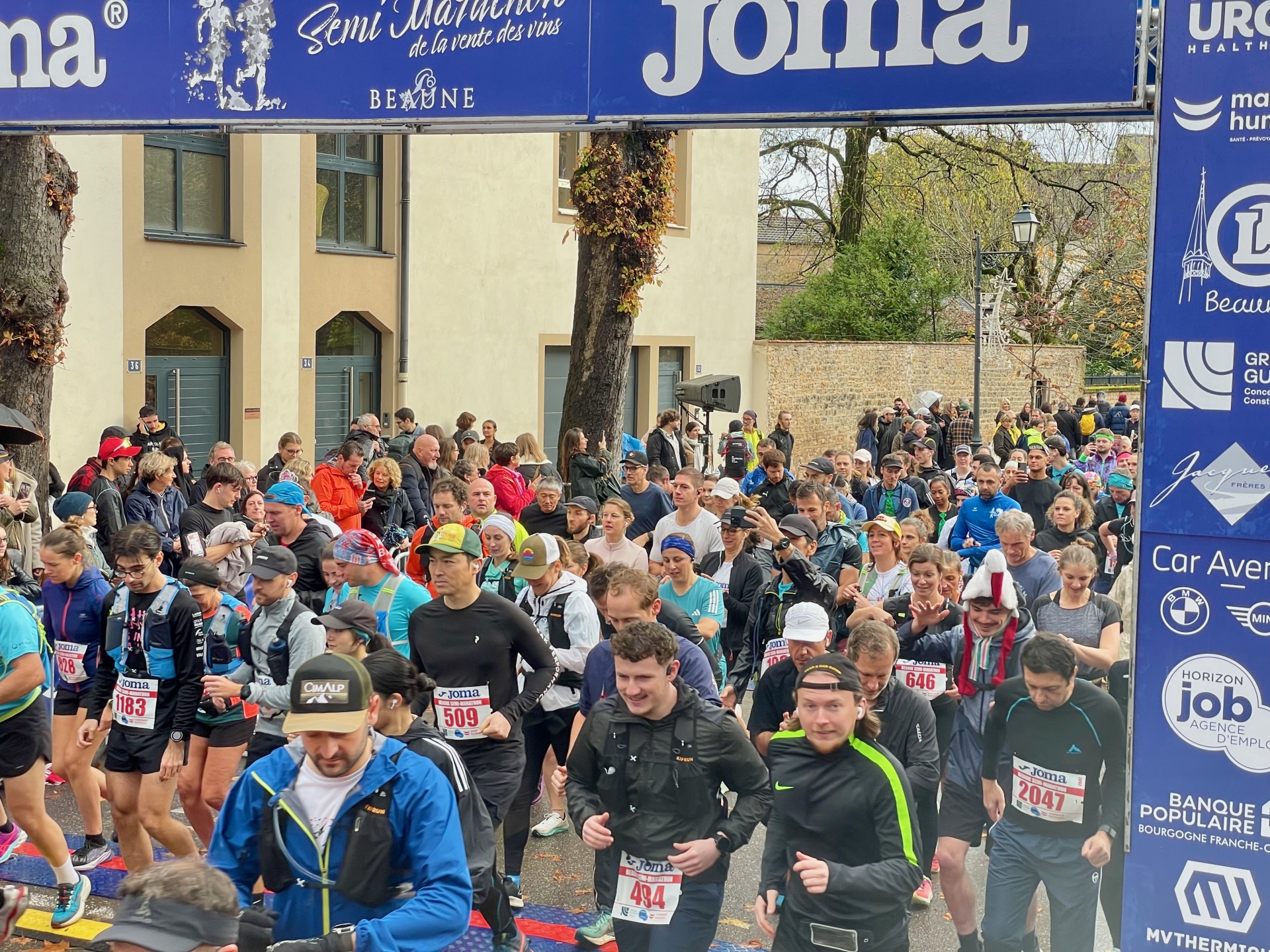 La pluie a cessé à temps : à 14 h, plus de 3 000 coureurs se sont élancés pour le 38ᵉ Semi-Marathon de la Vente des Vins de Beaune, dans une ambiance survoltée entre holà, ban bourguignon et spectacle pyrotechnique.