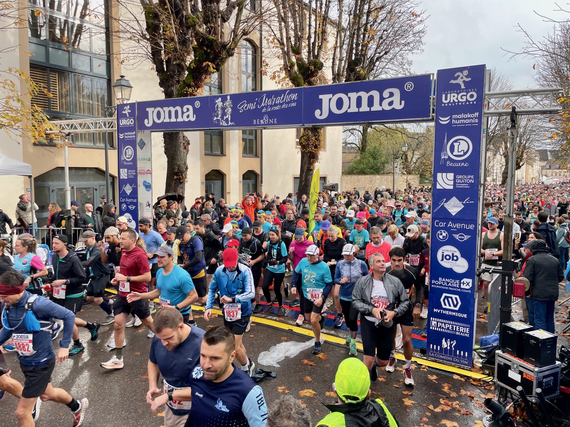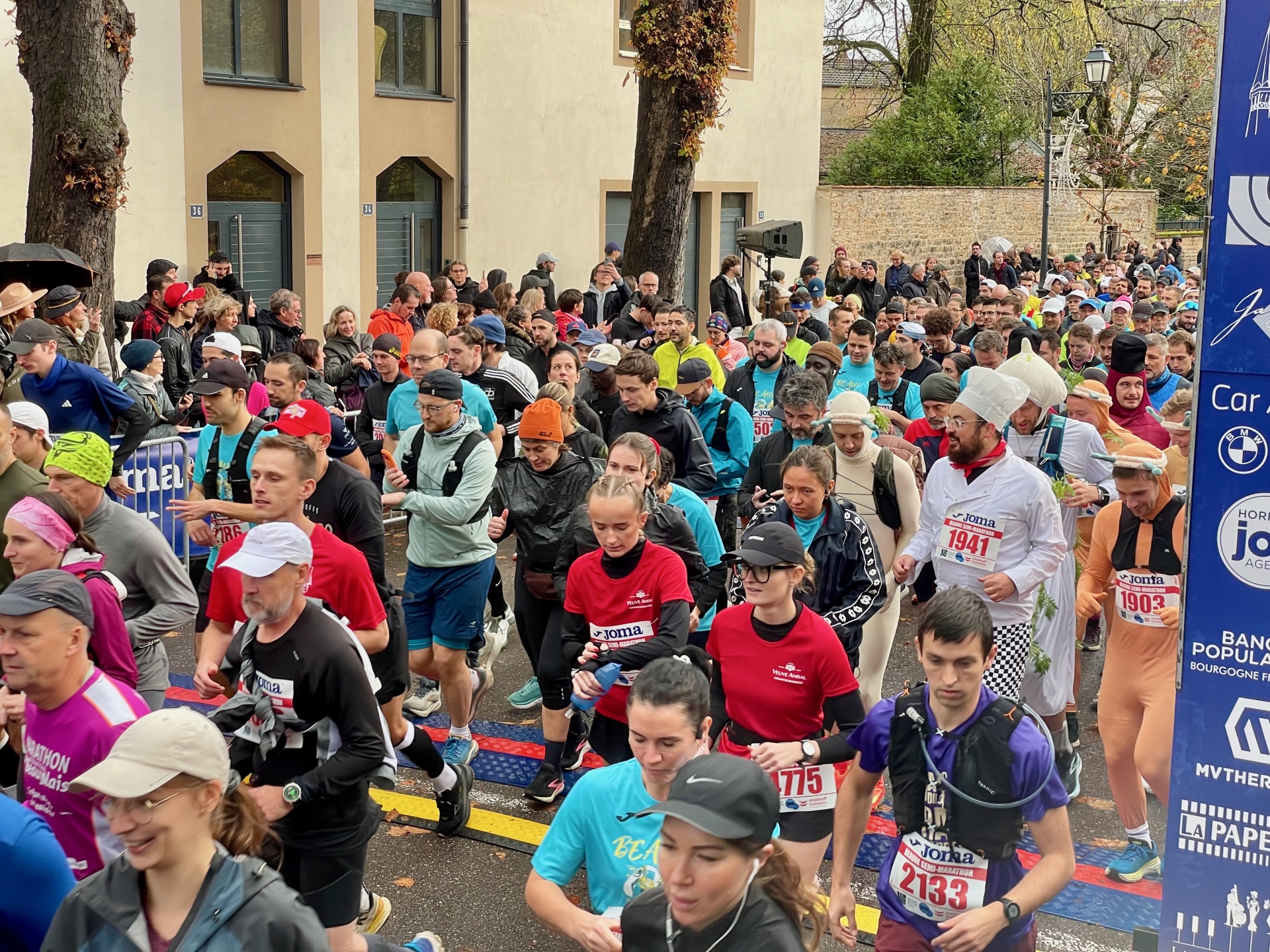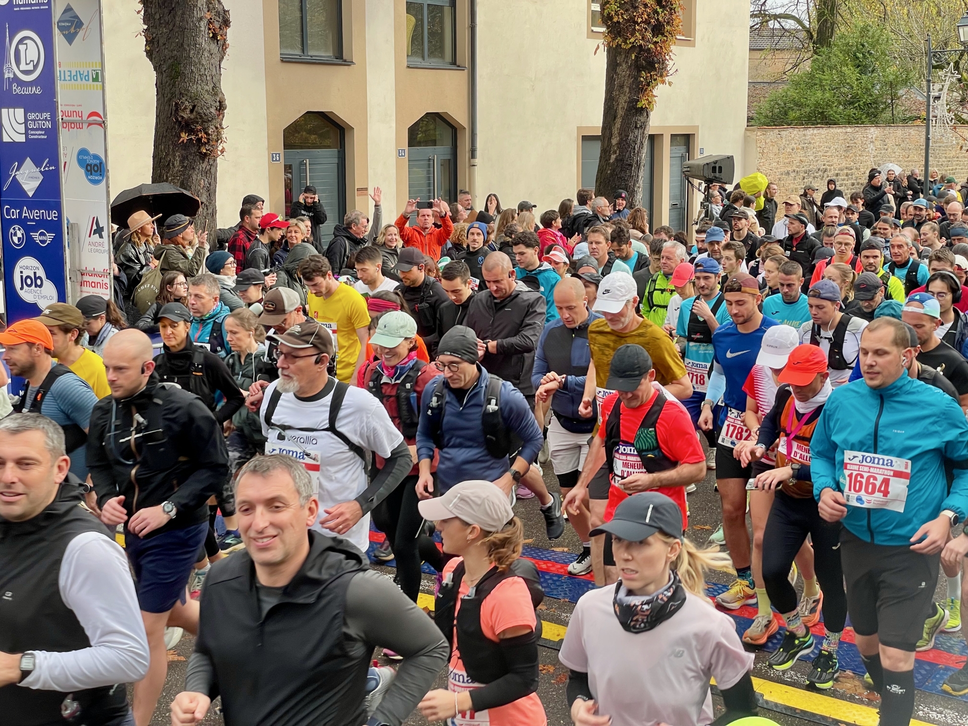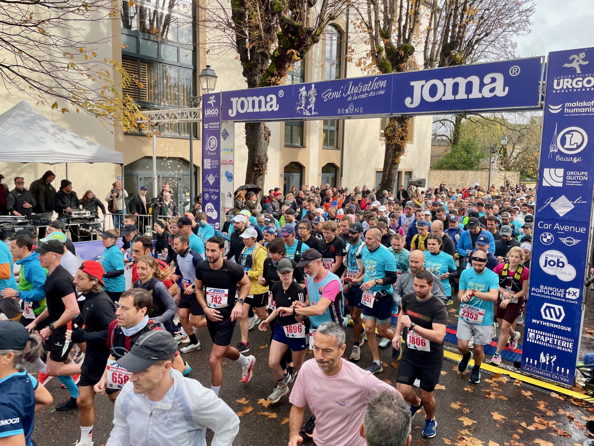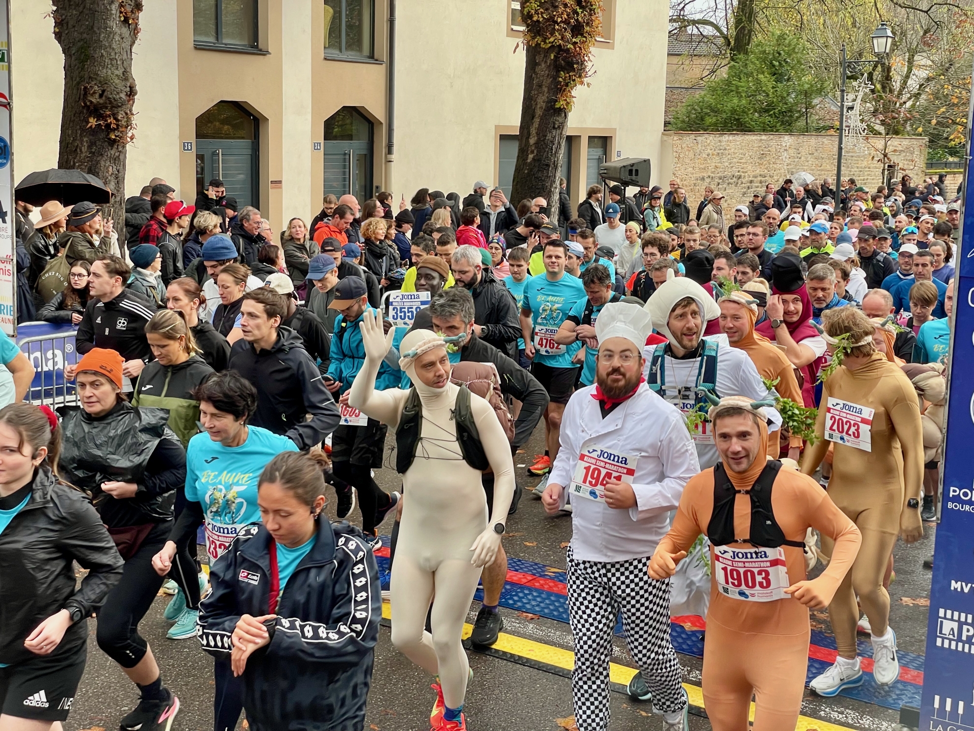 La pluie a cessé à temps : à 14 h, plus de 3 000 coureurs se sont élancés pour le 38ᵉ Semi-Marathon de la Vente des Vins de Beaune, dans une ambiance survoltée entre holà, ban bourguignon et spectacle pyrotechnique.