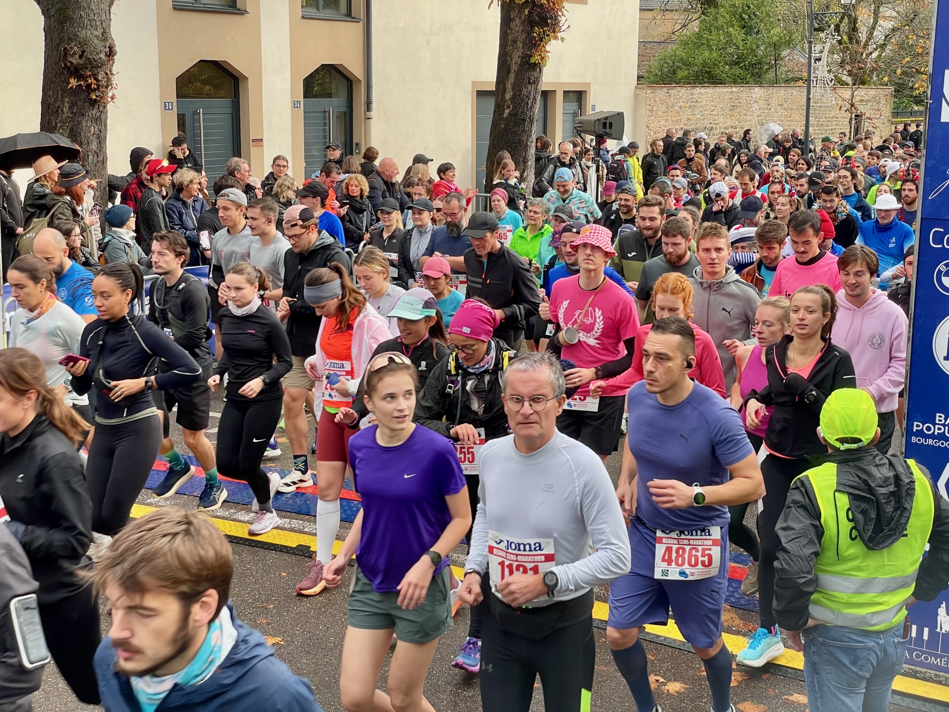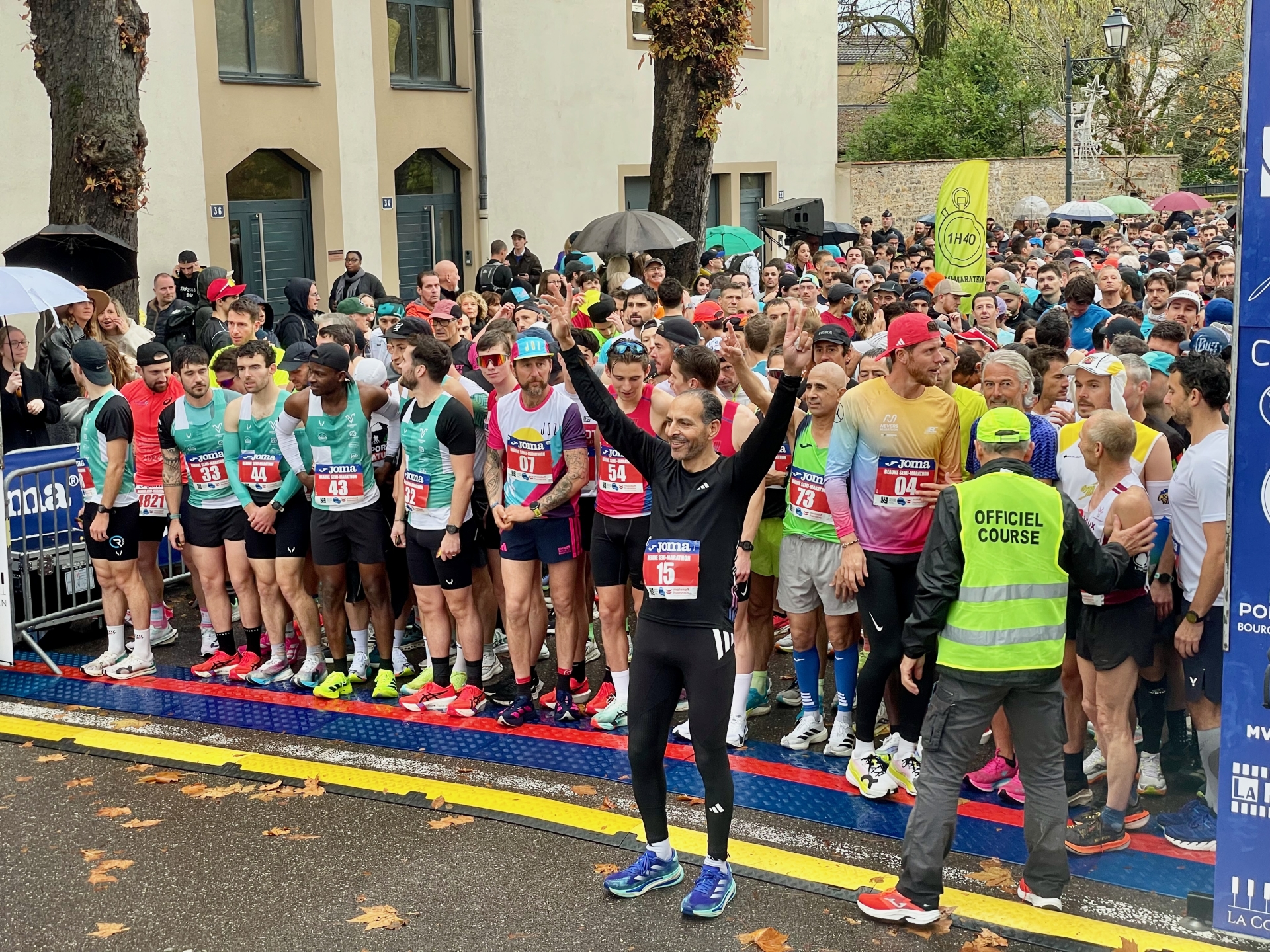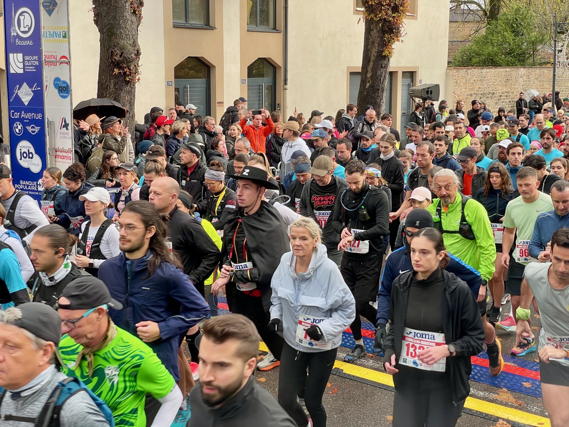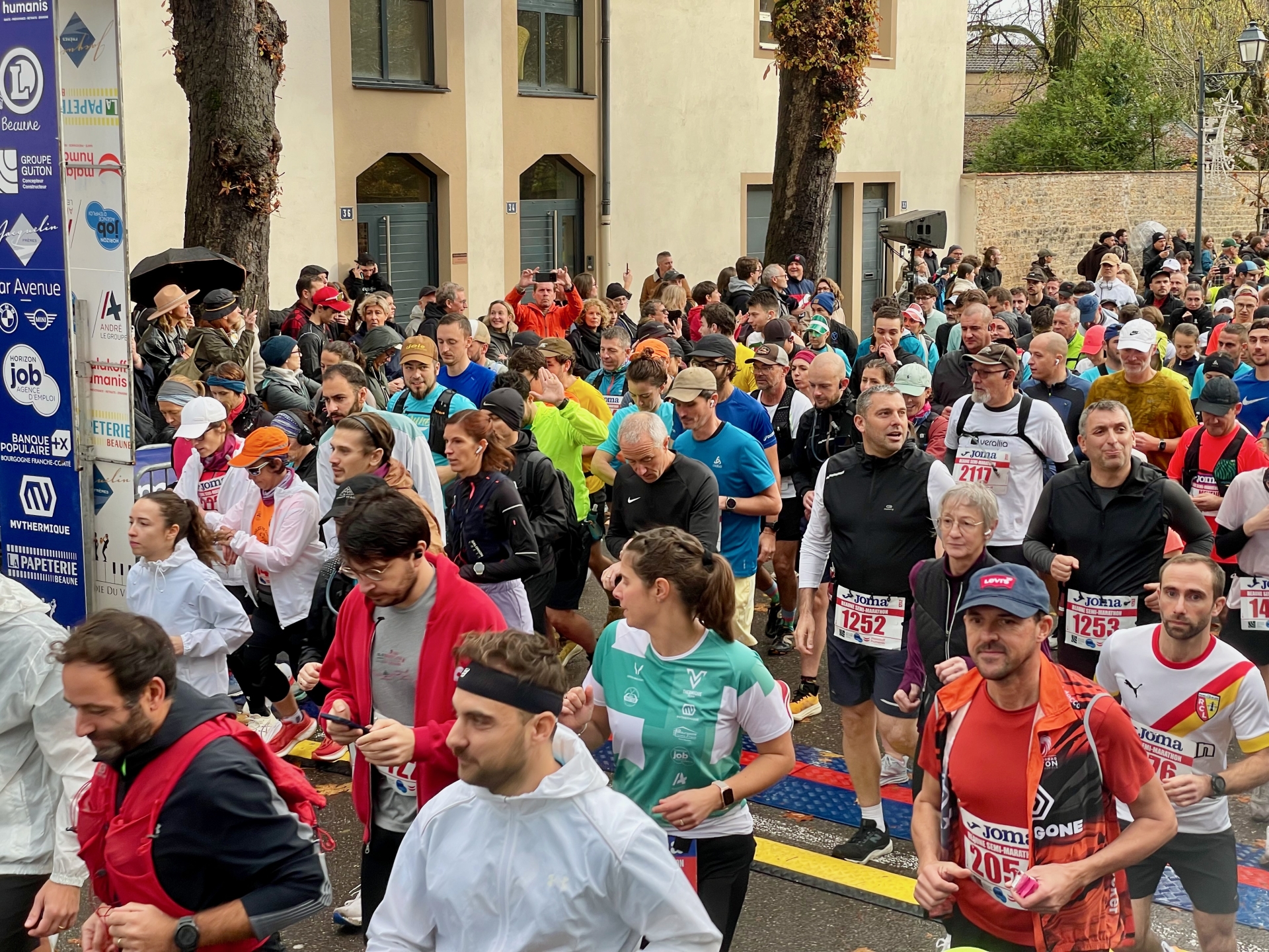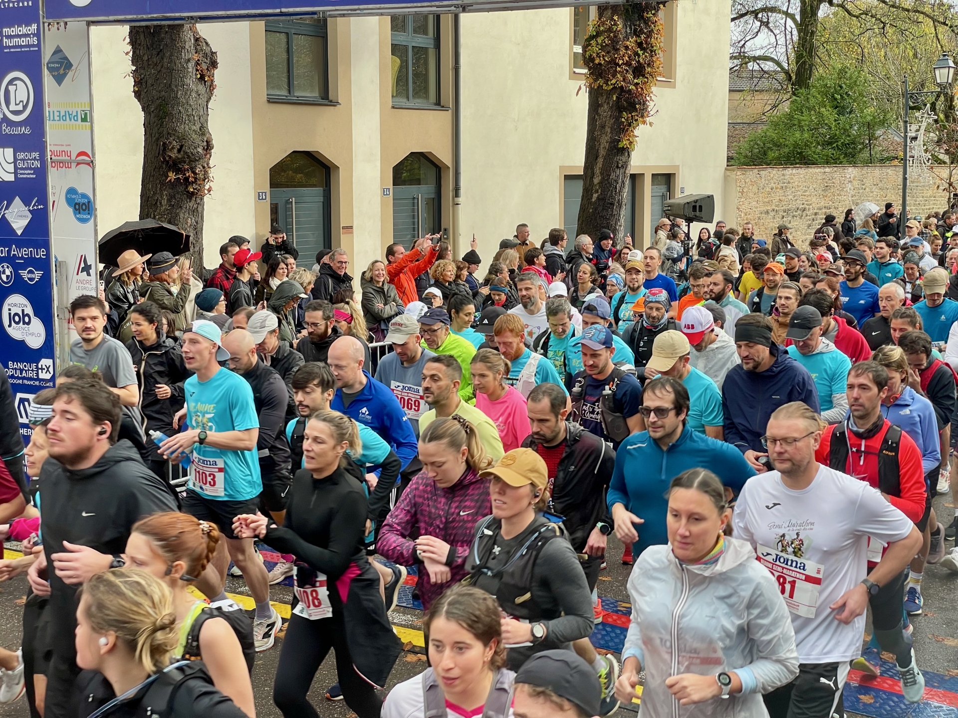 La pluie a finalement déserté Beaune quelques minutes avant le départ. À 14 h précises, la 38ᵉ édition du Semi-Marathon de la Vente des Vins de Beaune s’est élancée dans une atmosphère électrique, portée par une holà géante, un ban bourguignon et un show musical et pyrotechnique. Le top départ a été donné par le maire Alain Suguenot, entouré de nombreux invités dont plusieurs champions et médaillés olympiques.