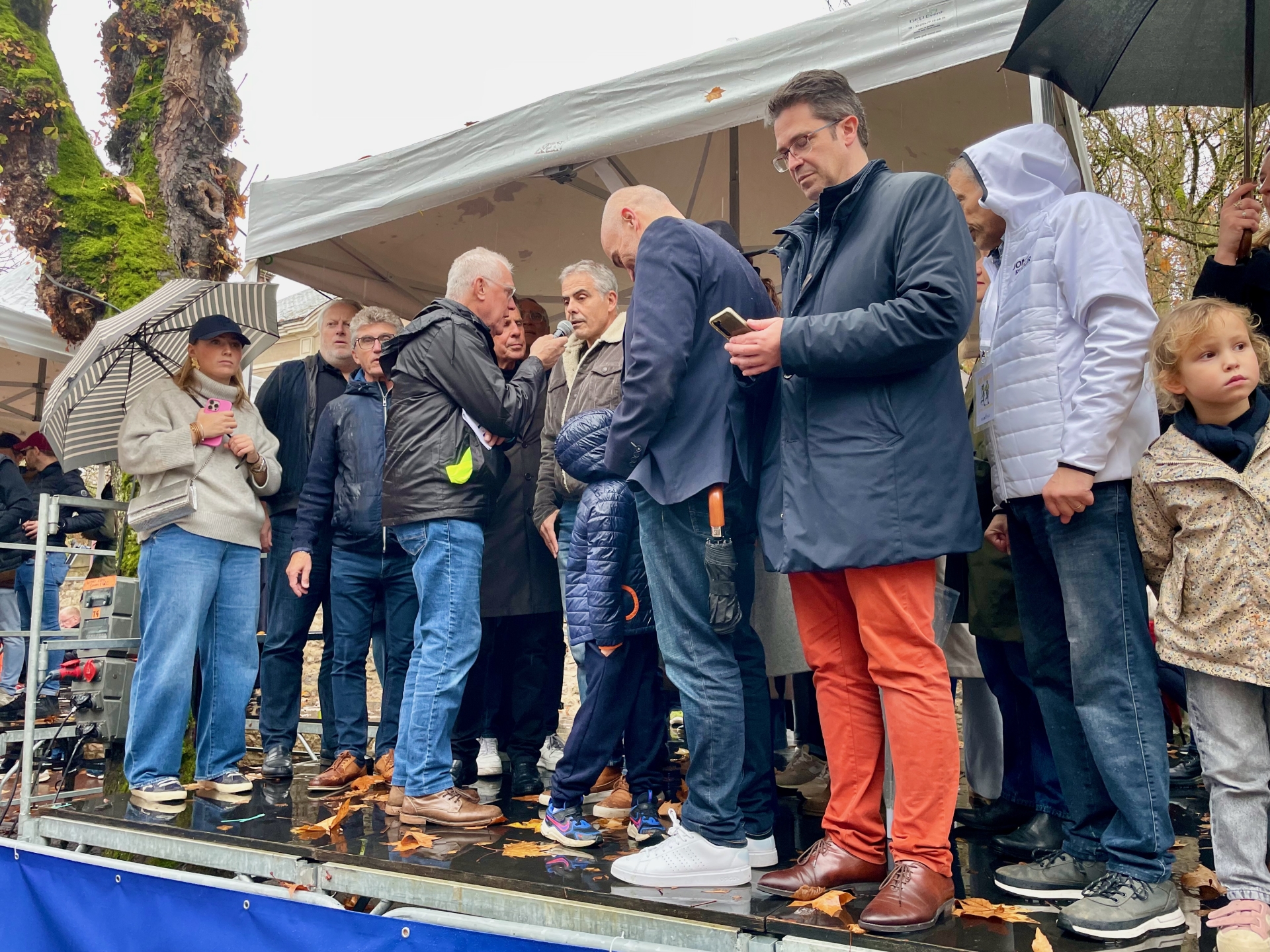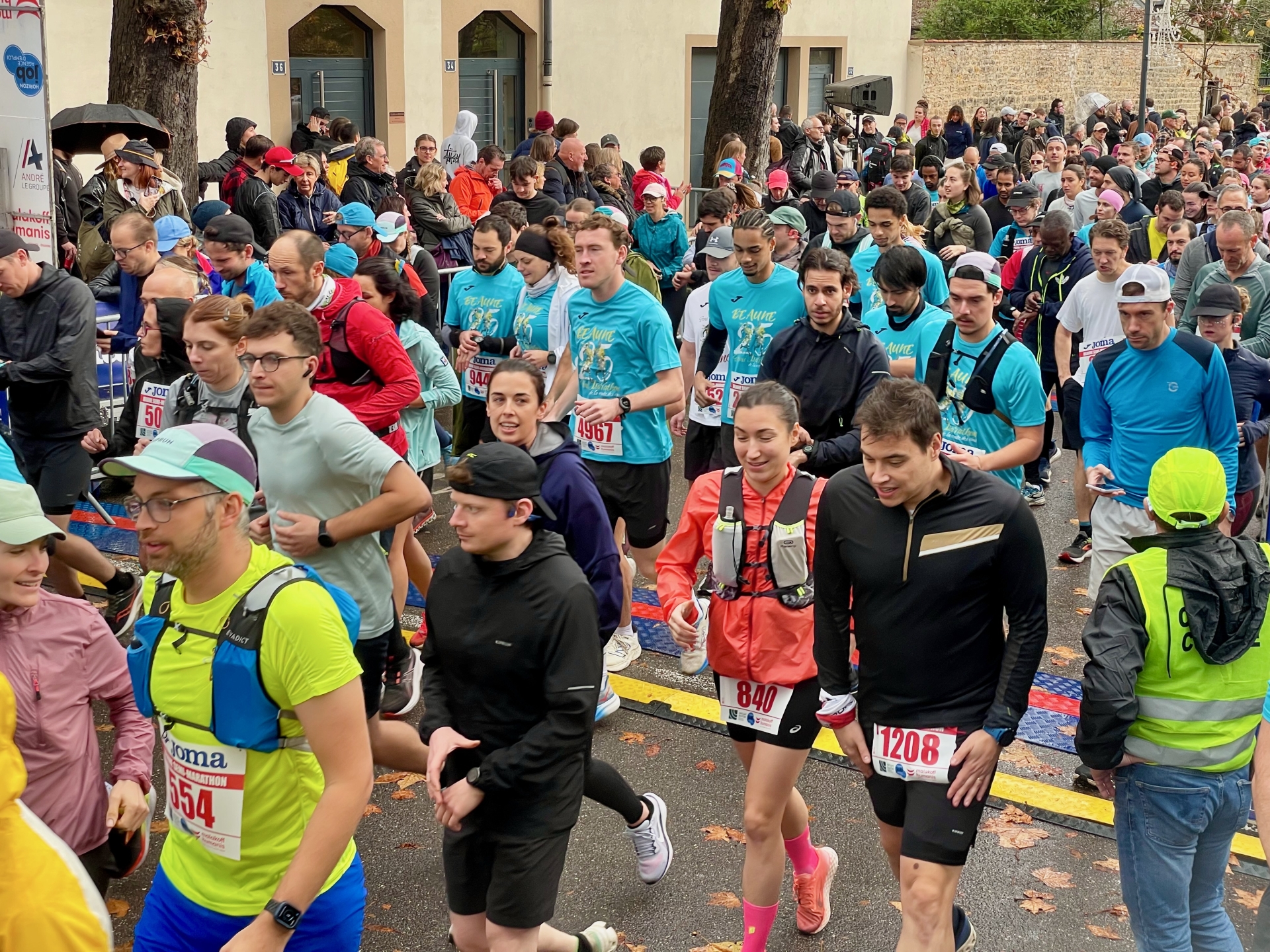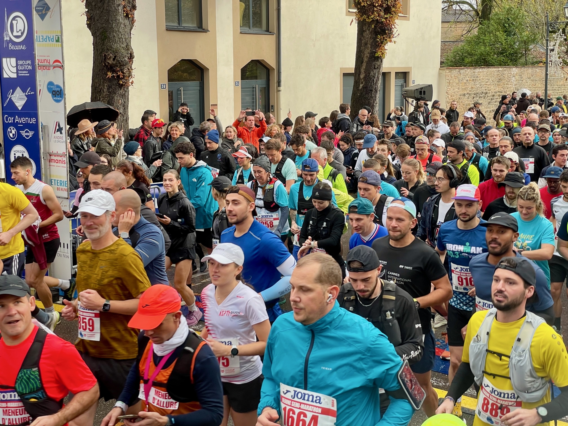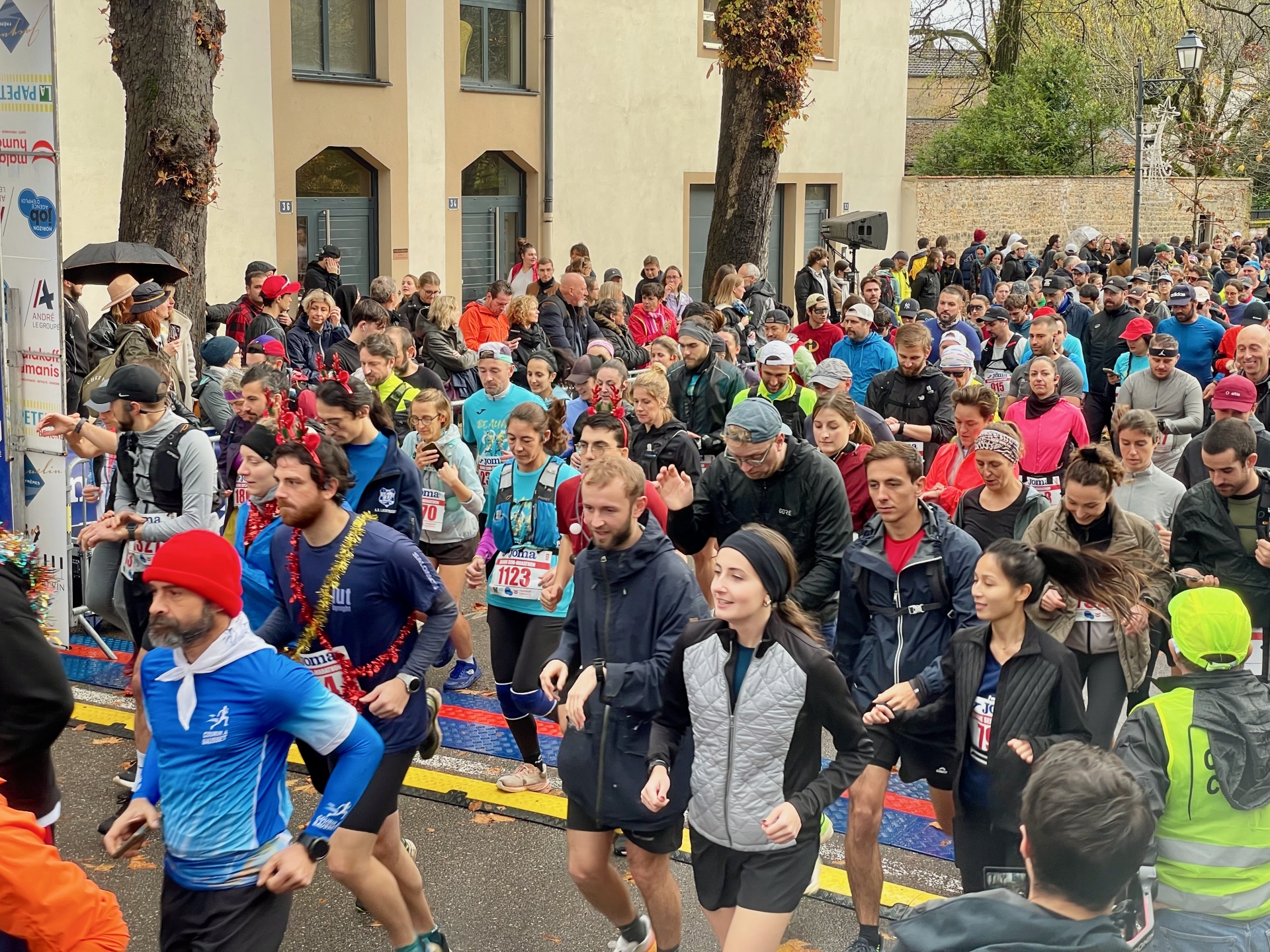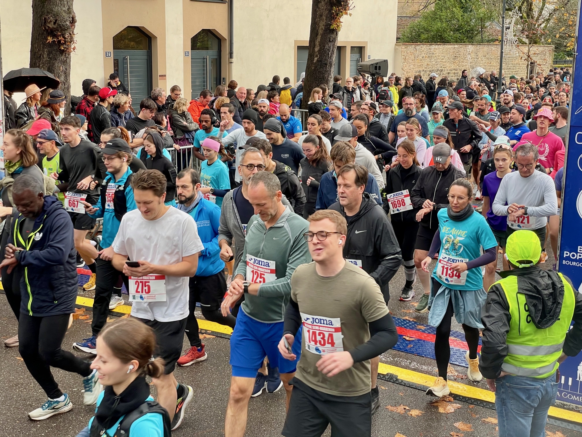 La pluie a finalement déserté Beaune quelques minutes avant le départ. À 14 h précises, la 38ᵉ édition du Semi-Marathon de la Vente des Vins de Beaune s’est élancée dans une atmosphère électrique, portée par une holà géante, un ban bourguignon et un show musical et pyrotechnique. Le top départ a été donné par le maire Alain Suguenot, entouré de nombreux invités dont plusieurs champions et médaillés olympiques.