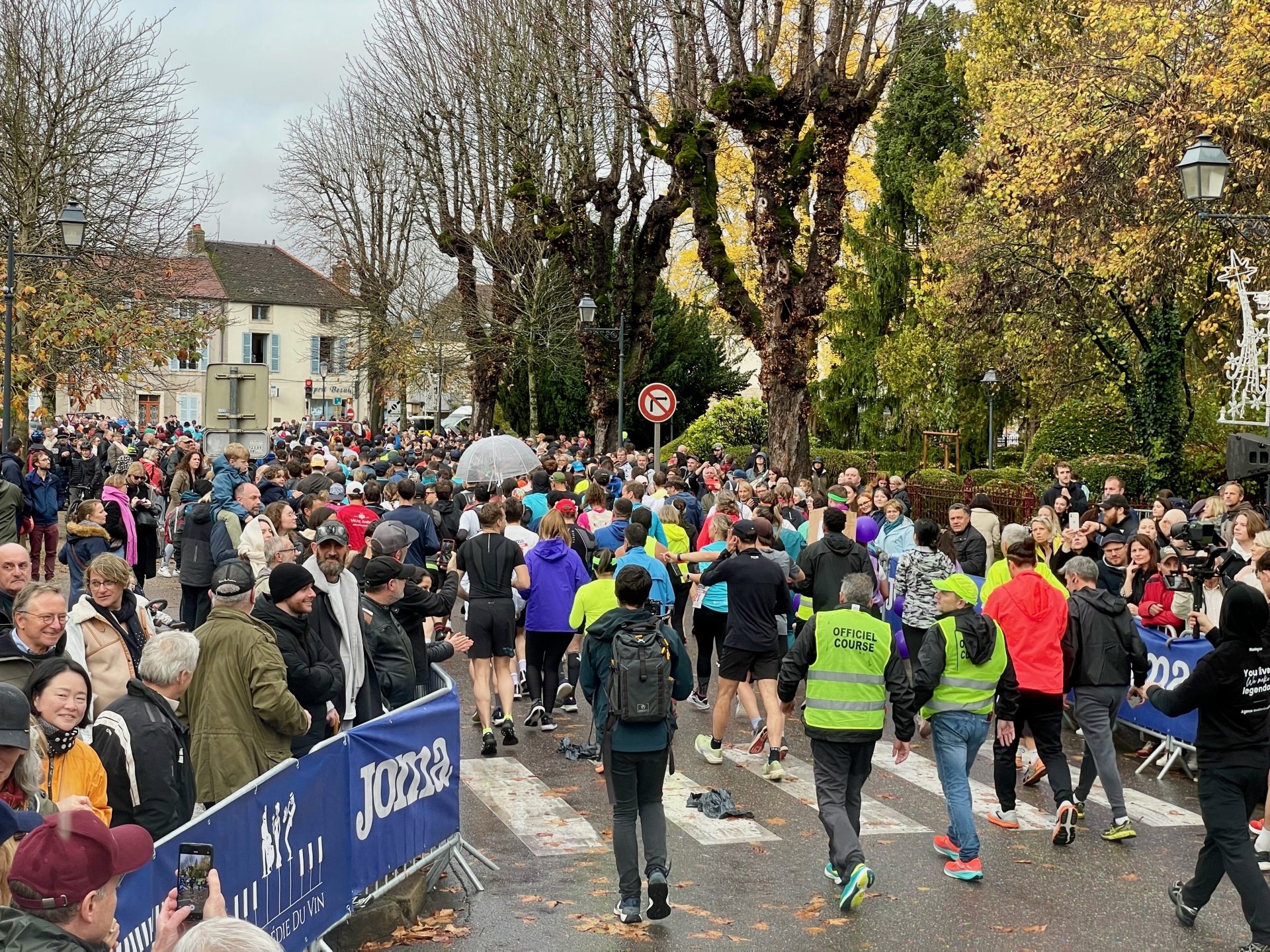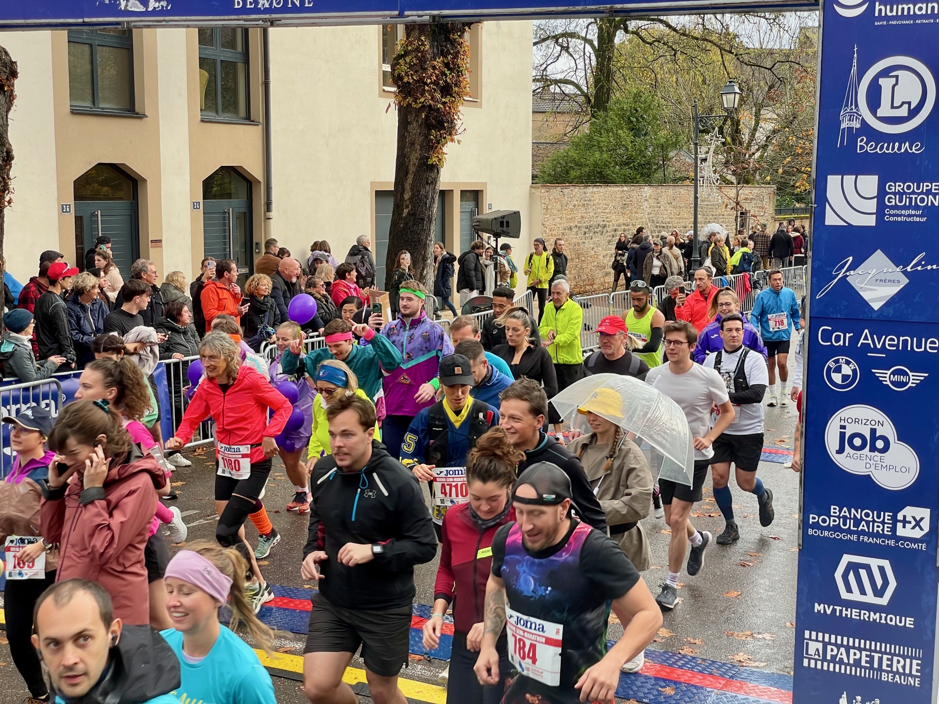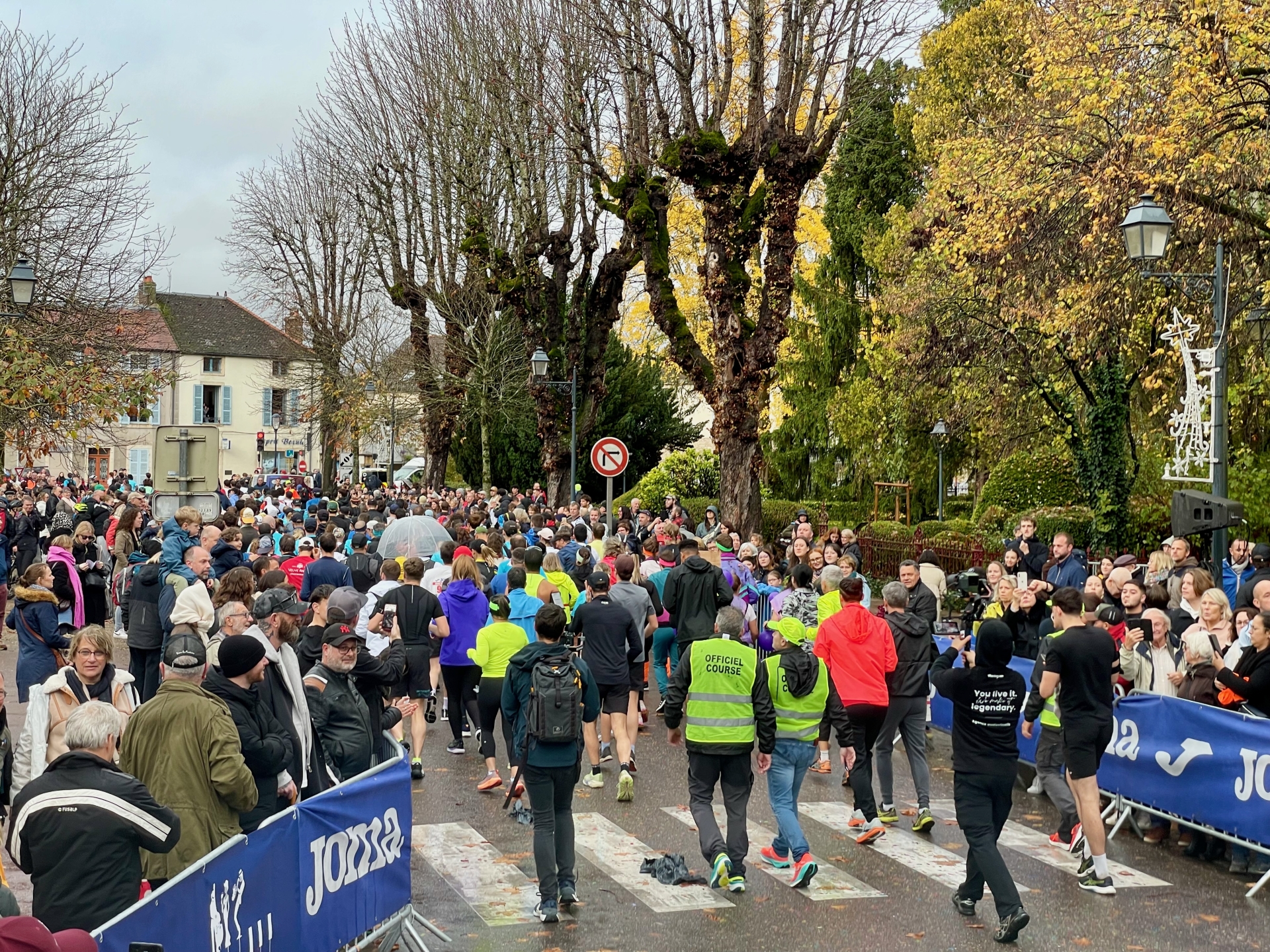 Après quelques kilomètres dans les rues du centre, les coureurs ont rejoint les vignobles de la Côte de Beaune, traversant successivement Pommard, Meursault – où une étape œnologique est traditionnellement proposée au Château à 14 h 30 – puis Volnay, avant de revenir vers l’arrivée au Forum des Sports, au pied de la Montagne de Beaune.