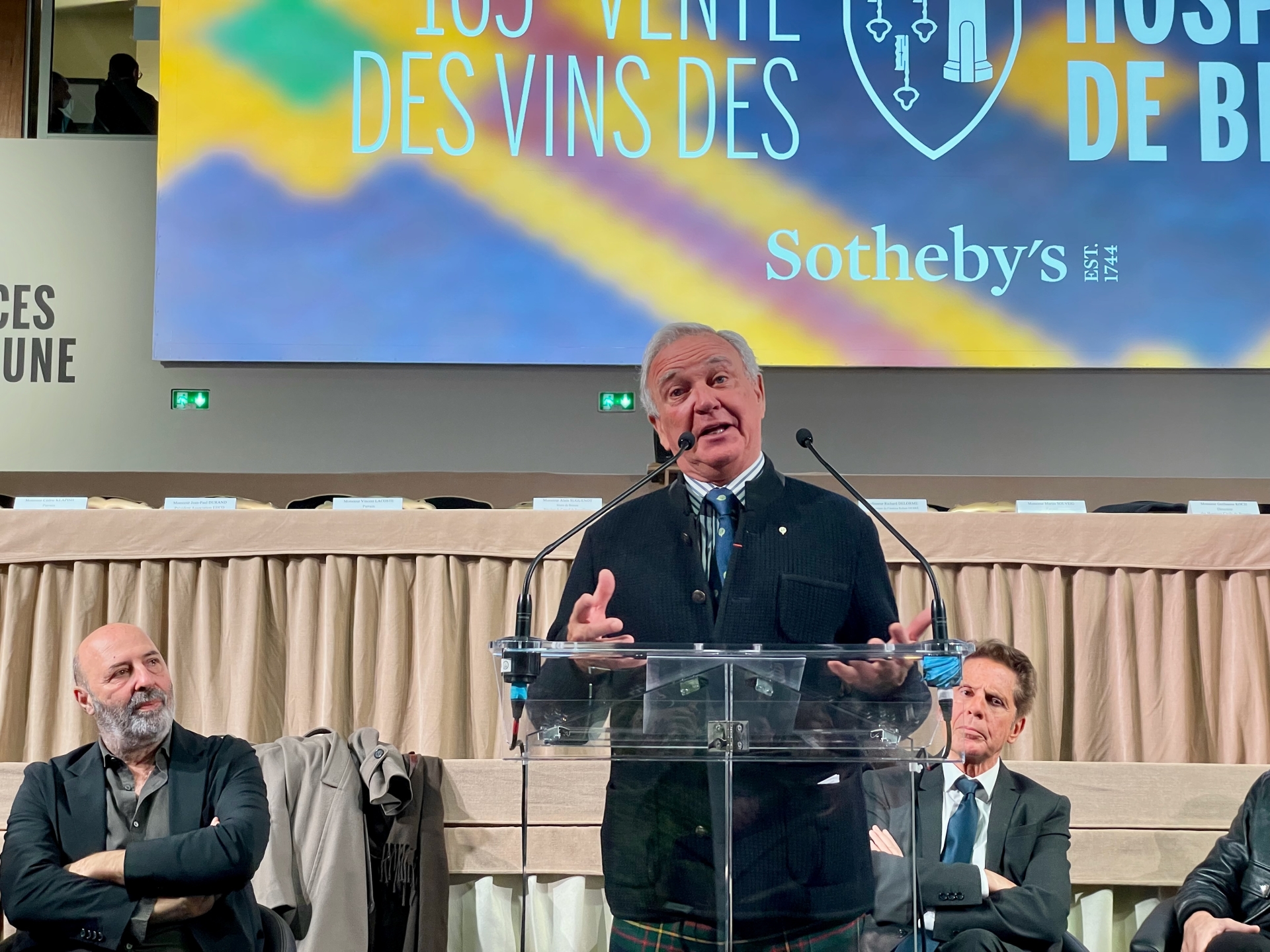 Laurent Delaunay, co-président également, a ensuite livré un panorama économique sans ambages. « Cette vente est un rendez-vous de joie qui sert une belle cause, et le monde du vin a les yeux rivés sur Beaune aujourd’hui. Mais les ressentis sur les marchés sont au ralenti. Les marchés se dépriment, se défragmentent, avec une diminution de la consommation. La situation économique nationale et internationale est compliquée : inflation, taxes, guerre commerciale… tout cela est rude. »