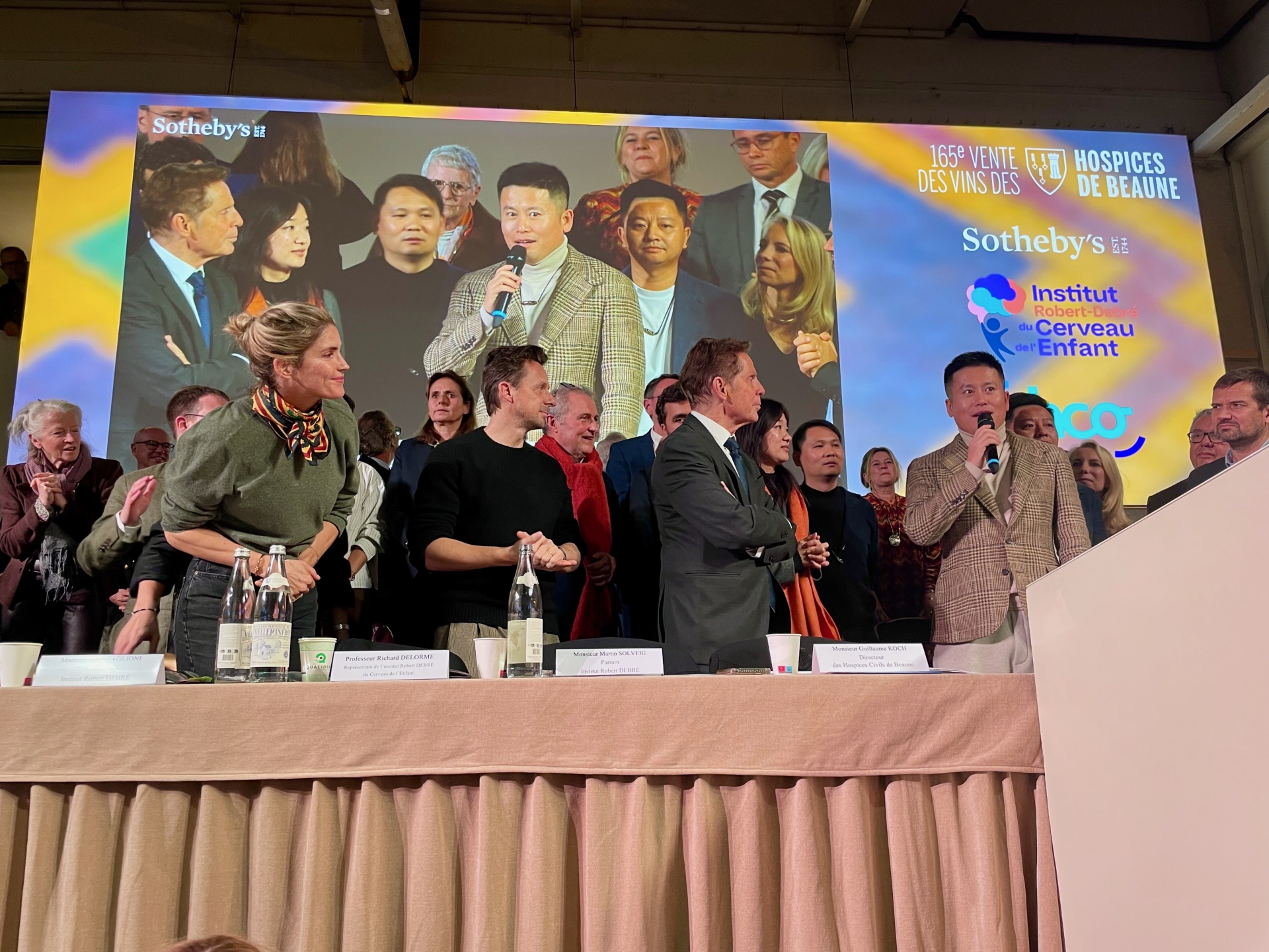 La Pièce de Charité de la 165ᵉ Vente des Vins a atteint la somme de 400 000 € (contre 360 000 € l'an passé). Elle a été remportée par Li Zhongliang, entrepreneur pékinois spécialisé dans le teck et l’IA, au terme d’une bataille d’enchères animée par Martin Solveig, Alice Taglioni, Cédric Klapisch et Vincent Lacoste.