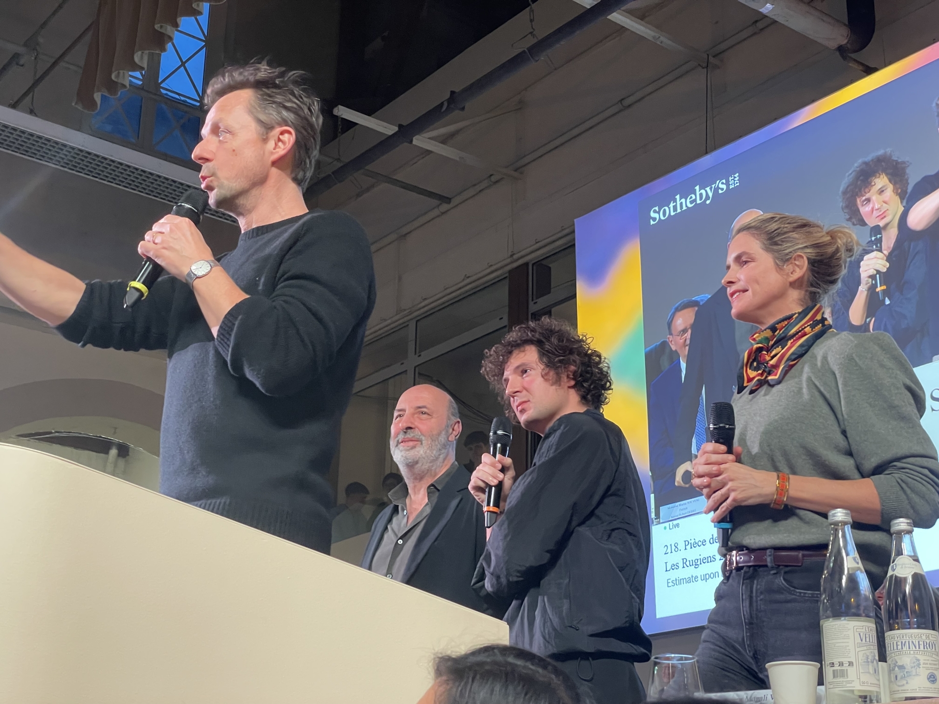 La pièce maîtresse de la vente était une pièce unique de Pommard Premier Cru Les Rugiens, sélectionnée comme Pièce des Présidents cette année et généreusement offerte par les Hospices Civils de Beaune afin de récolter des fonds pour deux associations caritatives de leur choix. Cédric Klapisch, Vincent Lacoste, Alice Taglioni et Martin Solveig quatre figures emblématiques de la musique et du cinéma français, représentant respectivement l’association EHCO et l’Institut Robert-Debré du cerveau de l’enfant**, sont montés sur l’estrade aux côtés d’Aurélie Vandevoorde, commissaire-priseur de Sotheby’s, pour encourager avec humour et bienveillance les enchères devant les 700 personnes réunies sous la Halle de Beaune. Après vingt minutes d’enchères, le marteau est tombé à 400 000 euros, un record pour un Premier Cru comme Pièce des Présidents (228 litres).***