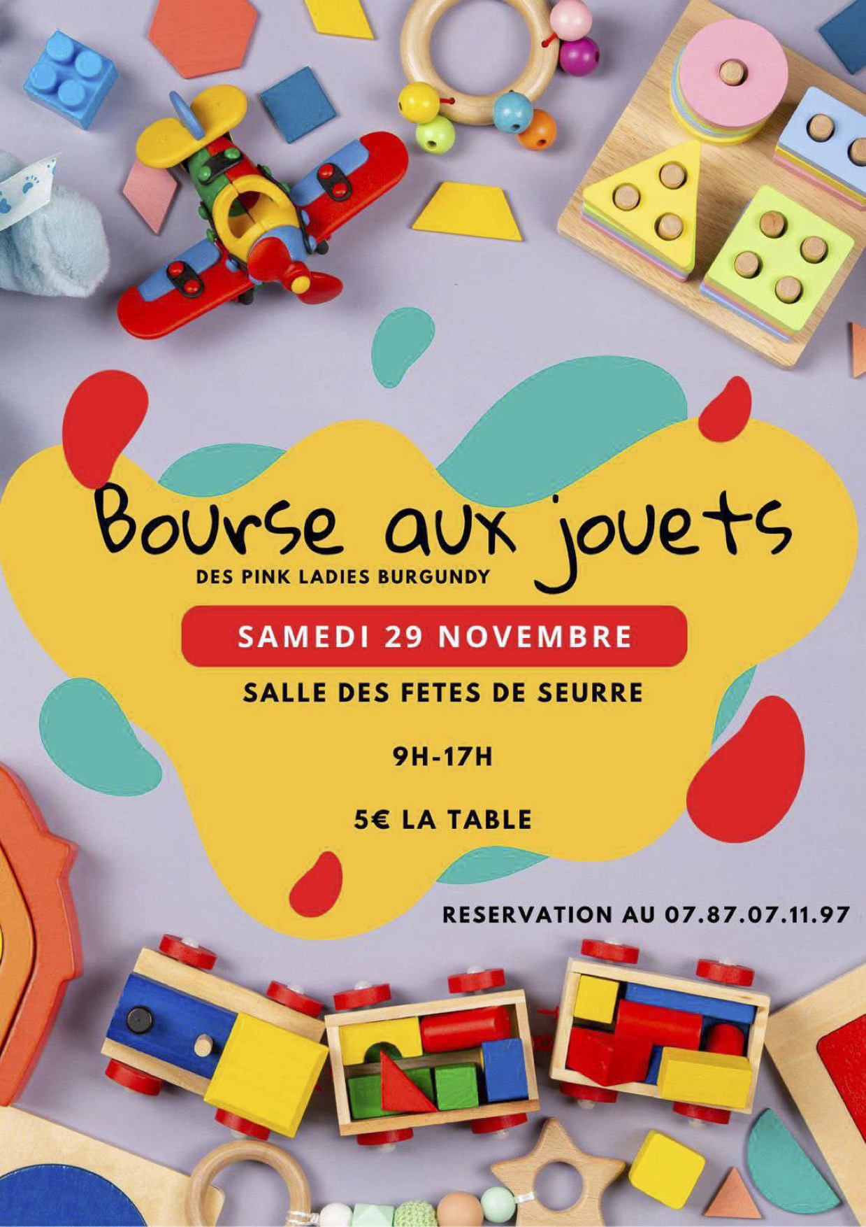 L’association Pink Ladies Burgundy organise sa bourse aux jouets le samedi 29 novembre, à la salle des fêtes de Seurre, de 9 h à 17 h. C’est l’occasion idéale pour vendre, acheter ou simplement flâner en famille parmi de nombreux stands : jeux, jouets, peluches, livres… il y en aura pour tous les âges et tous les goûts !