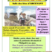 Sketches, poésie, chants, bons mots … autour du patrimoine viti-vinicole de l’Antiquité à nos jours. Dans la gaieté, une farandole d’histoires véridiques, très souvent bourguignonnes, voire locales.