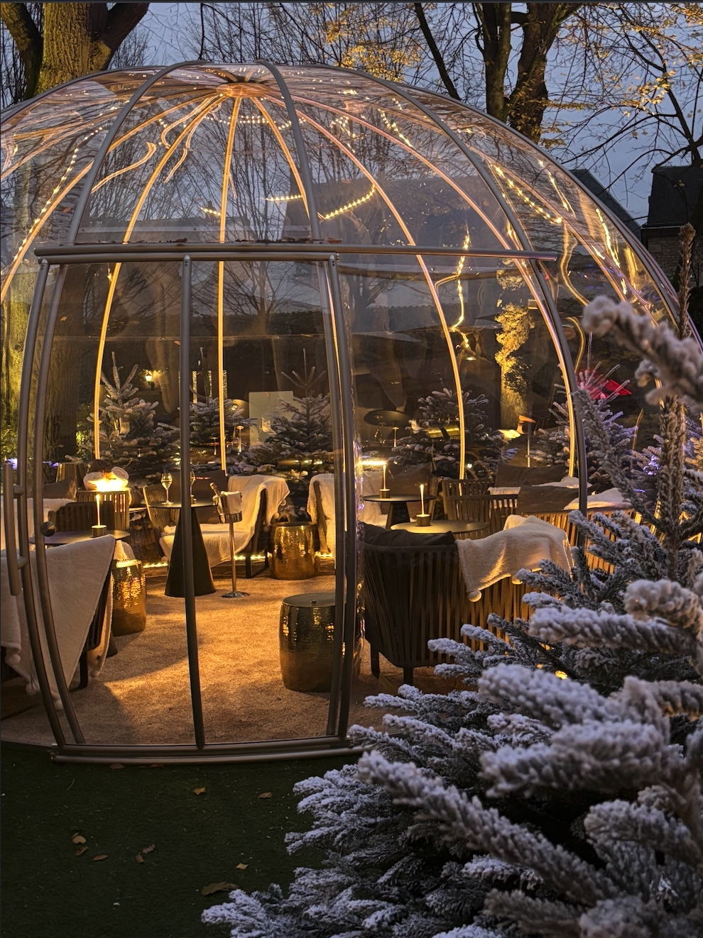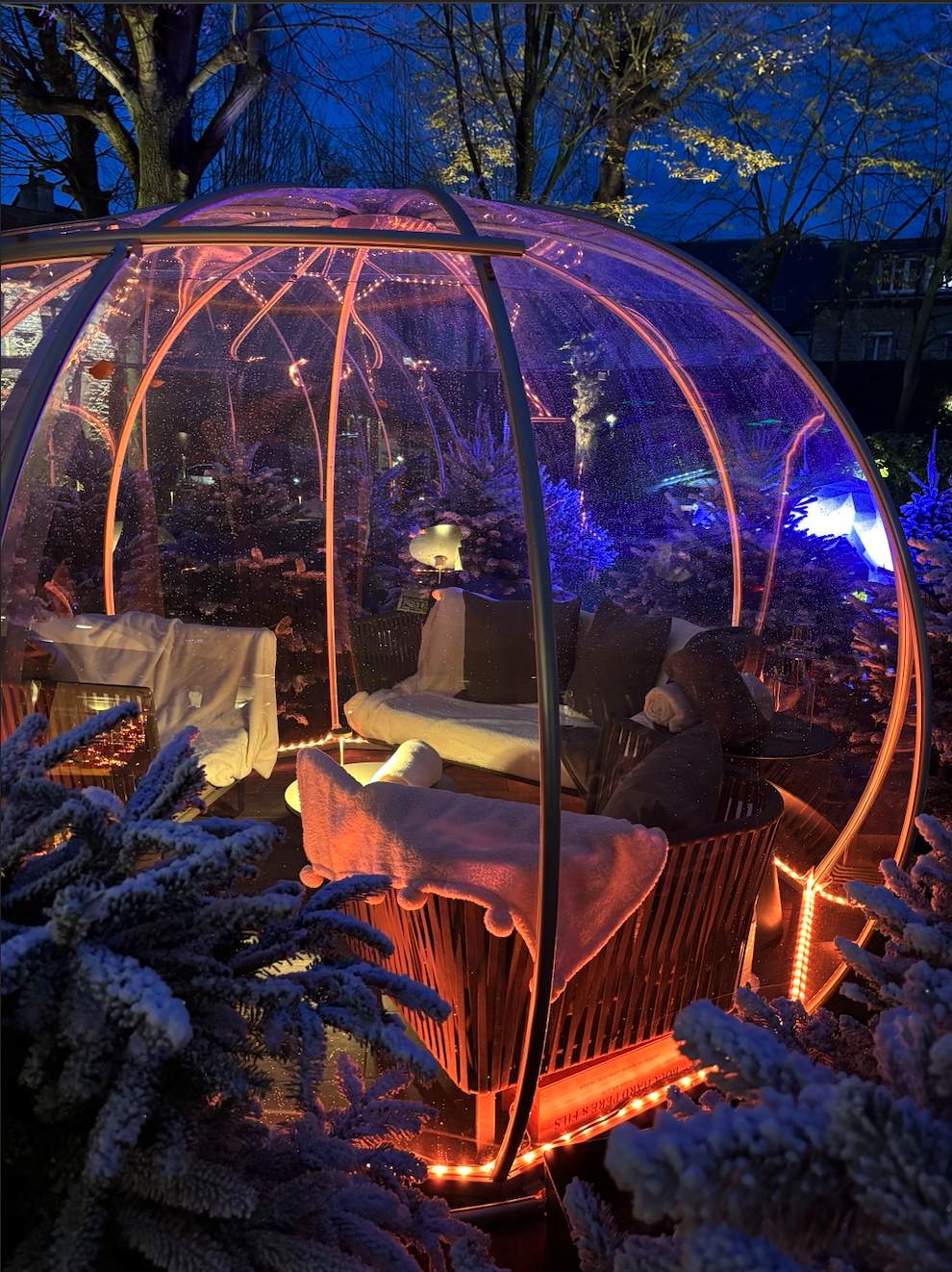 Mieux qu’une séance de luminothérapie dans l’hiver profond qui s’installe, le Grand Hôtel La Cloche à Dijon offre une expérience originale et dépaysante, dans son jardin. L’établissement mythique continue d’inventer des offres différentes, pour se démarquer et séduire la clientèle comme les locaux. Cette fois, il propose un moment inédit de détente et de bien-être dans une ambiance chaleureuse et cosy. Le public pourra se lover dans un plaid et contempler la forêt de sapins aménagée tout autour. Les bulles sont chauffées, éclairées et offrent une transparence parfaite pour une immersion garantie. C’est un peu Noël avant l’heure, comme un voyage dans un chalet de haute montagne ou dormir à la belle étoile.