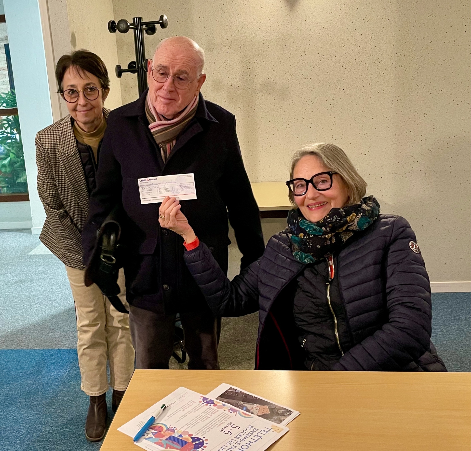 Marc Sorlot, président de Pochette Surprise, est venu déposer un premier chèque de l'excédent de recettes du théâtre au profit de l'AFM-Téléthon