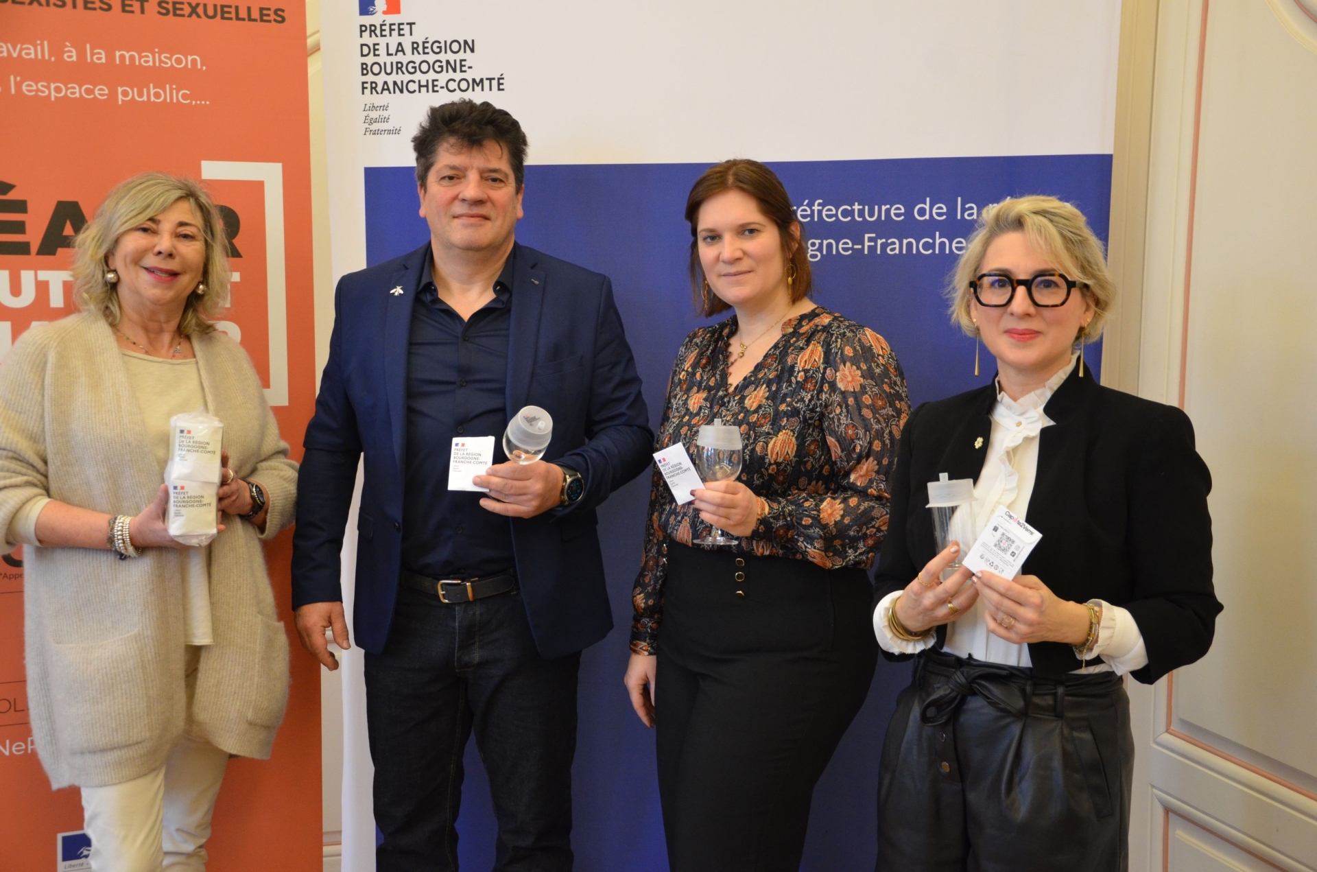 La préfecture de la région Bourgogne-Franche-Comté, via la Direction régionale aux droits des femmes et à l’égalité, a acquis des dispositifs de prévention à la soumission chimique dénommés « Capote2Verre » (protection se plaçant sur un verre) afin de permettre, dans chaque département, la mise en place d’actions de prévention en milieu festif.