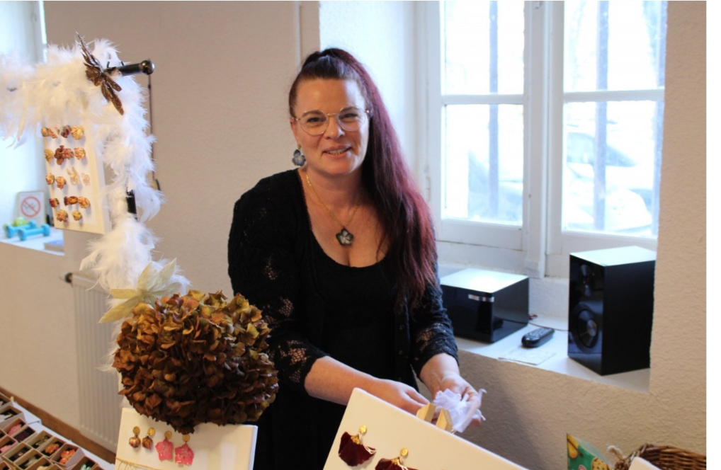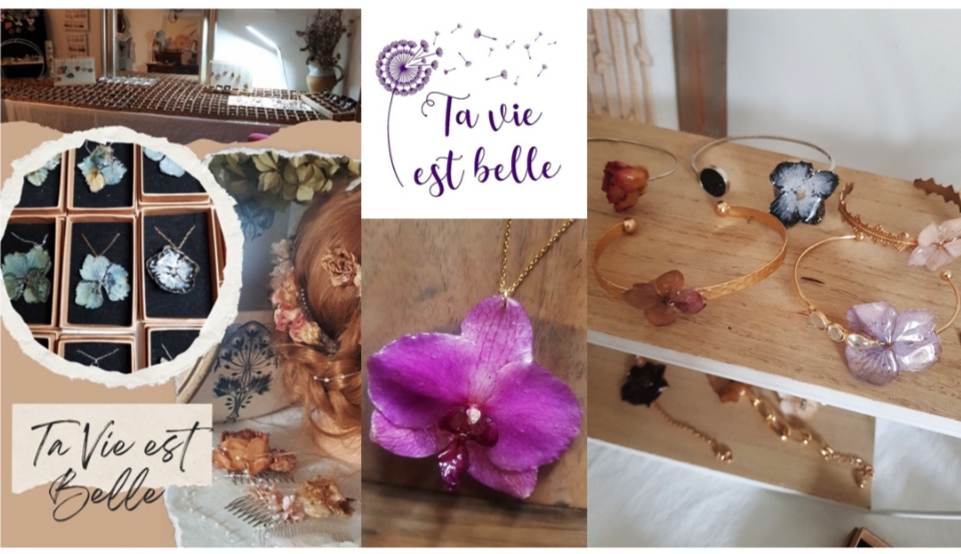 Ancienne aide-soignante à domicile, Sandrine a dû revoir son avenir en avril 2024, lorsque des problèmes de santé l’ont contrainte à arrêter son métier. « Je créais déjà des bijoux pour moi et mes amis. La nature autour de chez moi, je la dessine depuis toujours… elle m’inspire », confie-t-elle. L’idée devient alors une évidence : transformer sa passion en activité artisanale, en apprenant à travailler la résine, matériau qui lui permet de figer les fleurs et d’en préserver toute la délicatesse.