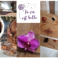 Elle commence par cueillir, faire sécher, puis sublimer fleurs et pétales pour créer couronnes, décorations et bijoux. Hortensias, boutons de rose, compositions personnalisées avec des fleurs apportées par ses clients… Sandrine développe un savoir-faire singulier, qu’elle fait découvrir sur les marchés d’été, notamment ceux organisés par le CFDB à Beaune.