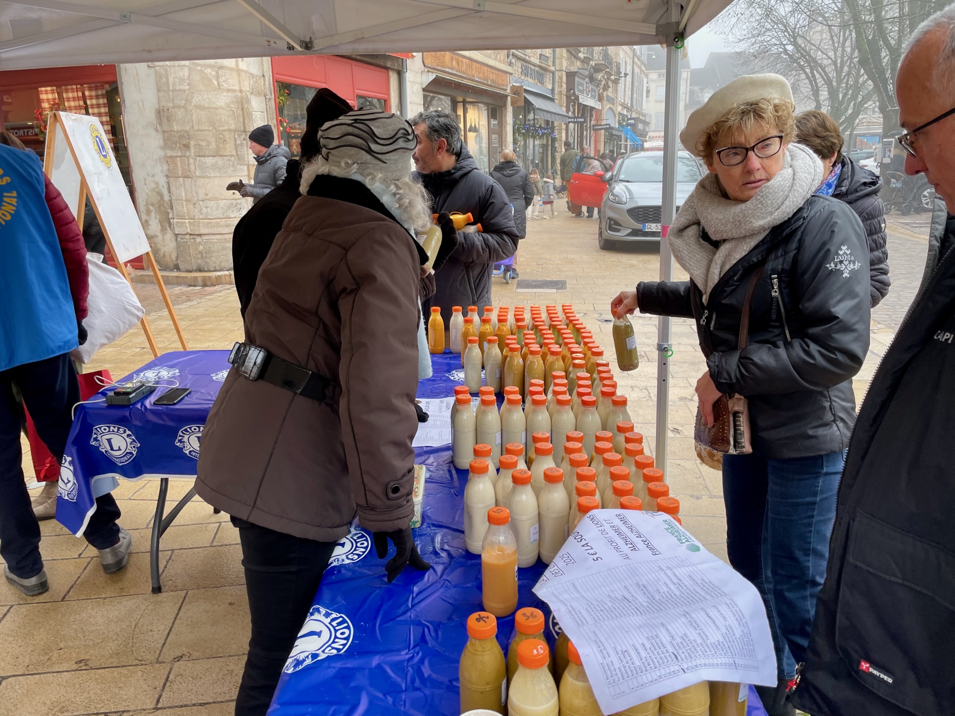 Répartis sur trois points de vente – place des Halles, place Carnot et au croisement des rues Carnot et Monge – les bénévoles ont proposé des soupes originales et gourmandes, préparées avec talent par 37 restaurateurs de Beaune et des environs. Vendues au tarif unique de 5 euros la bouteille, elles se sont arrachées tout au long de la matinée.