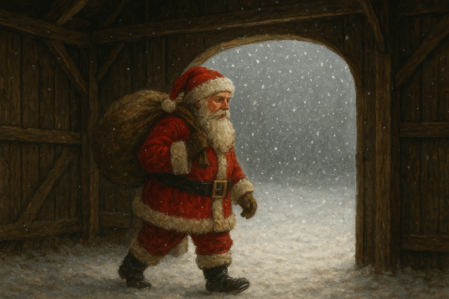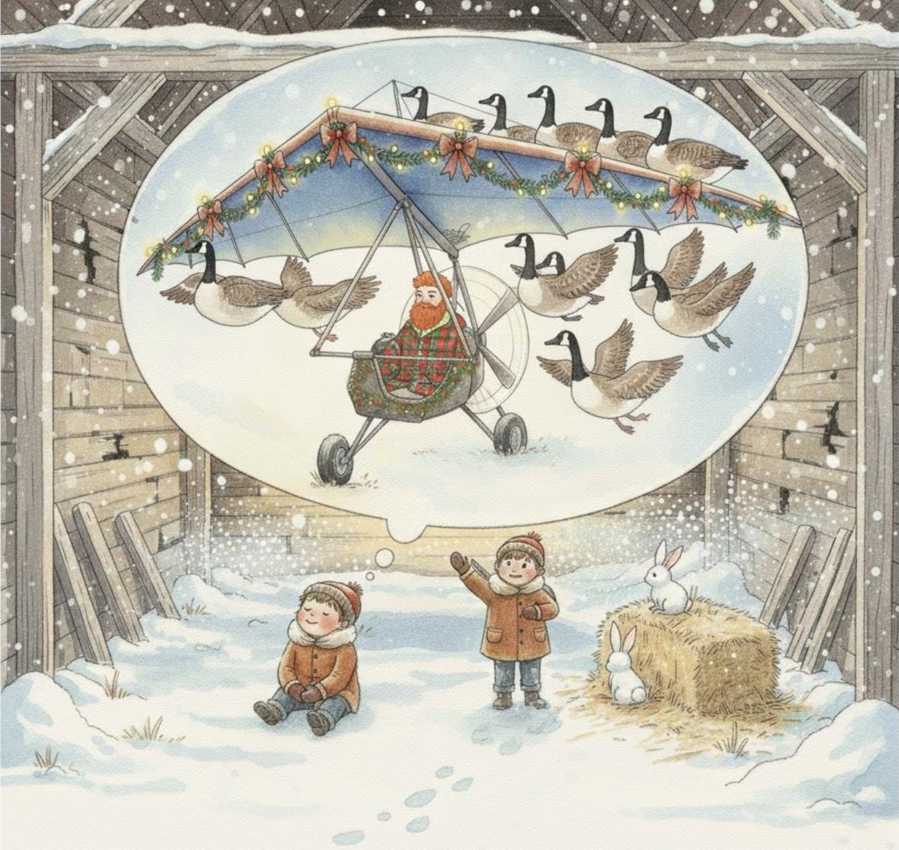 La magie de Noël semblait s’évanouir, la machine volante redescendit et reprit sa place dans la grange déserte.