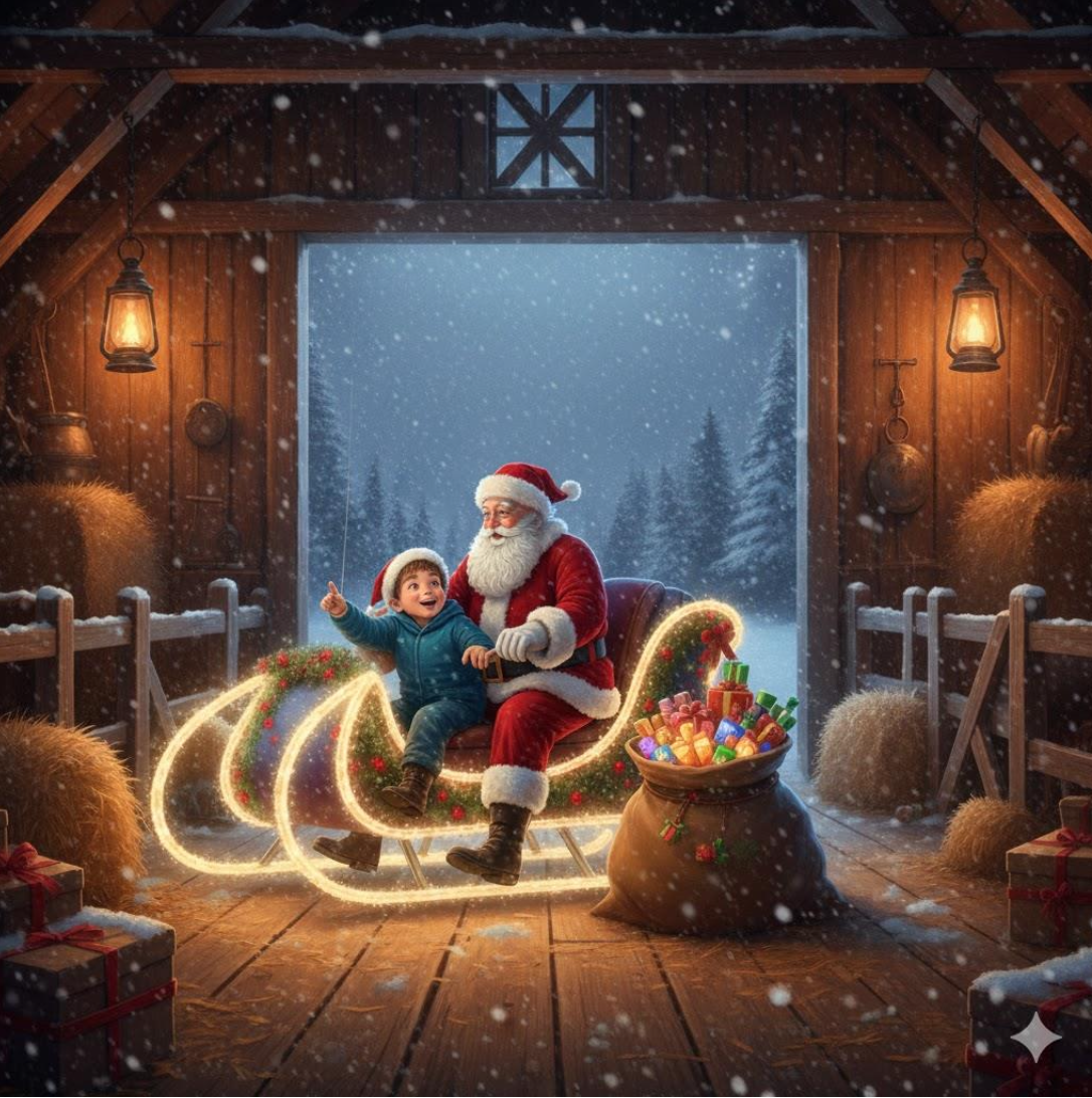 Oui Louis était si heureux, il avait reçu la lumière qu’il espérait tant pour Noël, et lui non plus n’oubliera jamais, et se dit que chaque 24 décembre il se rendrait dans cette grange, peut-être y reverrait-il cette machine volante merveilleuse ou le Père Noël ?