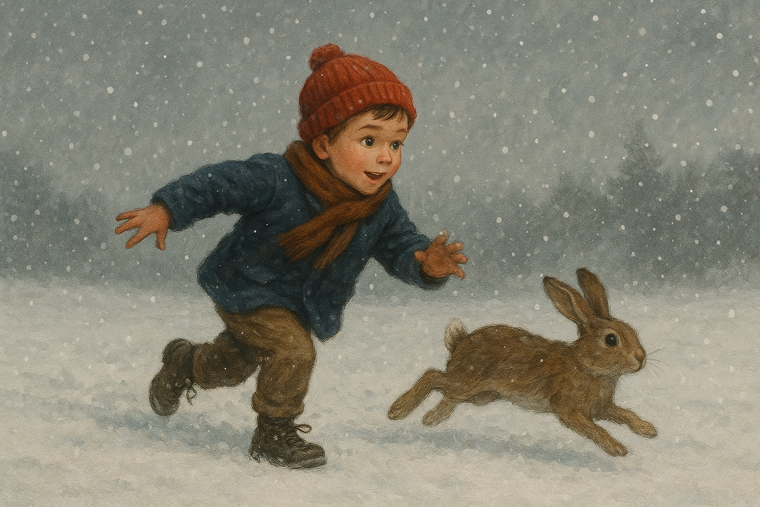 Il neigeait si fort sur ce petit village, recouvrant le sol d’un joli manteau blanc. Un petit garçon semblait s’être perdu, si loin des habitations, il poursuivait un petit lapin qui lui jouait de vilains tours, exténué et transi par le froid, il s’abrita dans la grange, juste pour quelques minutes, pensait-il, il avait promis à ses parents qu’il ne rentrerait pas tard, pour profiter avec eux plus longuement de cette belle veillée de Noël et il faisait déjà nuit.