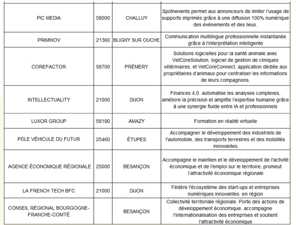 Le Conseil régional, représenté par Patrick Molinoz, vice-président à l'Europe, aux relations internationales, à l'export, au numérique et à l'intelligence artificielle, affirme son rôle de chef de file en matière d’internationalisation des entreprises. L’AER BFC agit comme facilitateur économique en mettant en relation les entreprises avec des investisseurs. La CCI BFC complète ce dispositif par son expertise en accompagnement opérationnel et en mise en réseau. La French Tech BFC fédère l’écosystème des start-ups et des entreprises innovantes en région.