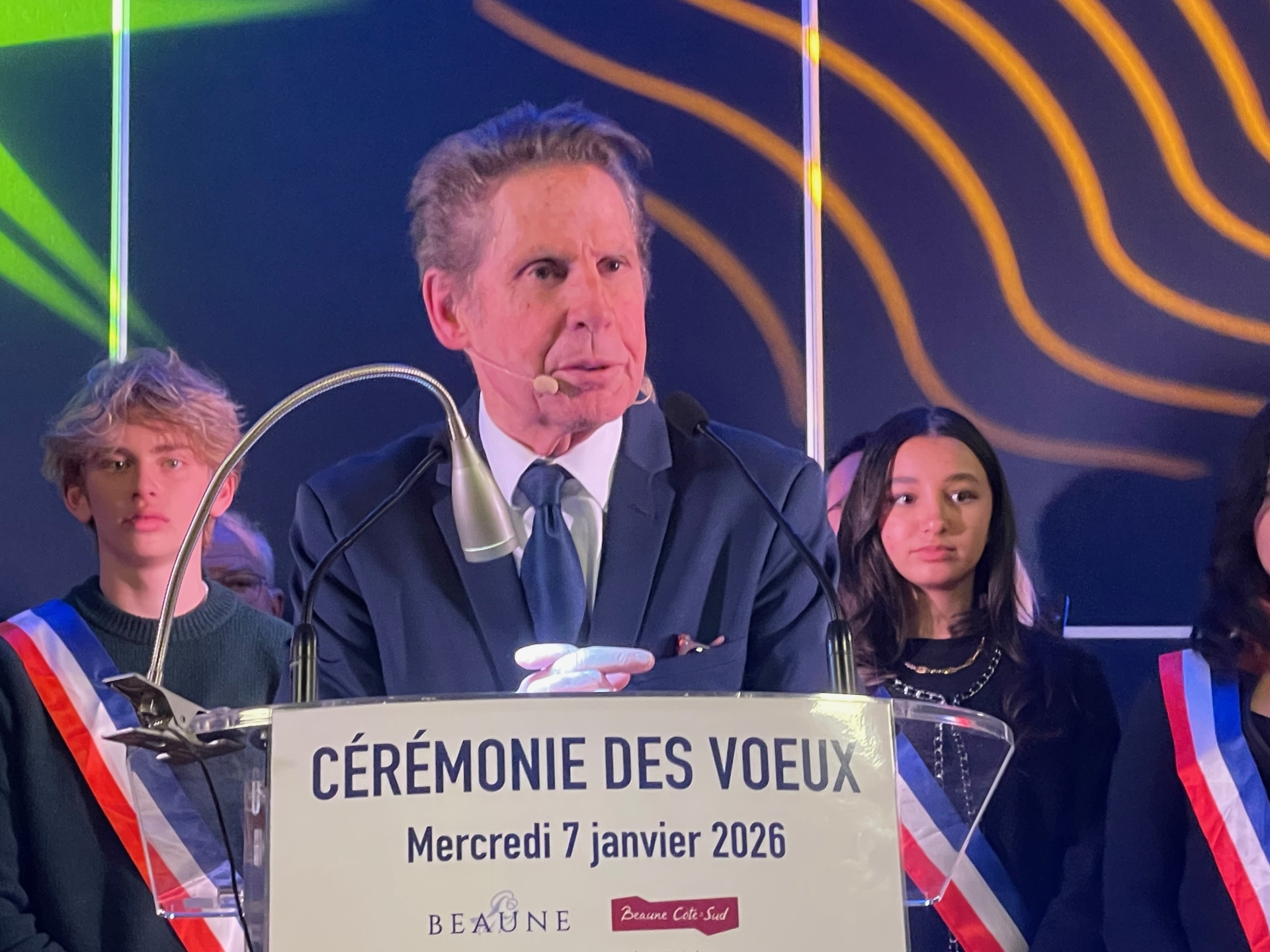Pour son dernier exercice de vœux en tant que maire de Beaune et président de la Communauté d’agglomération Beaune Côte et Sud, Alain Suguenot a réuni, ce mercredi, une assistance nombreuse au Palais des Congrès de Beaune. Entouré symboliquement des maires de l’agglomération, il a livré un discours volontairement mesuré, marqué par la reconnaissance du travail des élus locaux, une lecture du contexte national et un message tourné vers les jeunes et l’avenir.